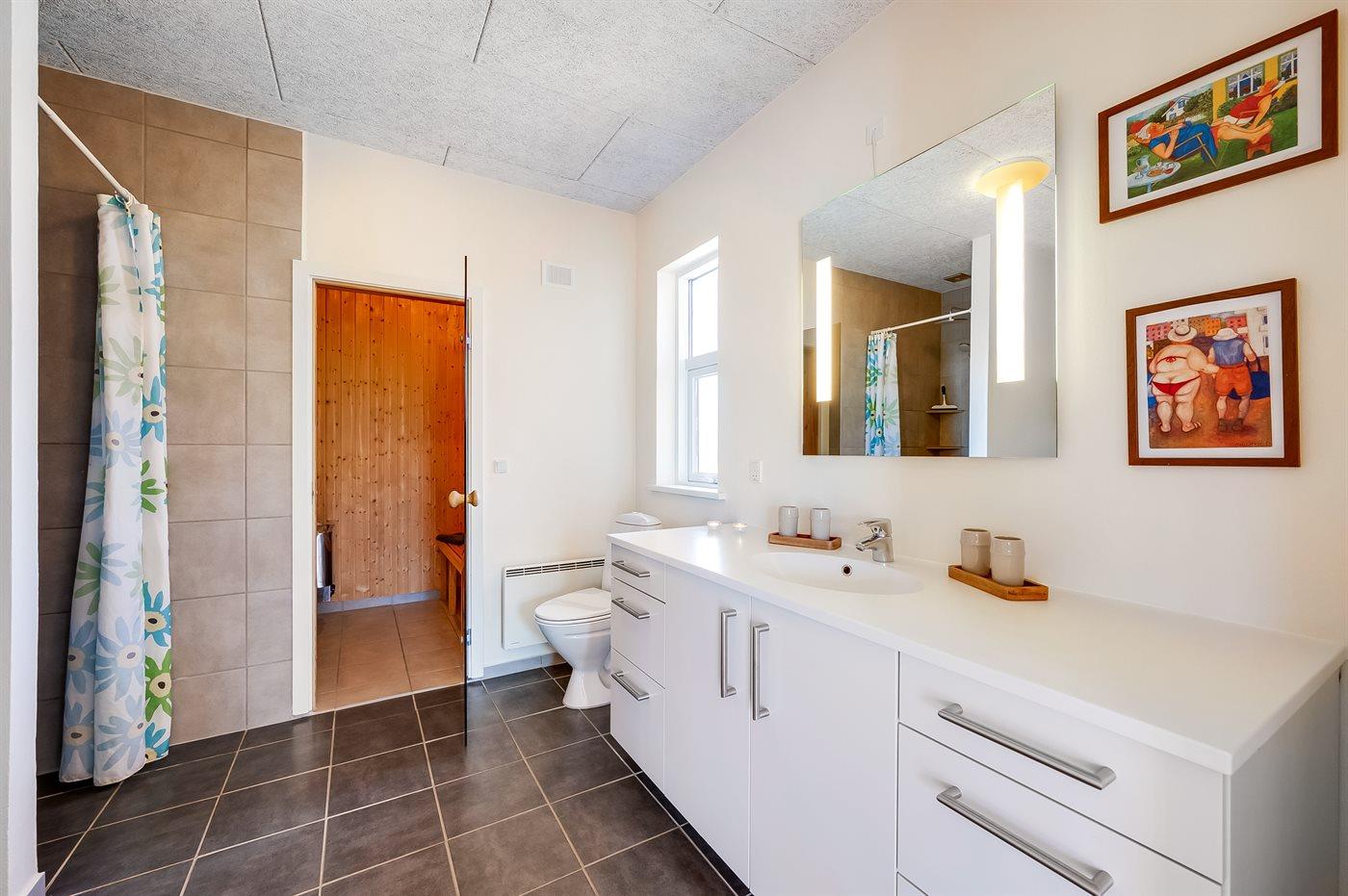 Er is 2 badkamers met douchehok en 2 toiletten.. Er is vloerverwarming in 2 van de badkamers. De sauna biedt de gelegenheid tot ontspanning.