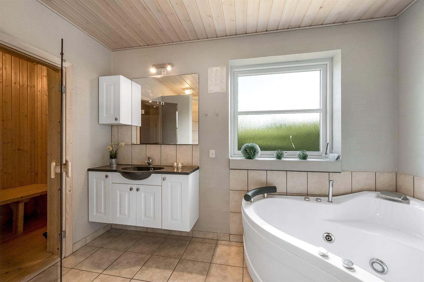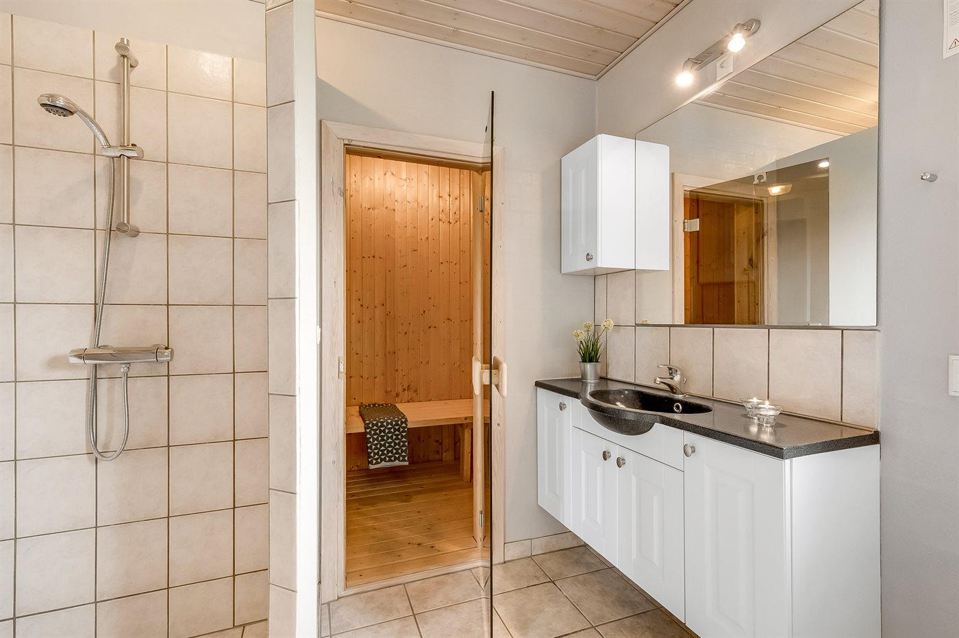 Er is 1 badkamer met douchehok en 2 toiletten. Er is vloerverwarming in 1 badkamer. Er is vloerverwarming in het gastentoilet. De sauna biedt de gelegenheid tot ontspanning.