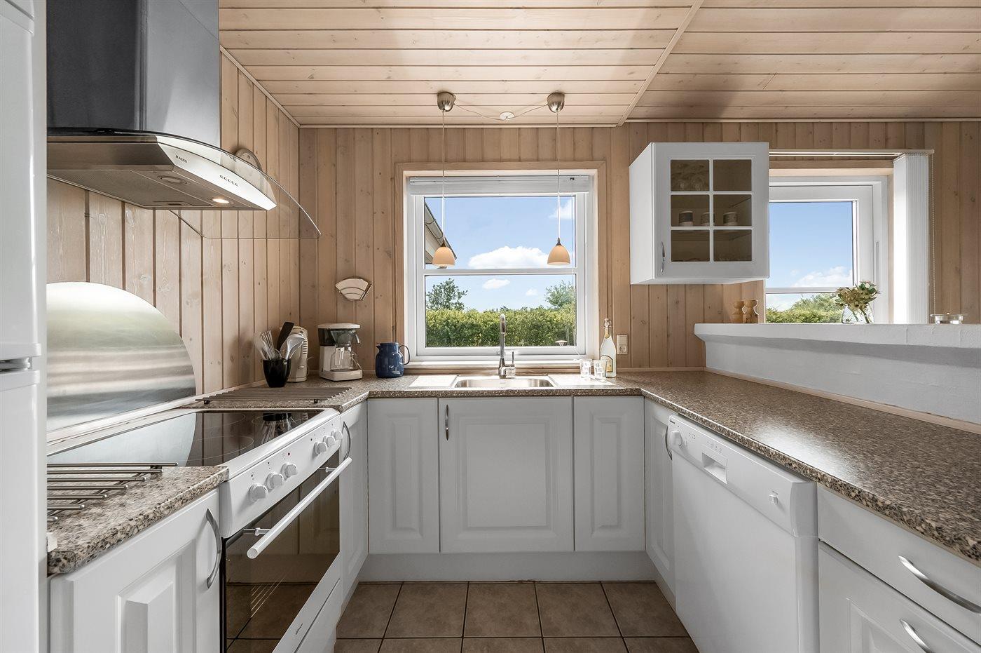 De keuken is uitgerust met koelkast Er zijn 4 keramische kookplaten, heteluchtoven, magnetron en vaatwasser.