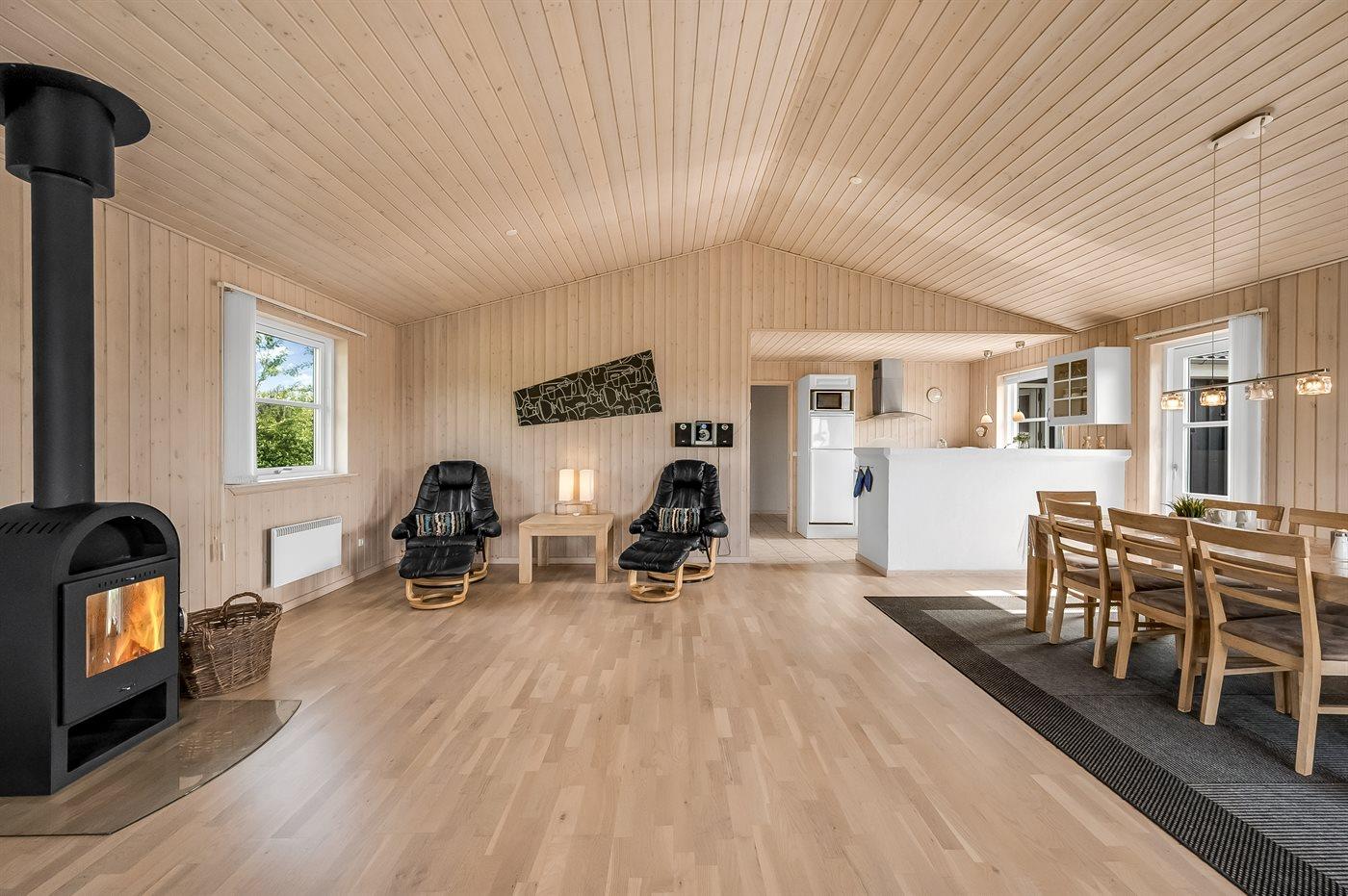 De vakantiewoning is gelegen op een 1245 m² groot natuural grond. Afstand tot de zee 7700 m. Afstand tot de fjord 700 m. Dichtstbijzijnde winkel 700 m. Bij de vakantiewoning hoort 50 m² terras. Daarnaast is er een 10 m² groot overdekt terras. Gereedschapsruimte. Schommel. Zandbak. Parkeerplaats bij het huis.