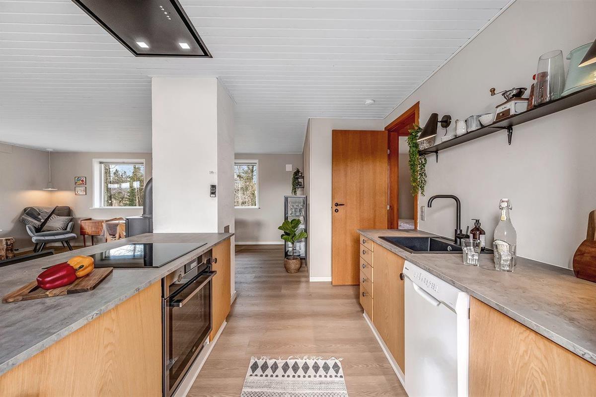 De keuken is uitgerust met koelkast Er is 4 inductiekookplaten, heteluchtoven, magnetron en vaatwasser.