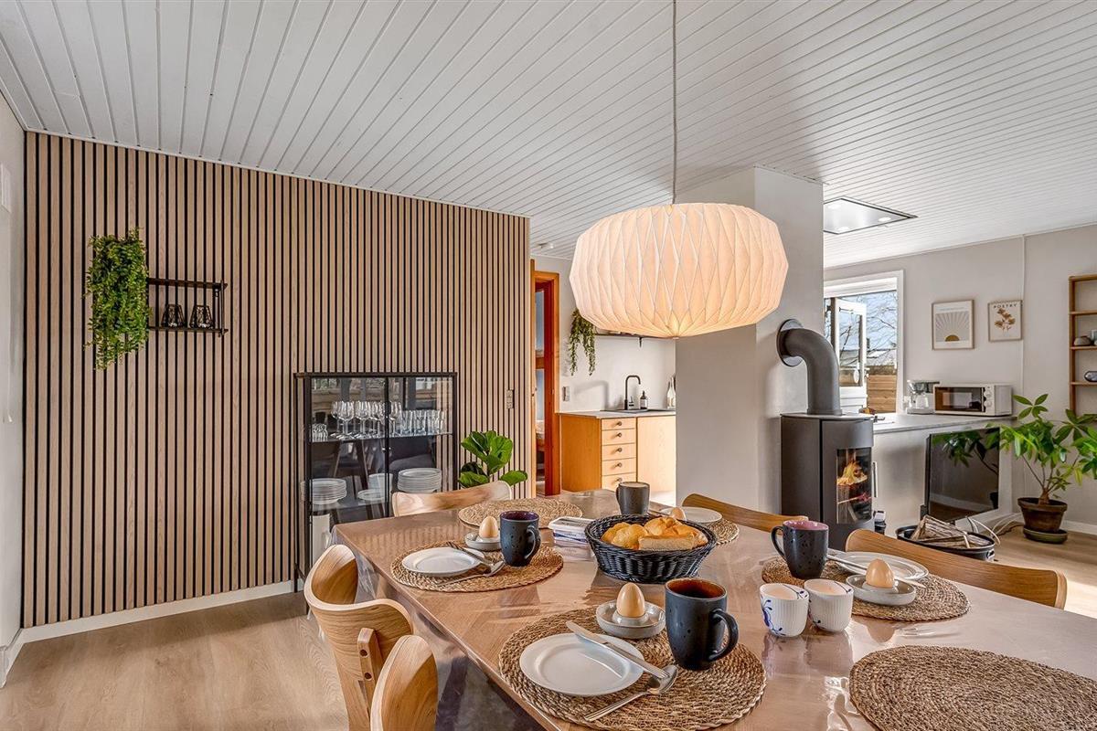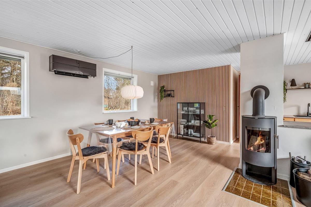 De vakantiewoning is gelegen op een 1379 m² groot natuural grond. Afstand tot de zee 13000 m. Afstand tot de fjord 500 m. Dichtstbijzijnde winkel 600 m. Bij de vakantiewoning hoort 45 m2 terras en 14 m2 overdekt terras. Parkeerplaats bij het huis.
