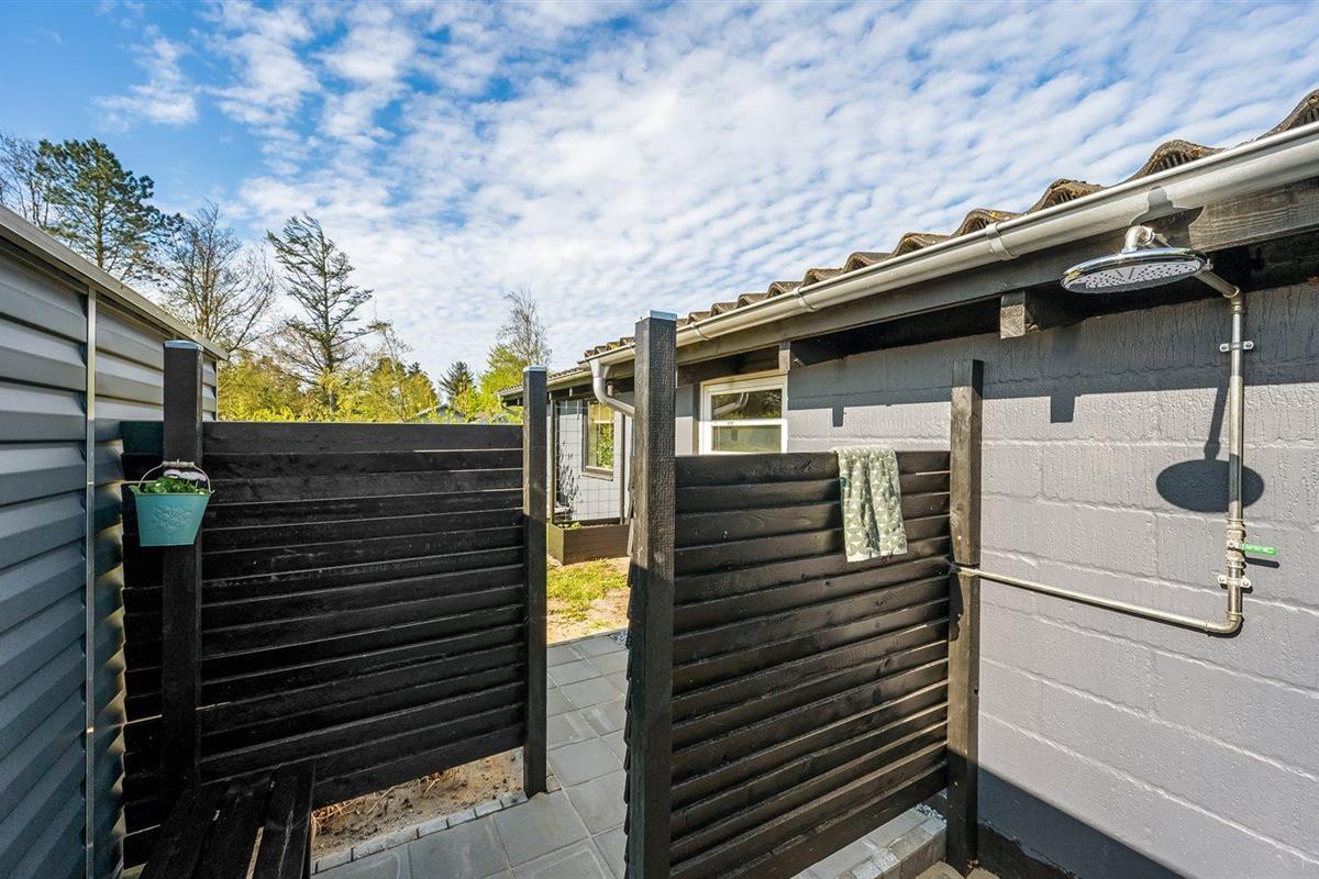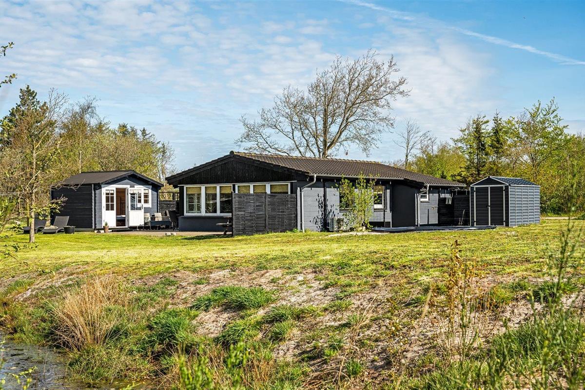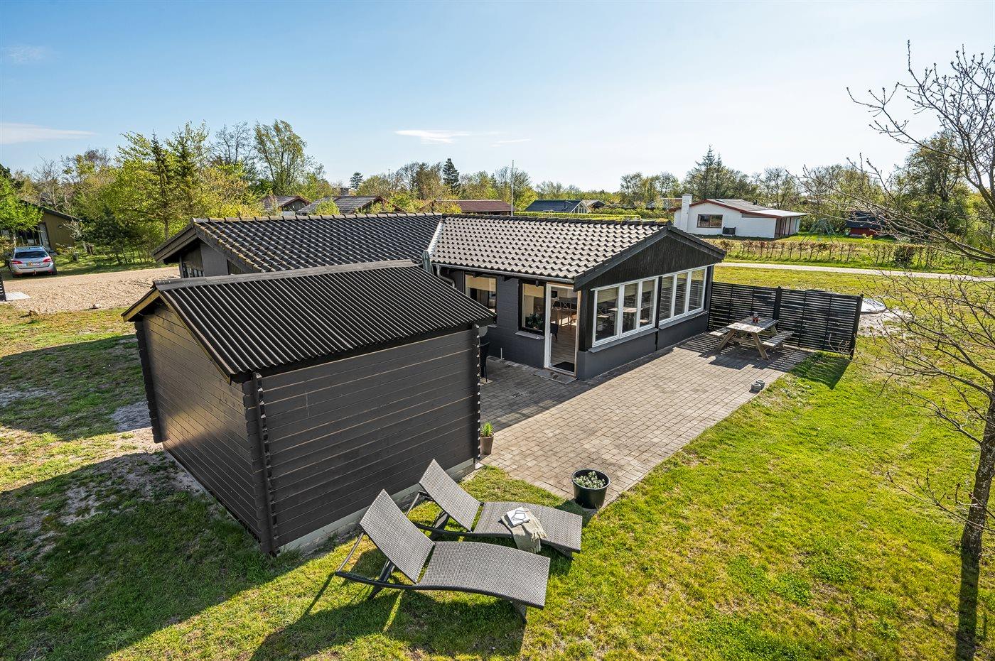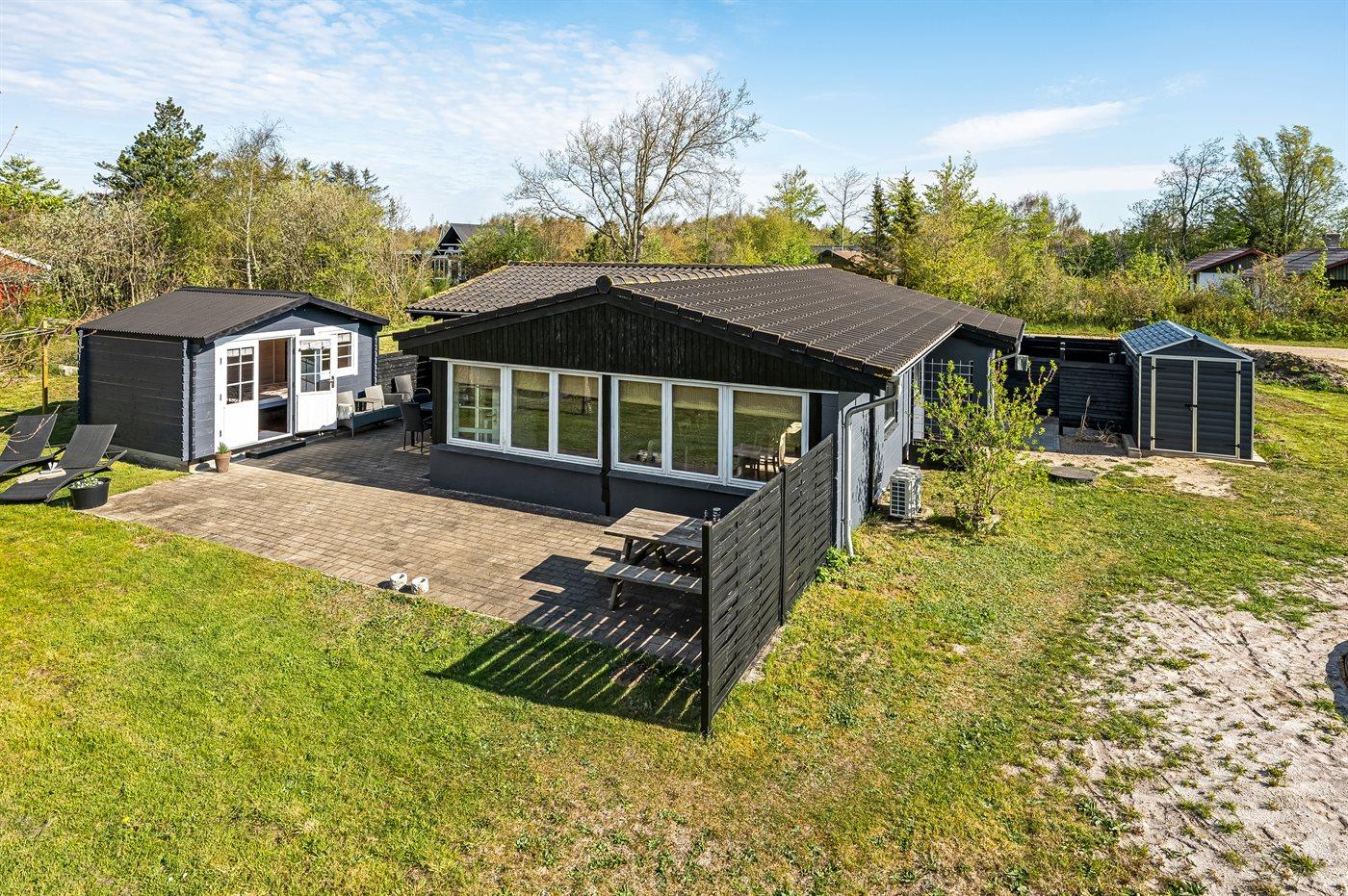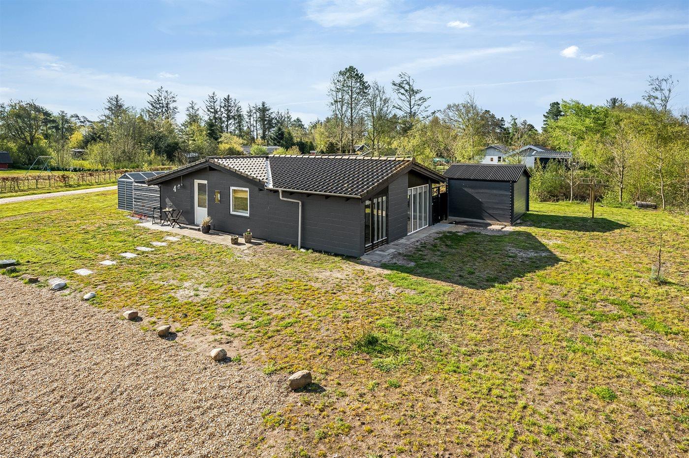 De vakantiewoning is gelegen op een 1200 m² groot natuural grond. Afstand tot de zee 13000 m. Afstand tot de fjord 350 m. Dichtstbijzijnde winkel 650 m. Bij de vakantiewoning hoort terras. Trampoline. Afstand tot speelplaats 500 m. Buitendouche. Parkeerplaats bij het huis.