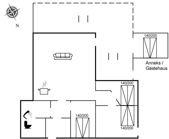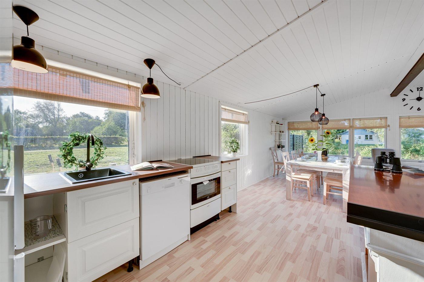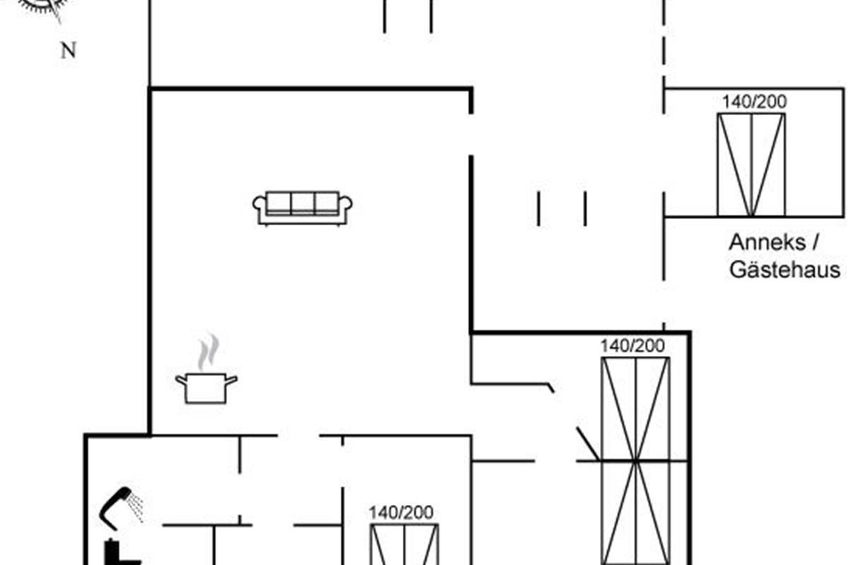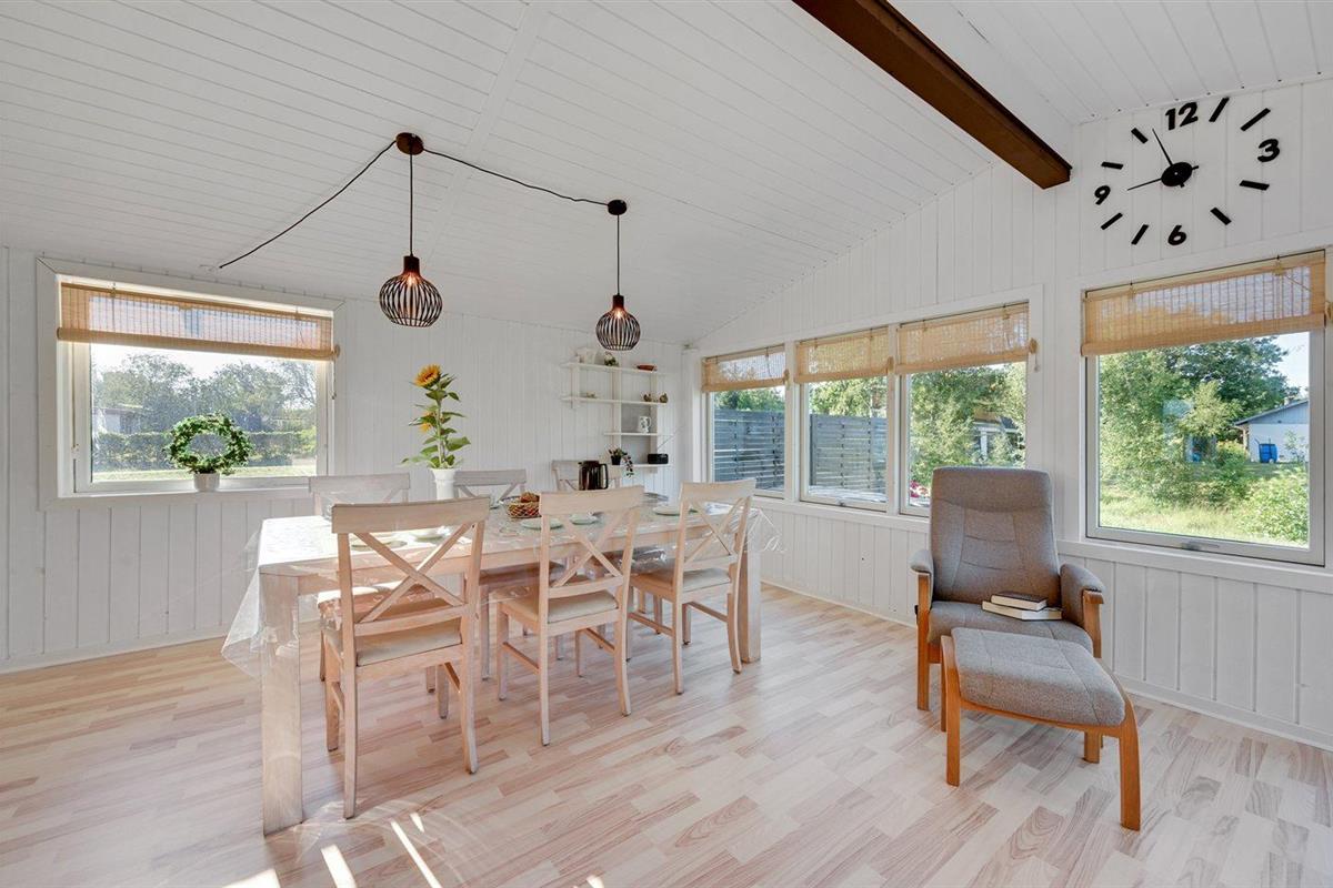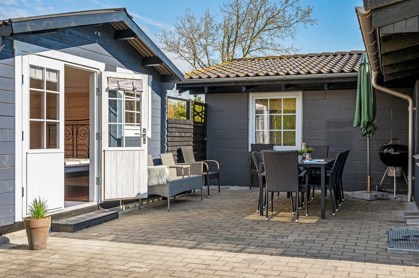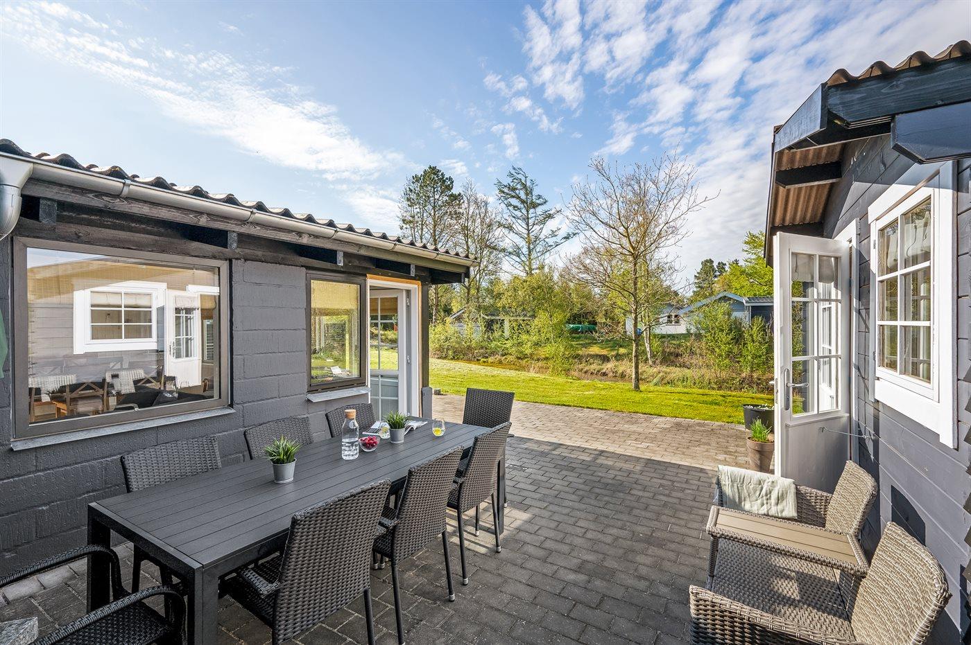 De vakantiewoning is gelegen op een 1200 m² groot natuural grond. Afstand tot de zee 13000 m. Afstand tot de fjord 350 m. Dichtstbijzijnde winkel 650 m. Bij de vakantiewoning hoort terras. Trampoline. Afstand tot speelplaats 500 m. Buitendouche. Parkeerplaats bij het huis.