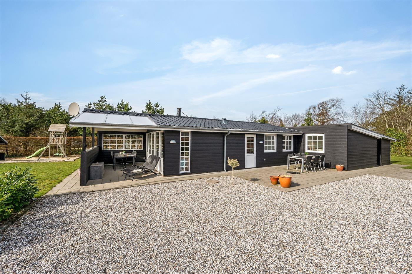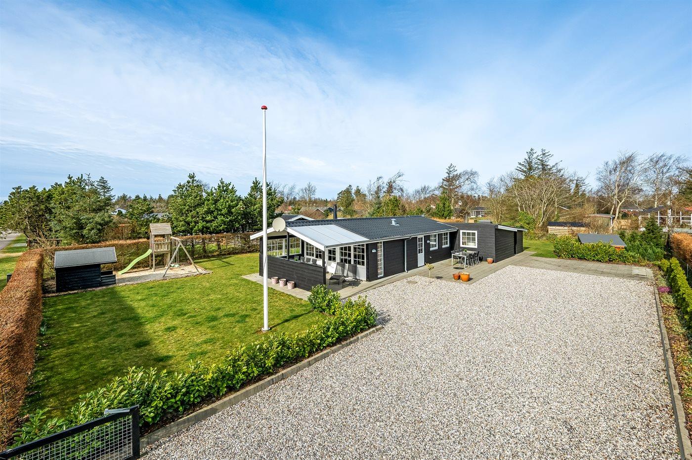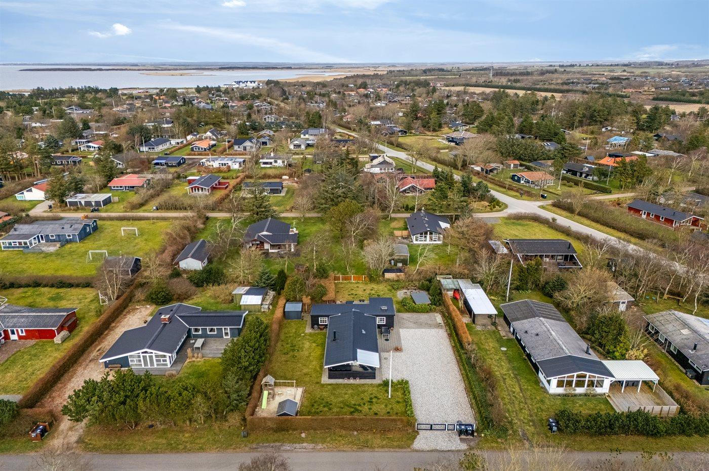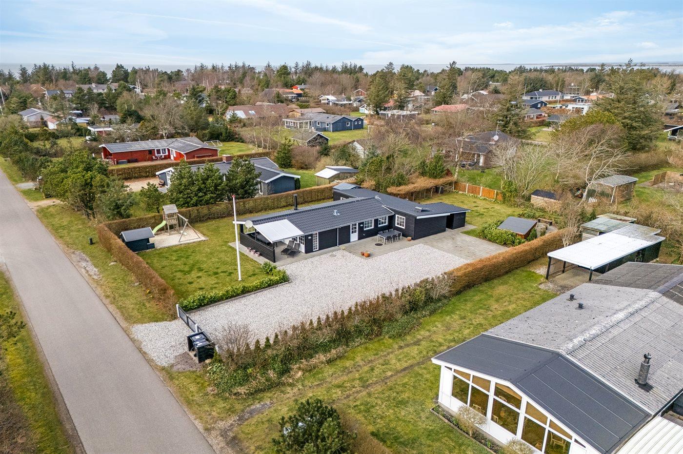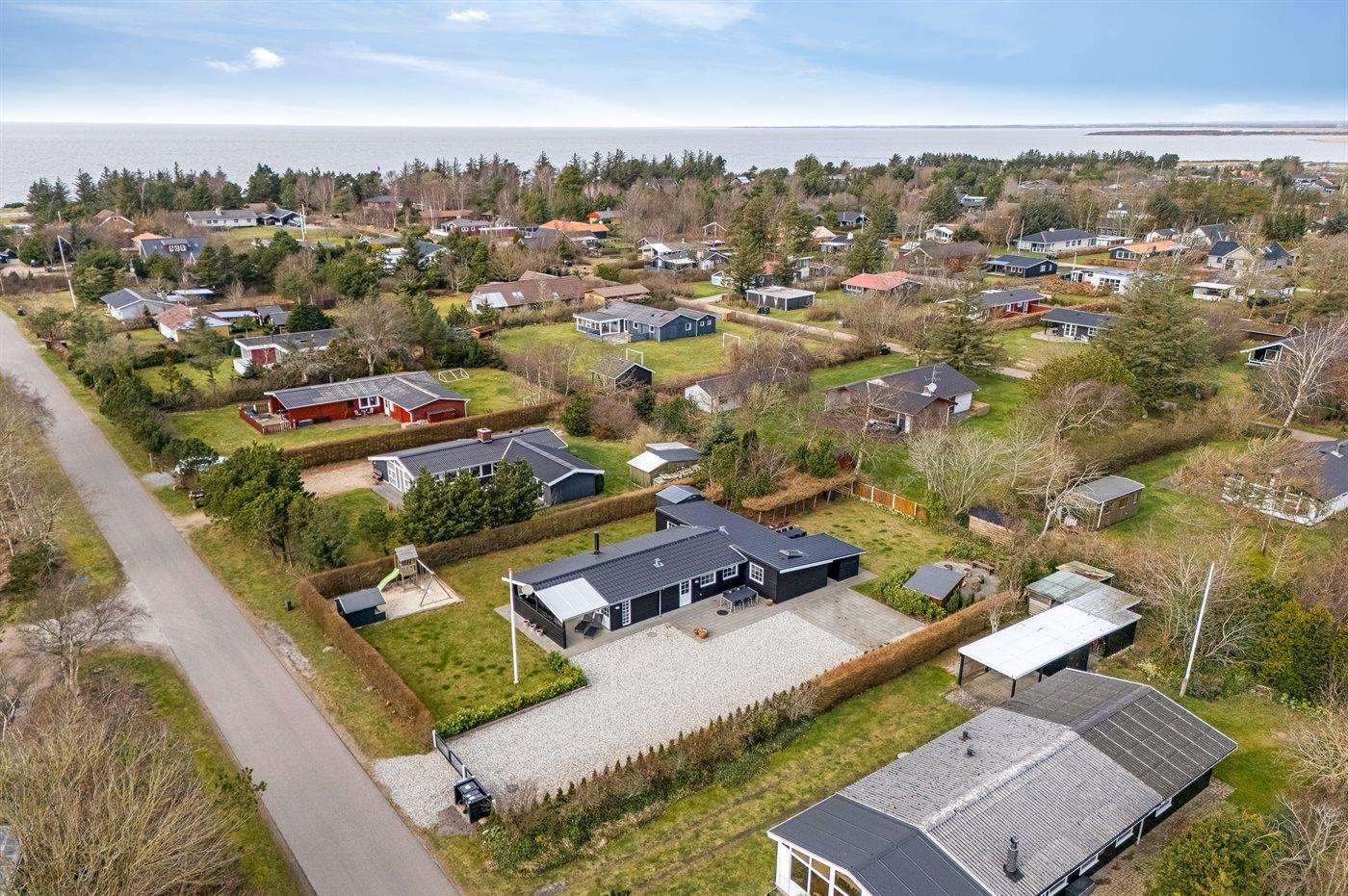 De vakantiewoning is gelegen op een 963 m² groot natuural grond. De grond is omheind. Afstand tot de fjord 300 m. Dichtstbijzijnde winkel 1000 m. Bij de vakantiewoning hoort terras. Daarnaast is er een overdekt terras. Schommel. Zandbak. Speelhuisje. Glijbaan.Vuurplaats. Shelter. Buitendouche. Parkeerplaats bij het huis.