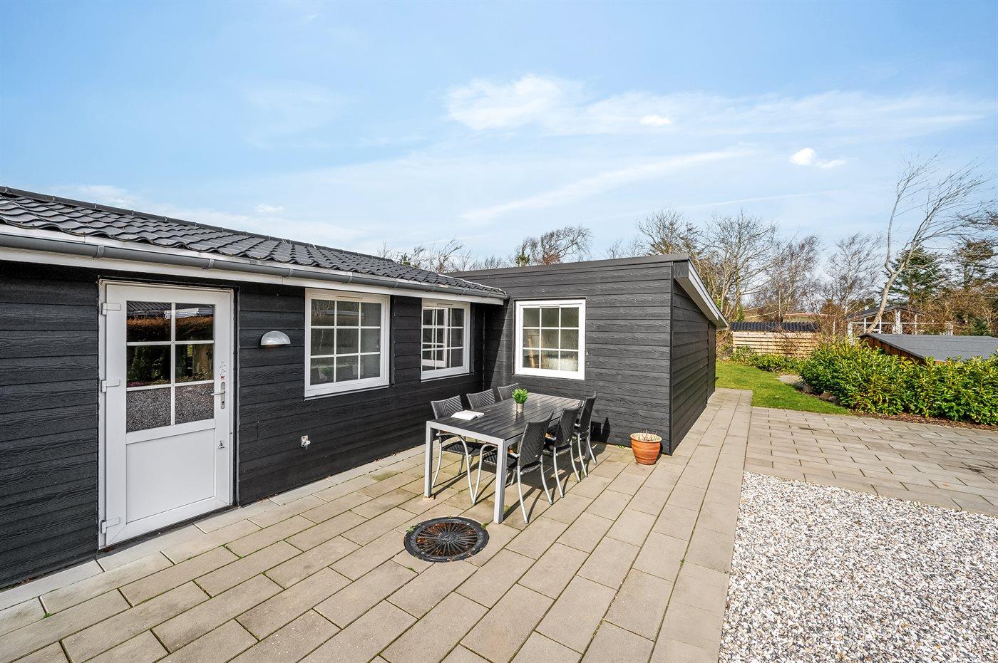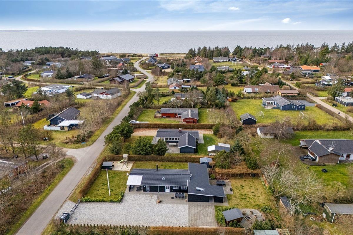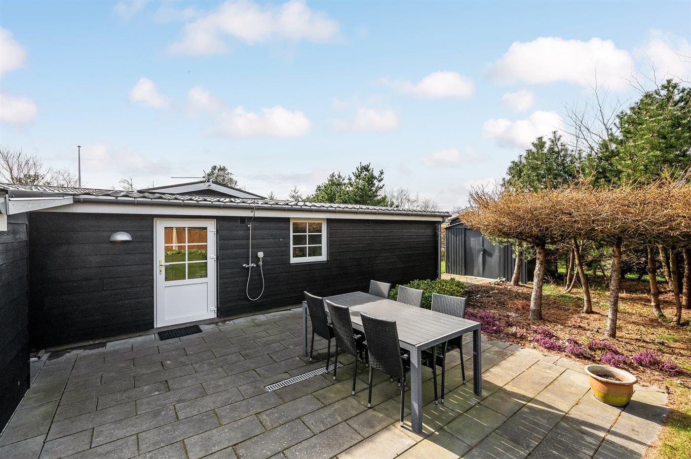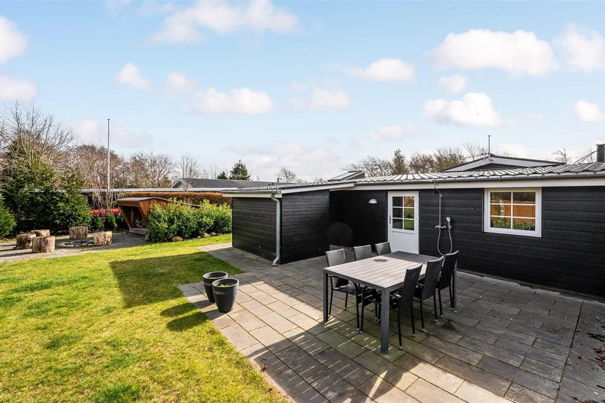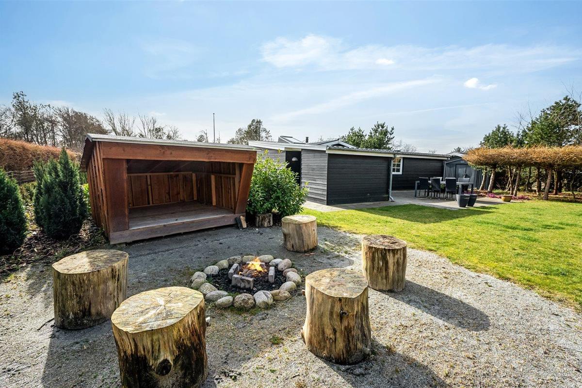 De vakantiewoning is gelegen op een 963 m² groot natuural grond. De grond is omheind. Afstand tot de fjord 300 m. Dichtstbijzijnde winkel 1000 m. Bij de vakantiewoning hoort terras. Daarnaast is er een overdekt terras. Schommel. Zandbak. Speelhuisje. Glijbaan.Vuurplaats. Shelter. Buitendouche. Parkeerplaats bij het huis.