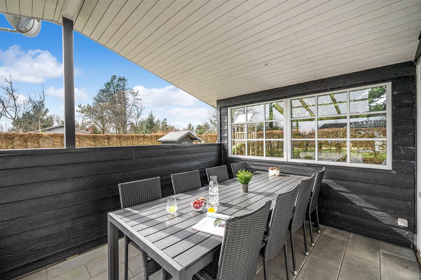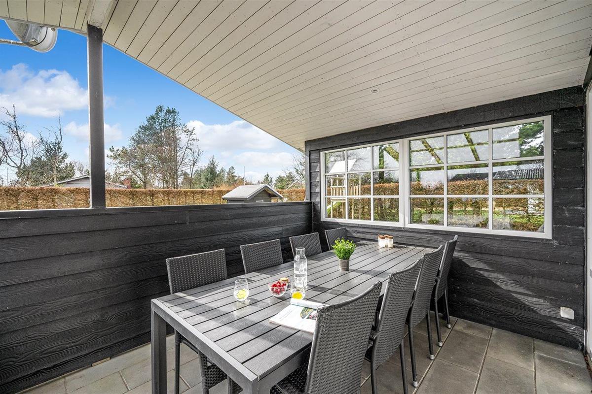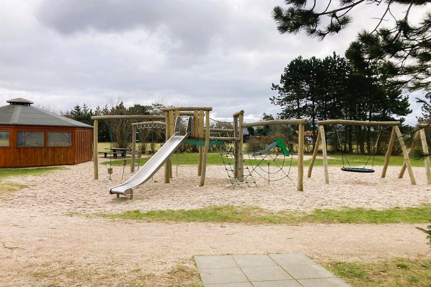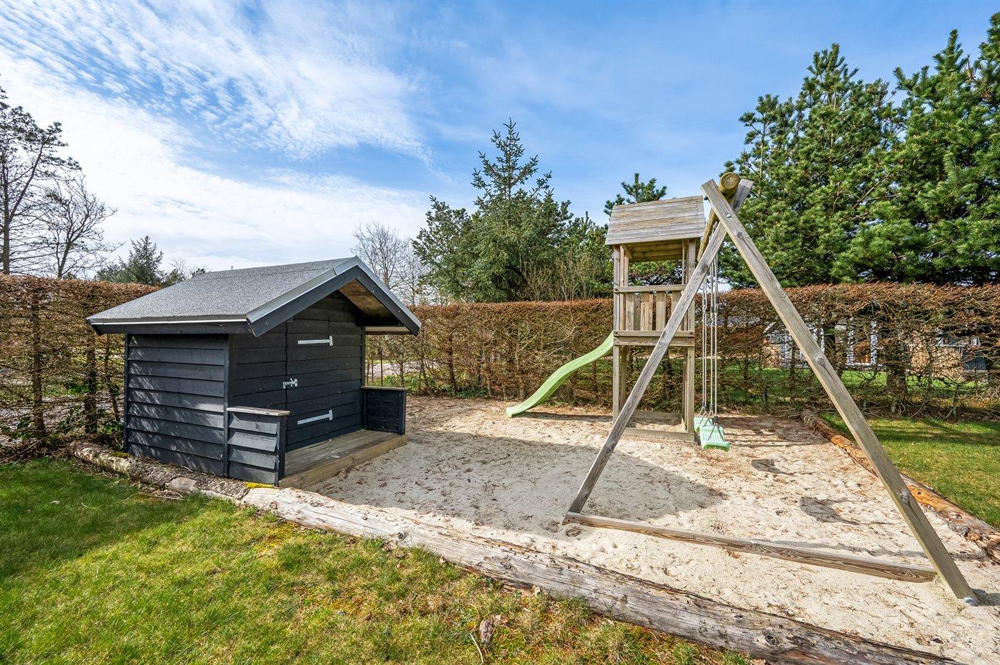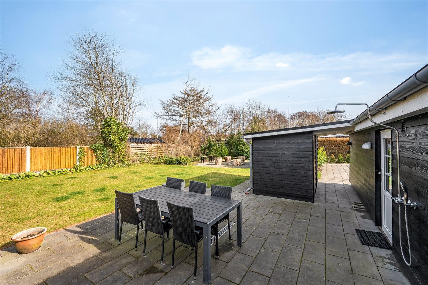 De vakantiewoning is gelegen op een 963 m² groot natuural grond. De grond is omheind. Afstand tot de fjord 300 m. Dichtstbijzijnde winkel 1000 m. Bij de vakantiewoning hoort terras. Daarnaast is er een overdekt terras. Schommel. Zandbak. Speelhuisje. Glijbaan.Vuurplaats. Shelter. Buitendouche. Parkeerplaats bij het huis.