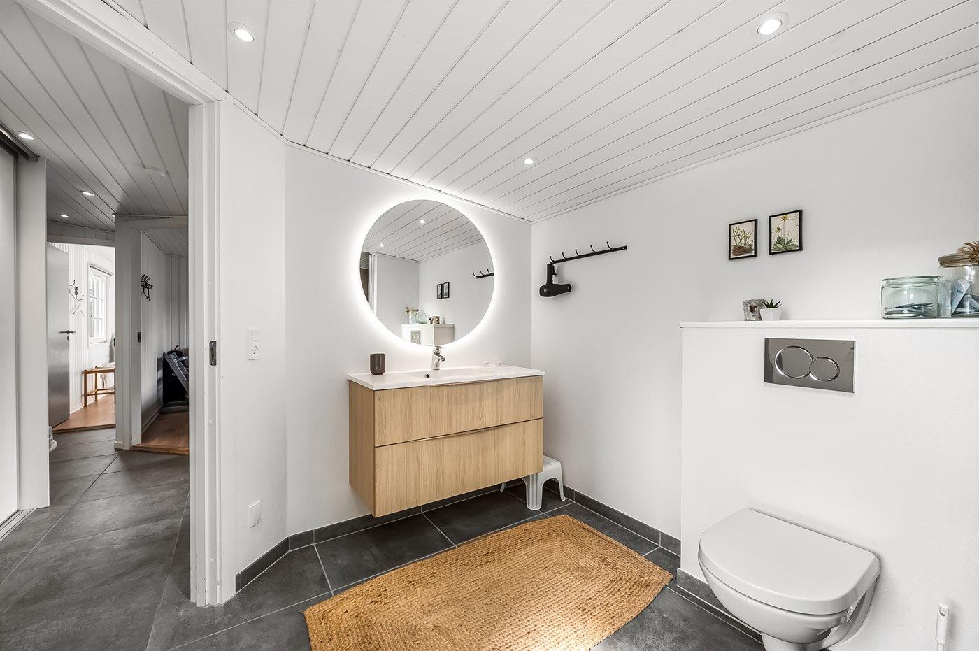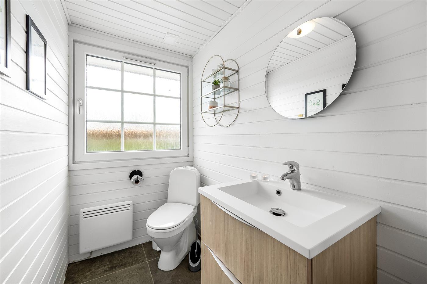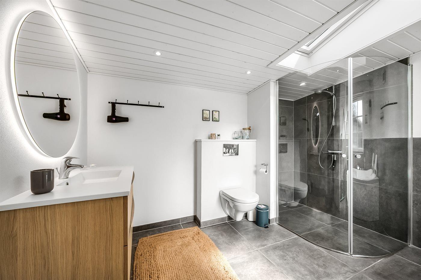 Er is 1 badkamer met douchehok en 2 toiletten, waarvan 1 gastentoilet. Er is vloerverwarming in 1 badkamer.