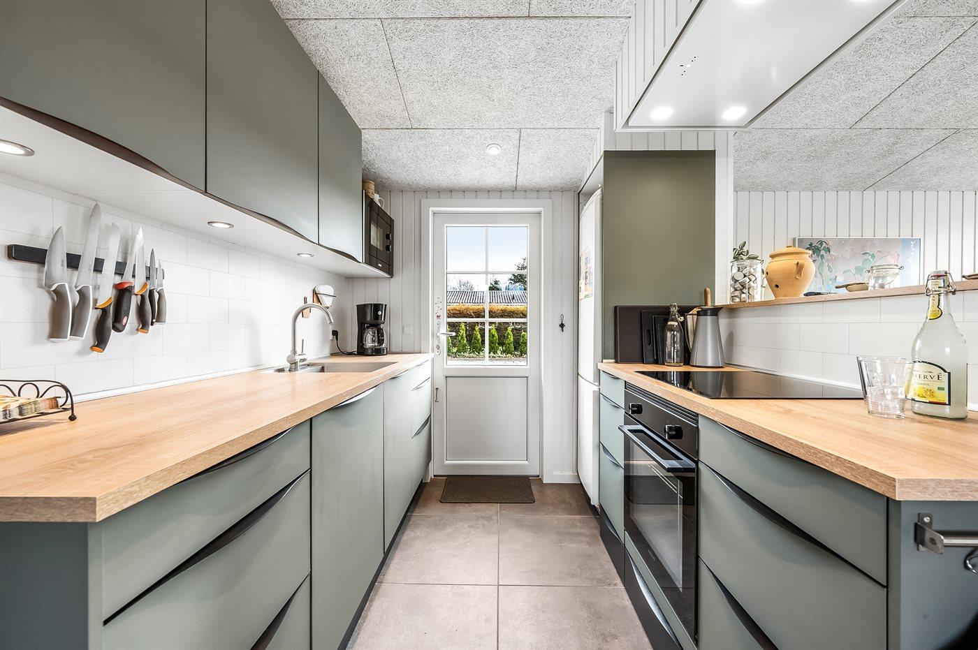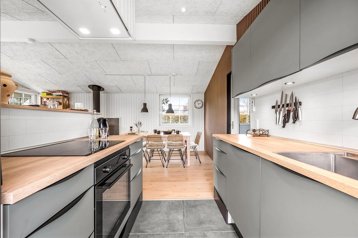 De keuken is uitgerust met koelkast Er is 4 inductiekookplaten, heteluchtoven, magnetron en vaatwasser.