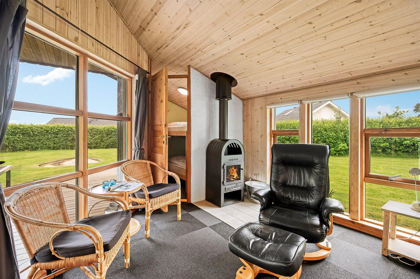 De vakantiewoning is gelegen op een 816 m² groot natuural grond. Afstand tot de fjord 500 m. Dichtstbijzijnde winkel 600 m. Bij de vakantiewoning hoort terras. Daarnaast is er een overdekt terras. Schommel. Zandbak.Vuurplaats. Parkeerplaats bij het huis.