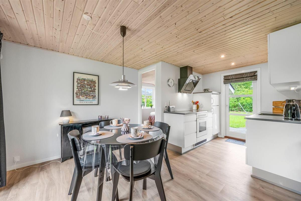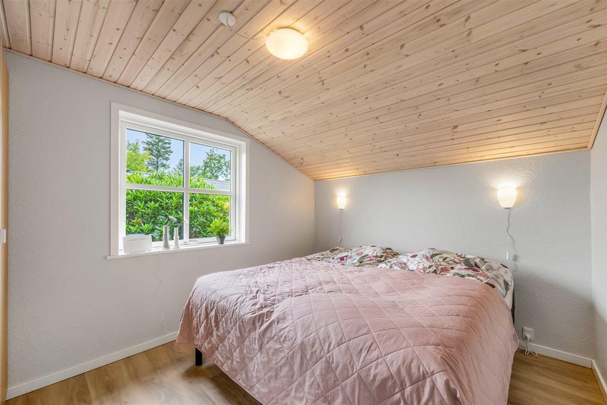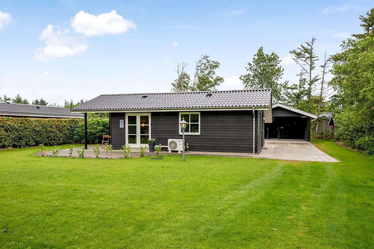 De vakantiewoning is gelegen op een 800 m² groot aangelegde tuin. Afstand tot de zee 20000 m. Afstand tot de fjord 200 m. Dichtstbijzijnde winkel 6000 m. Bij de vakantiewoning hoort terras. Afstand tot speelplaats 500 m.Garage ter beschikking. Parkeerplaats bij het huis.