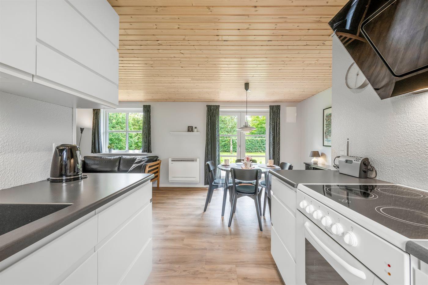De keuken is uitgerust met koelkast Er is 4 elektrische kookplaten, heteluchtoven.