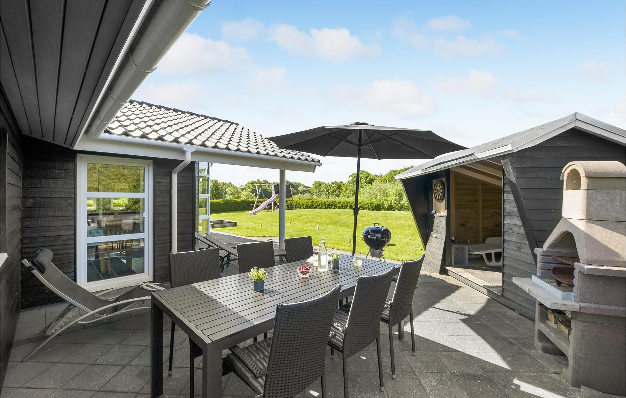Geniet van de zon op het terras, speel een spelletje croquet, serveer lekkere gerechten van de barbecue en kijk hoe je kinderen schommelen op de schommels.