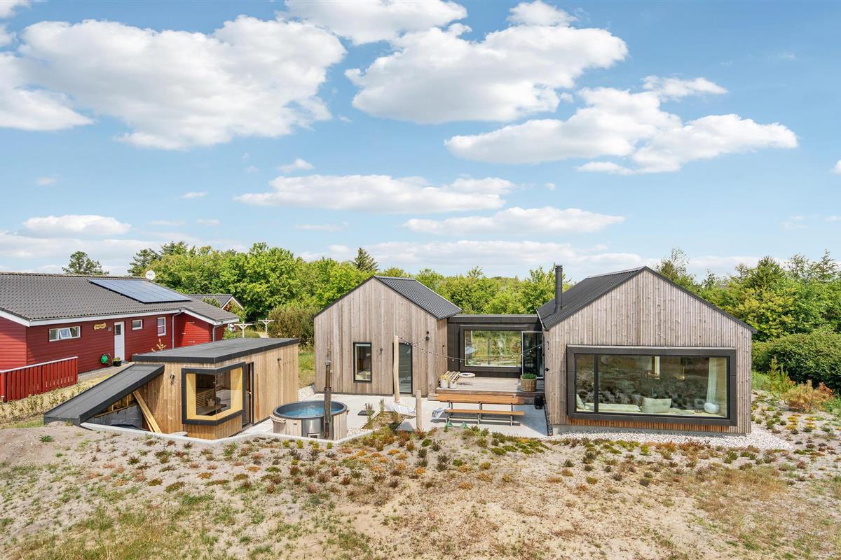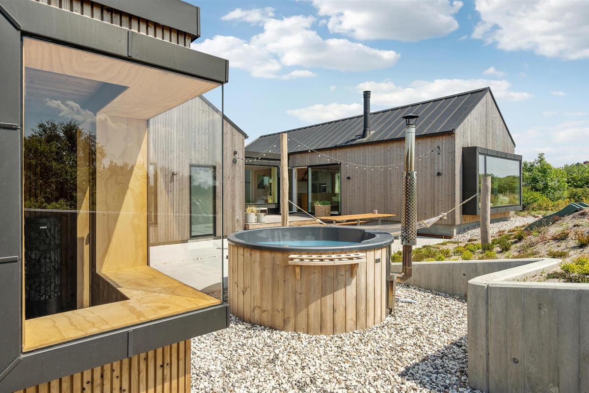 Modern vakantiehuis met wellness nabij Ringkøbing Fjord en Skaven Strand, perfect voor ontspanning en buitenplezier.
