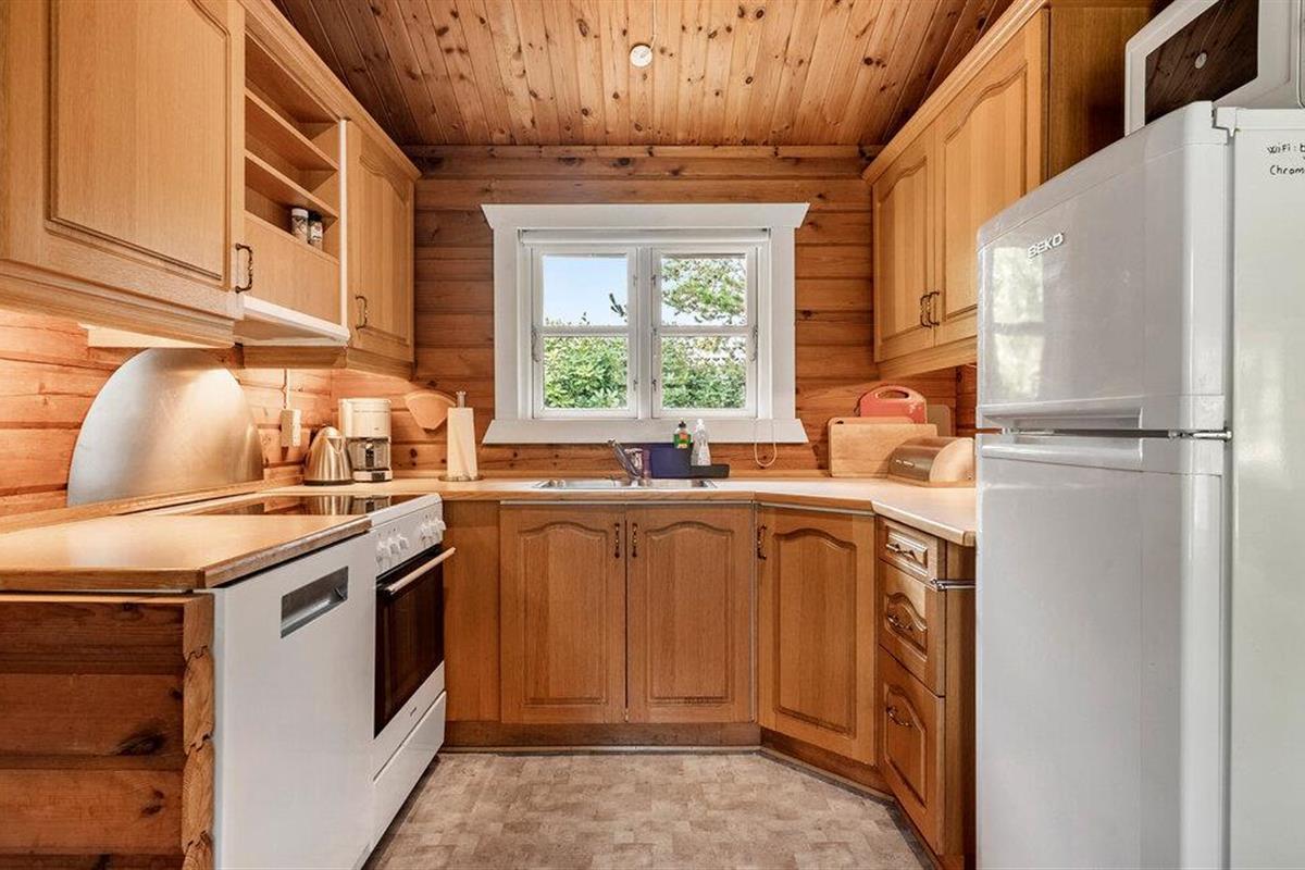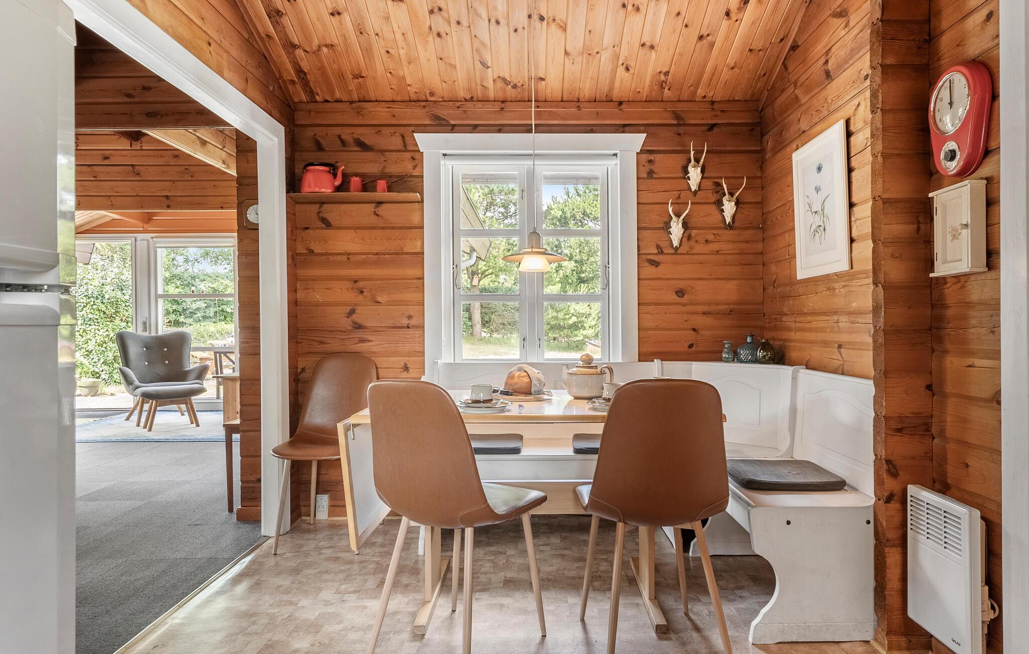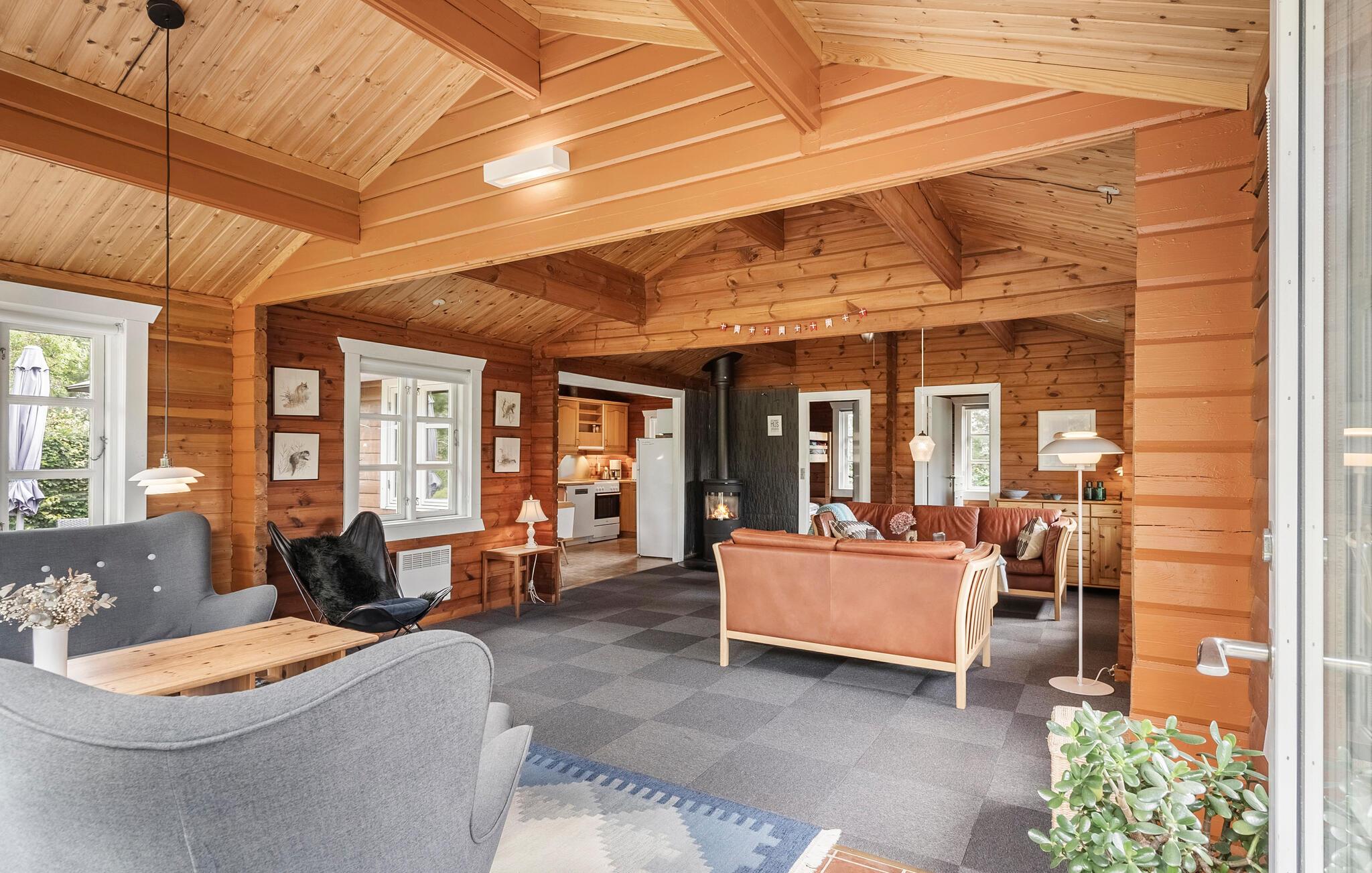 Het interieur van dit huis wordt gekenmerkt door rustiek en warmte. Natuurlijk gekleurde houten lambrisering, gezellige banken en een houtkachel creëren een sfeer waarin je je op je gemak voelt en snel kunt ontspannen. Luister naar je favoriete muziek, een interessante podcast of geniet gewoon van het niets doen. De moderne keuken nodigt uit om samen te koken en te dineren.