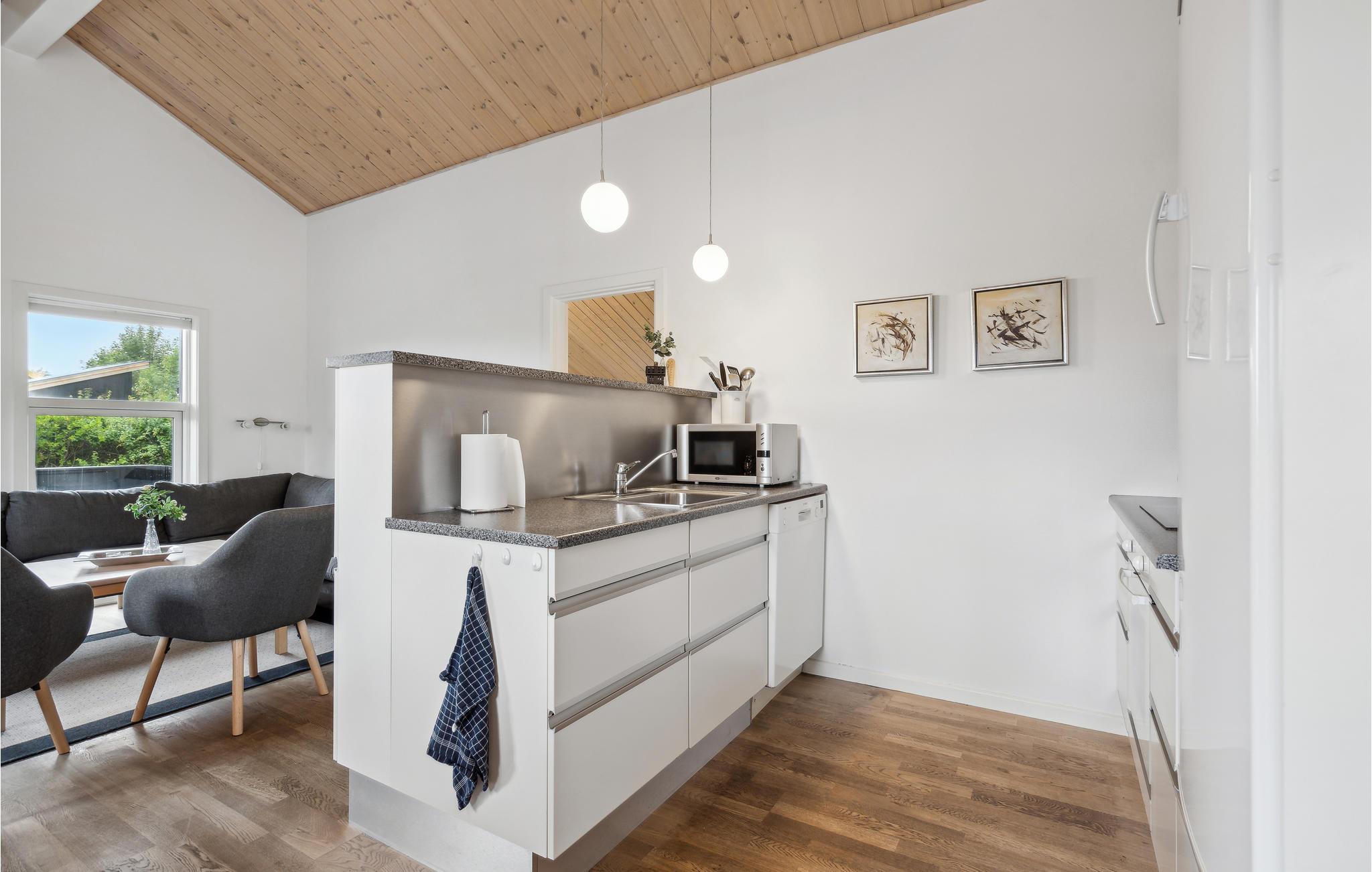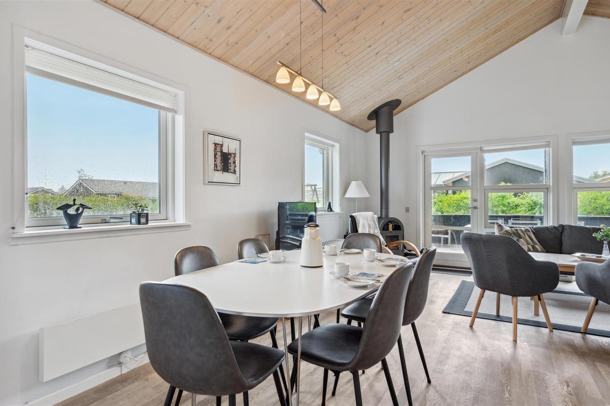 Vlakbij Ringkøbing Fjord, verwelkomt dit vakantiehuis u op een prachtige, beschutte locatie. Het biedt een comfortabel ingericht interieur dat een heldere, vriendelijke indruk maakt en je uitnodigt om te ontspannen en tot rust te komen. In de gezellige zithoek kun je je favoriete bordspel spelen en in de fauteuil kun je je aan je vakantie lezen terwijl de vlammen zachtjes knetteren in de houtkachel.