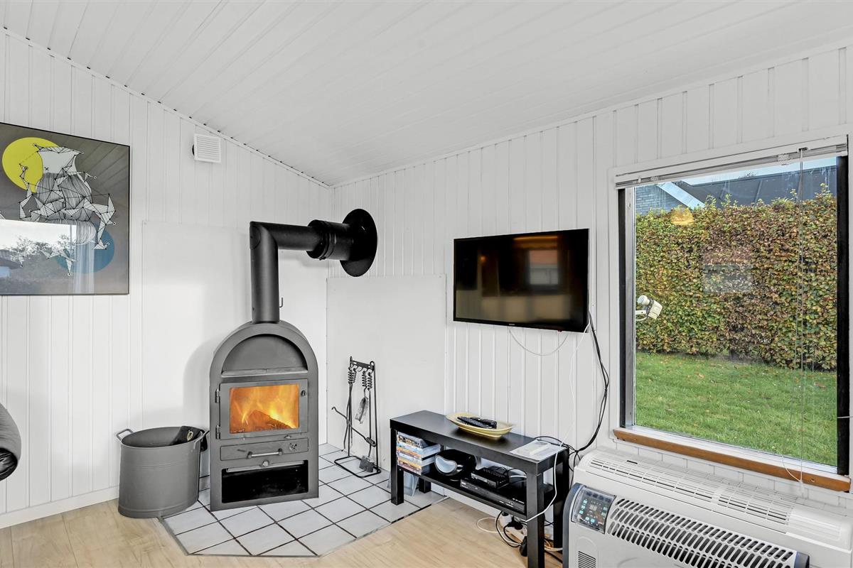 Geniet van een gezellig vakantiehuis vlakbij het fjord in Tarm, Denemarken, met houtkachel en terras voor ontspanning.