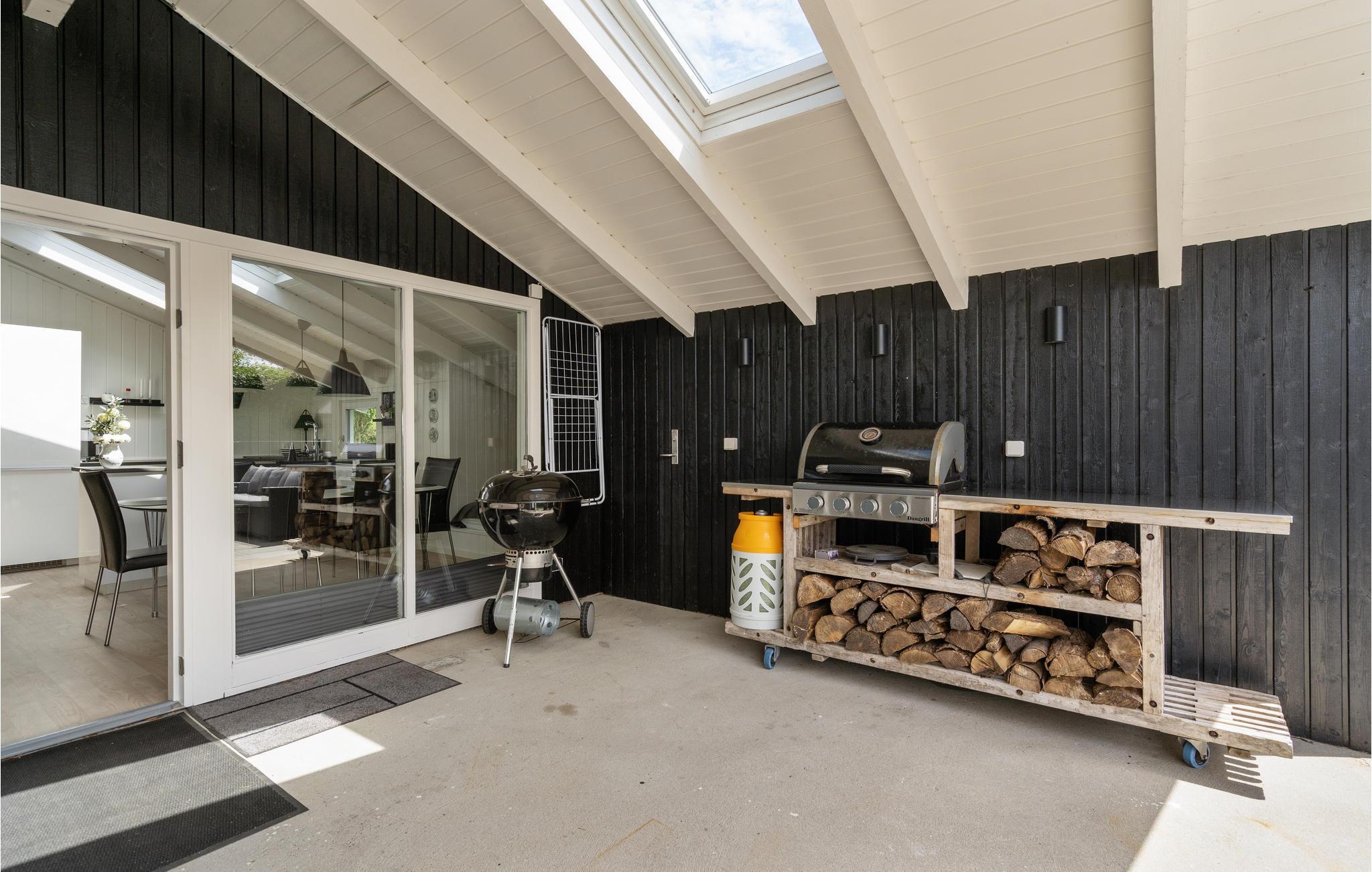 Geniet van een modern vakantiehuis vlakbij het kindvriendelijke Skaven Strand met tuin en hot tub.