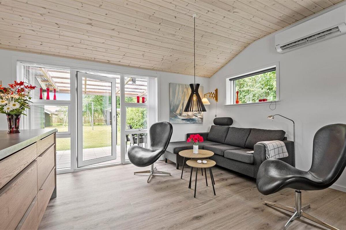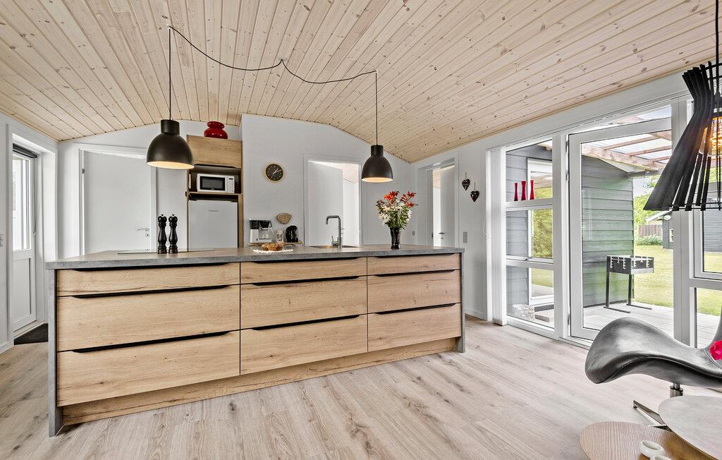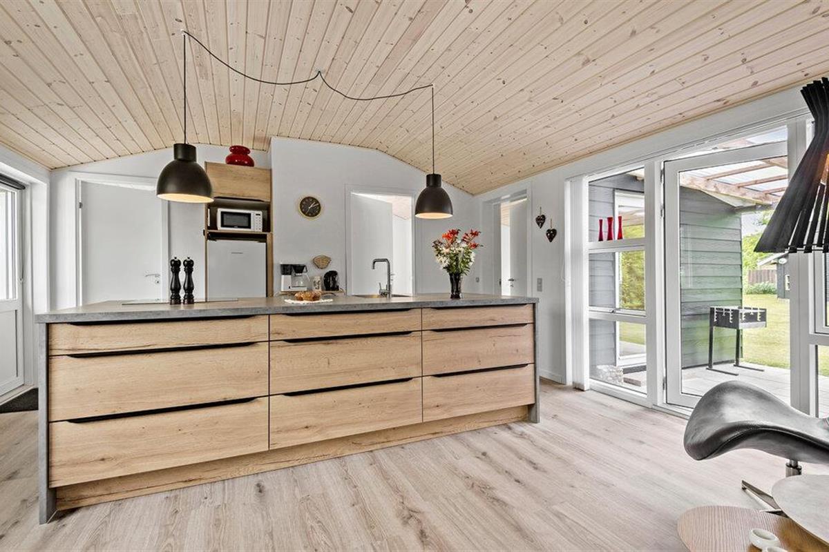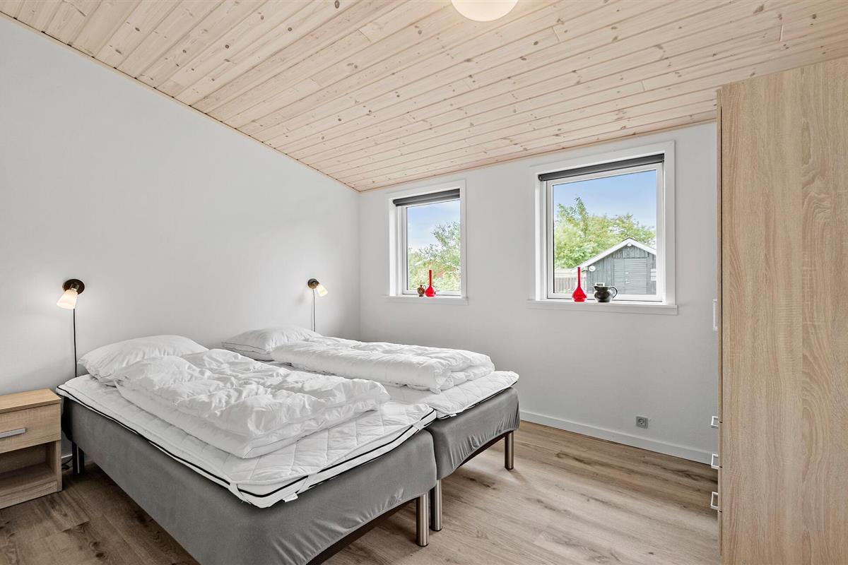 Geniet van een welverdiende vakantie in dit gezellige vakantiehuis, op slechts een steenworp afstand van Ringkøbing Fjord. Het volledig gerenoveerde huis biedt modern comfort in een charmante sfeer. De open keuken nodigt u uit om samen met familie of vrienden te koken. De ruime woonkamer creëert een uitnodigende sfeer, ideaal om te ontspannen op de comfortabele zitmeubelen. Vanuit de woonkamer heb je direct toegang tot een overdekt terras, dat een prachtig uitzicht biedt op de mooie tuin van het zomerhuis. Aan het einde van de tuin is nog een overdekt terras met gezellig loungemeubilair, ideaal voor rustige uurtjes in de buitenlucht.
