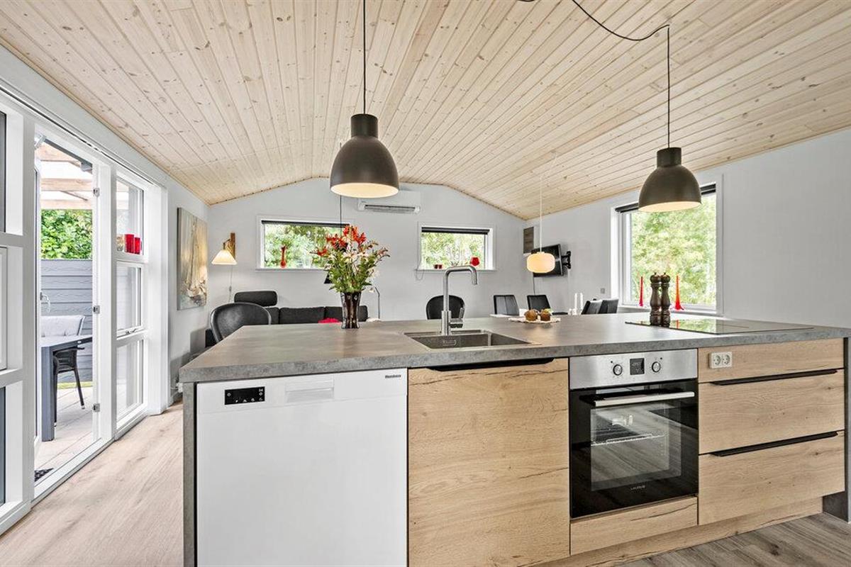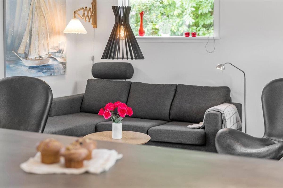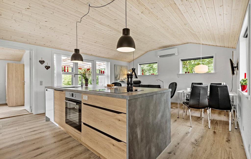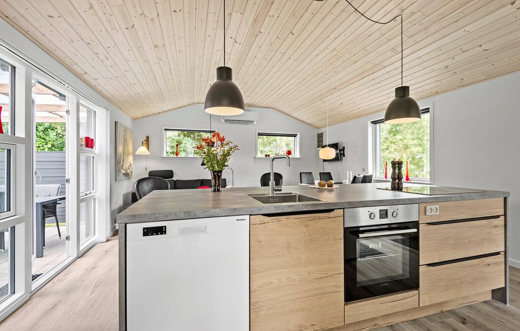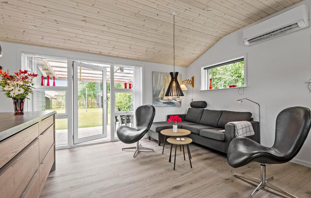Geniet van een welverdiende vakantie in dit gezellige vakantiehuis, op slechts een steenworp afstand van Ringkøbing Fjord. Het volledig gerenoveerde huis biedt modern comfort in een charmante sfeer. De open keuken nodigt u uit om samen met familie of vrienden te koken. De ruime woonkamer creëert een uitnodigende sfeer, ideaal om te ontspannen op de comfortabele zitmeubelen. Vanuit de woonkamer heb je direct toegang tot een overdekt terras, dat een prachtig uitzicht biedt op de mooie tuin van het zomerhuis. Aan het einde van de tuin is nog een overdekt terras met gezellig loungemeubilair, ideaal voor rustige uurtjes in de buitenlucht.