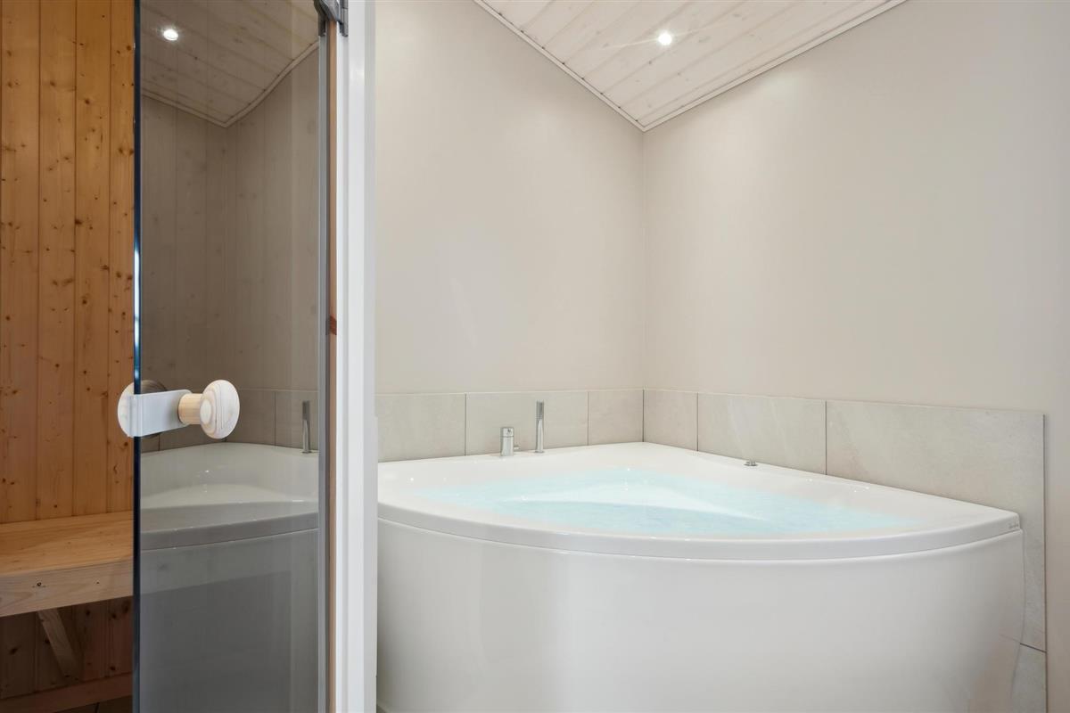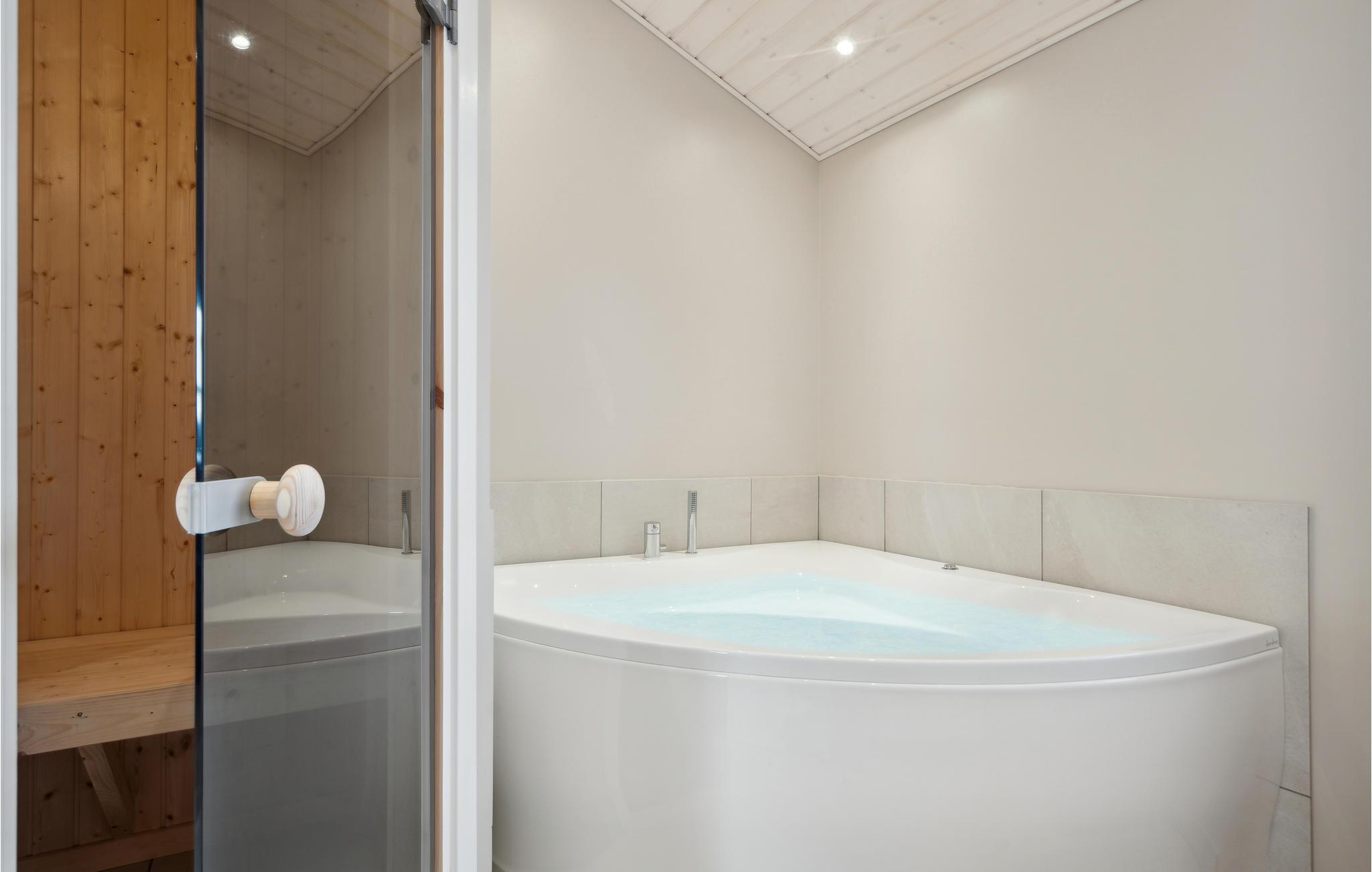 De lichte woonkamer met grote ramen en veel natuurlijk licht nodigt uit tot ontspannen en gezellig samenzijn. Maak het jezelf gemakkelijk op de gezellige bank, speel samen spelletjes of geniet van een filmavond. Op koelere dagen zorgt de houtkachel voor gezellige warmte. De moderne keuken met kookeiland biedt veel ruimte om te koken en staat in open verbinding met de eethoek. Een sauna en whirlpool zijn beschikbaar voor je ontspanning.