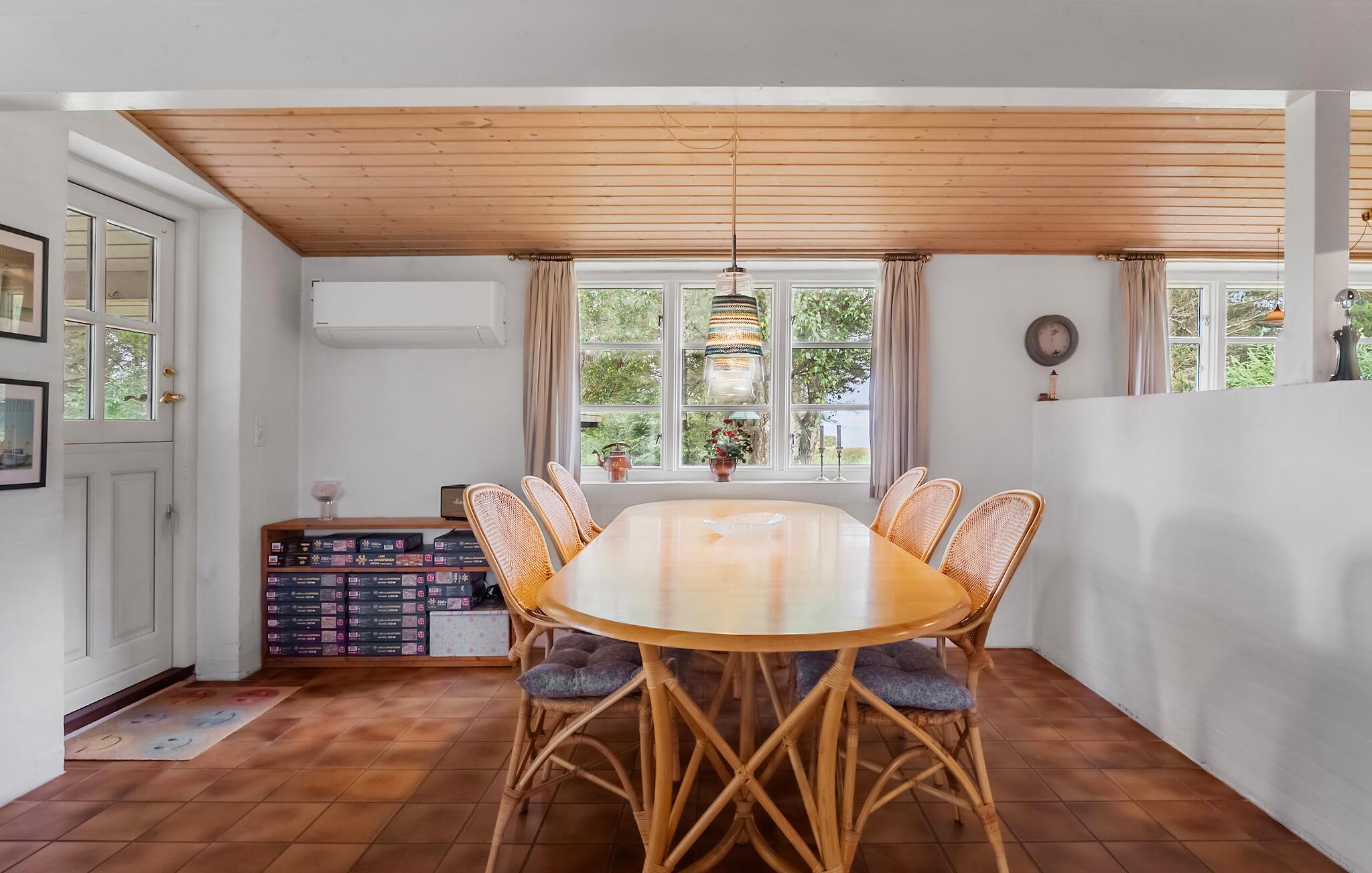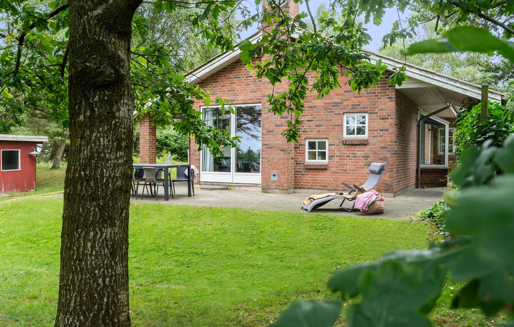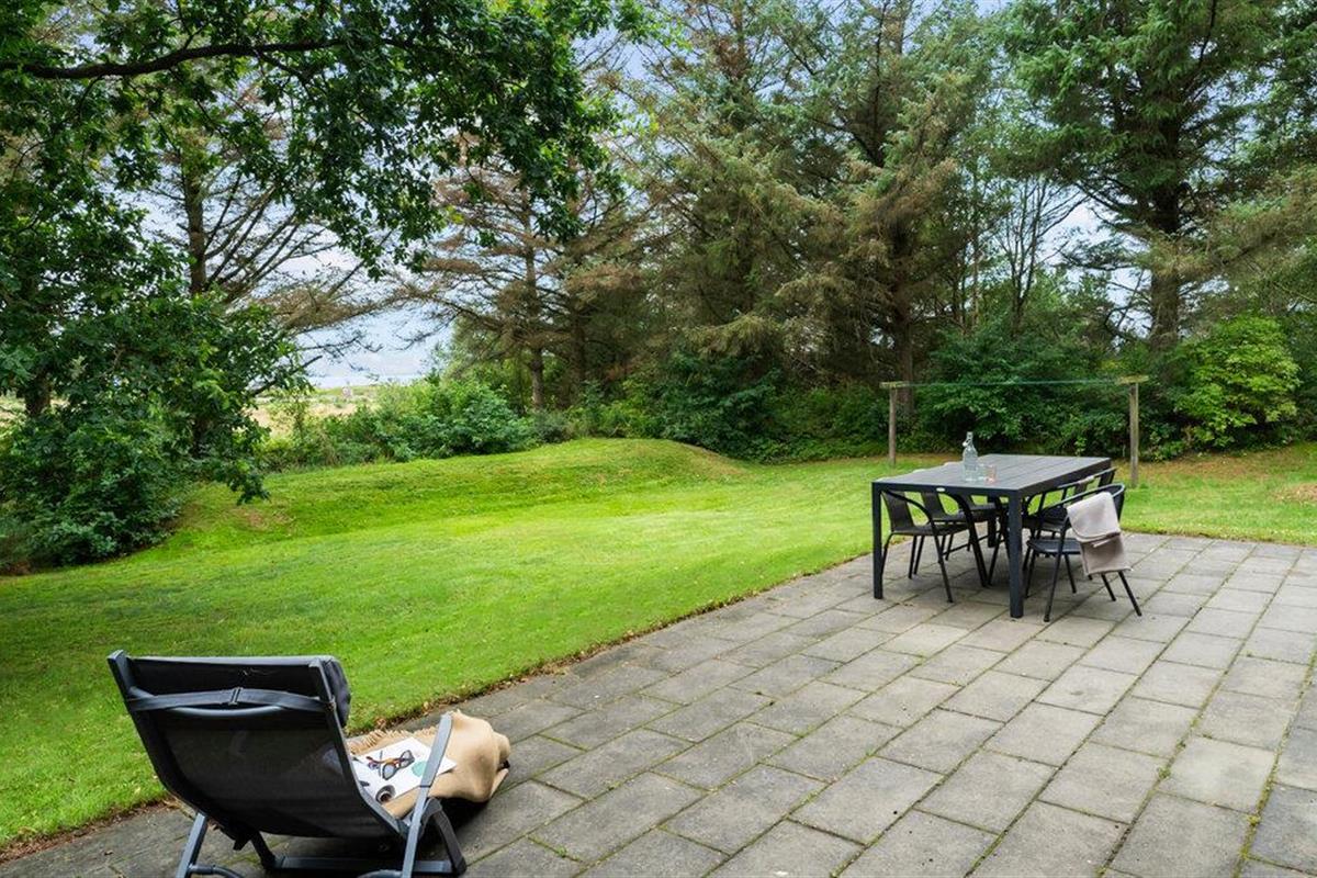 Gebruik het terras om buiten te eten of te zonnebaden met uitzicht op het groen en het Ringkøbing Fjord. Het grote gazon is ideaal om te spelen of te ontspannen in een ligstoel. Trek je terug en geniet van de rust met alleen het geluid van de bomen om je heen.