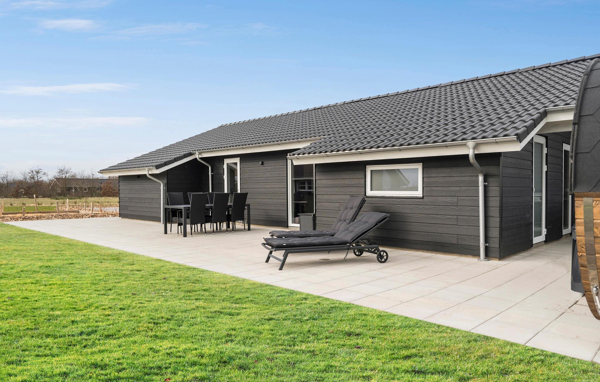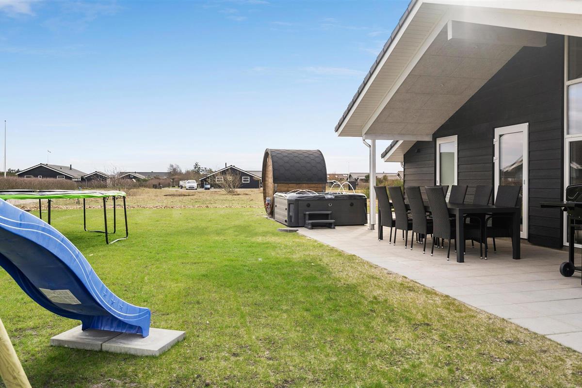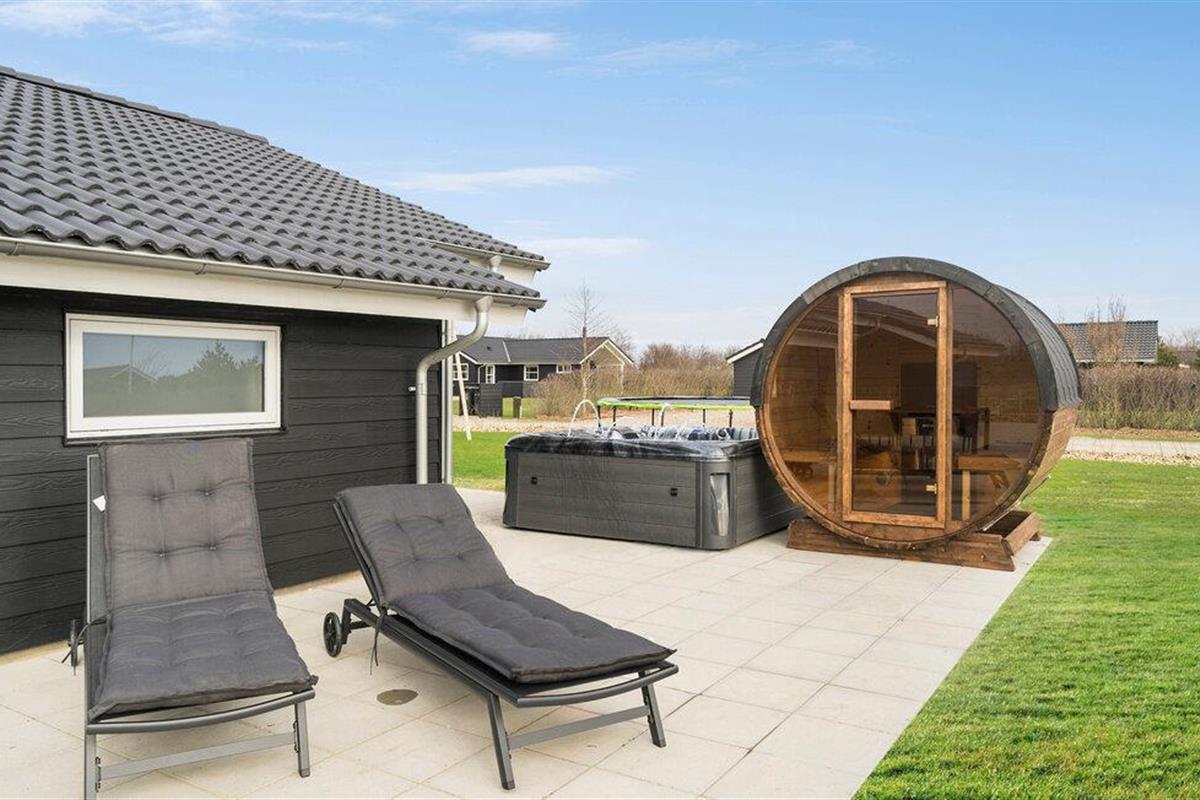 Modern vakantiehuis bij Skaven Strand met wellness en speeltuin, ideaal voor gezinnen.
