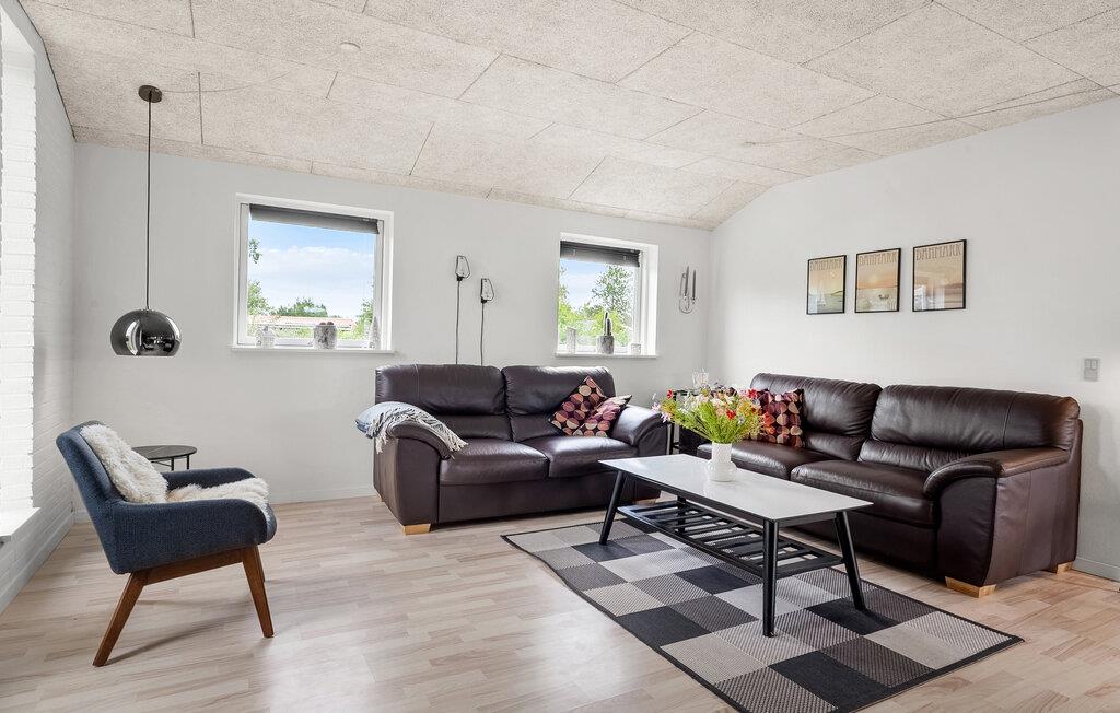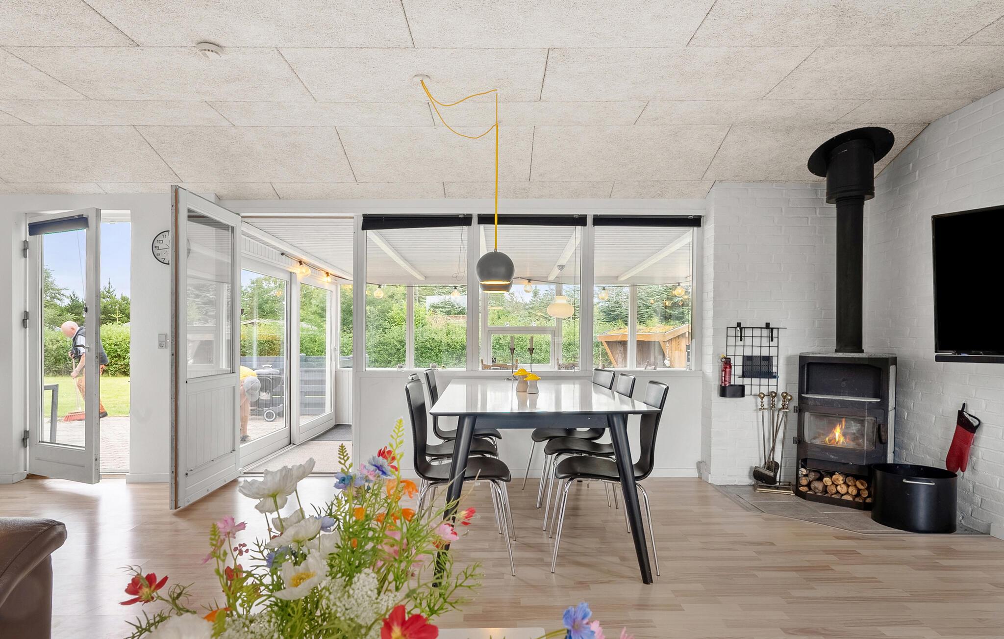 Ontdek dit gezellige vakantiehuis aan Skaven Strand met whirlpool en open haard, vlak bij het prachtige Ringkøbing Fjord.