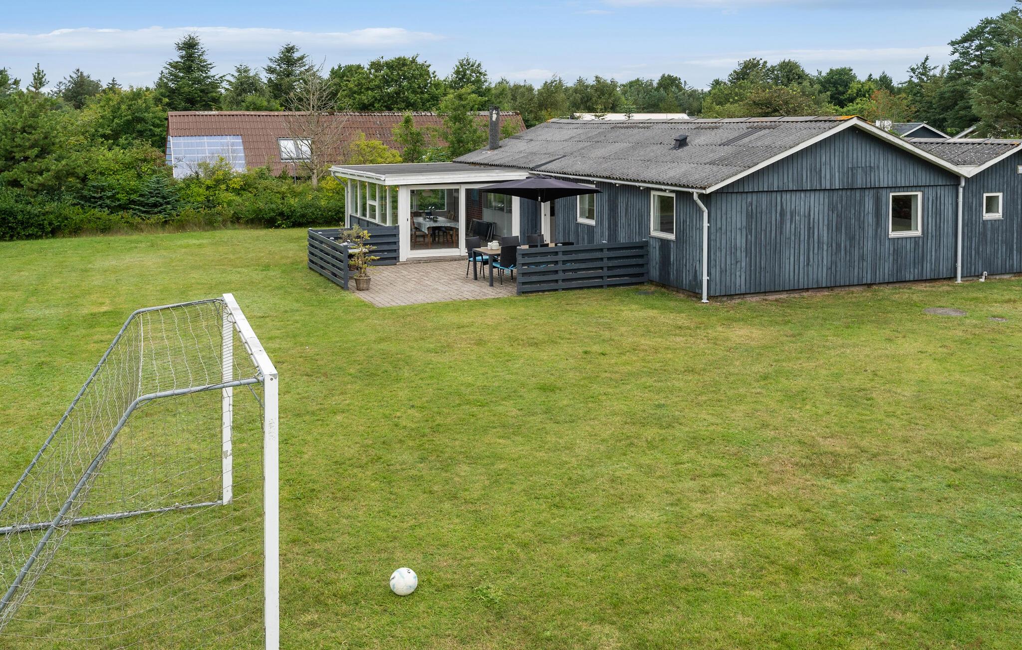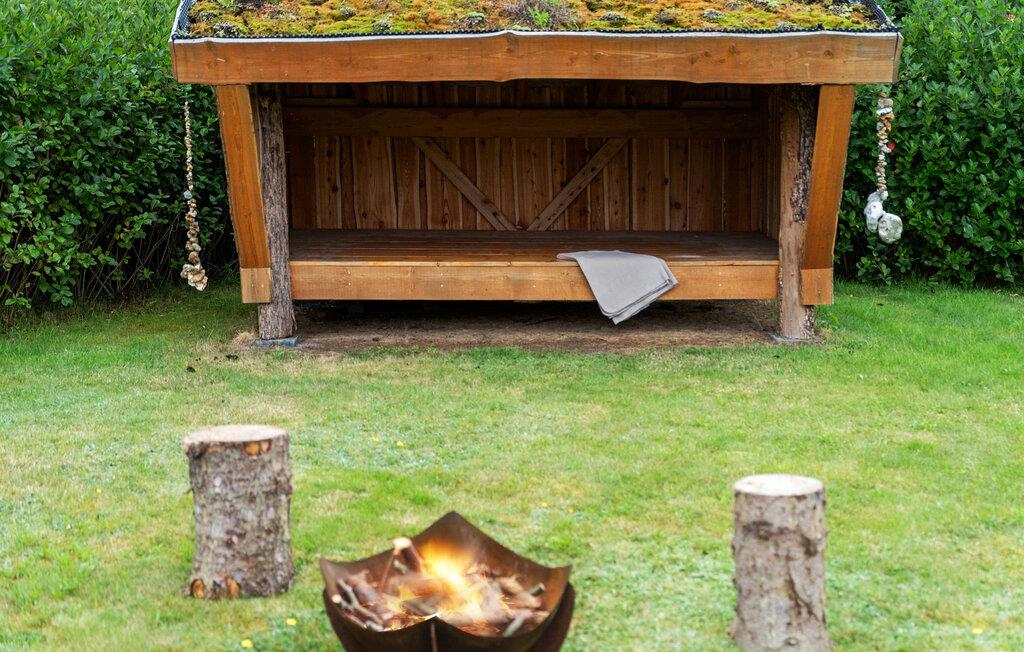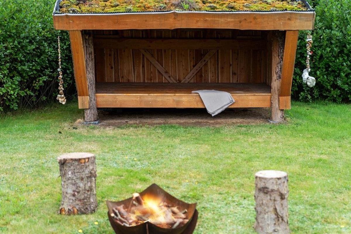 Neem je vakantieleven mee naar buiten op het terras. Het ruime gazon nodigt uit tot balspelen, terwijl de schuilhut een heerlijk toevluchtsoord is. s Avonds kan het hele gezin samenkomen rond de kleine open haard.