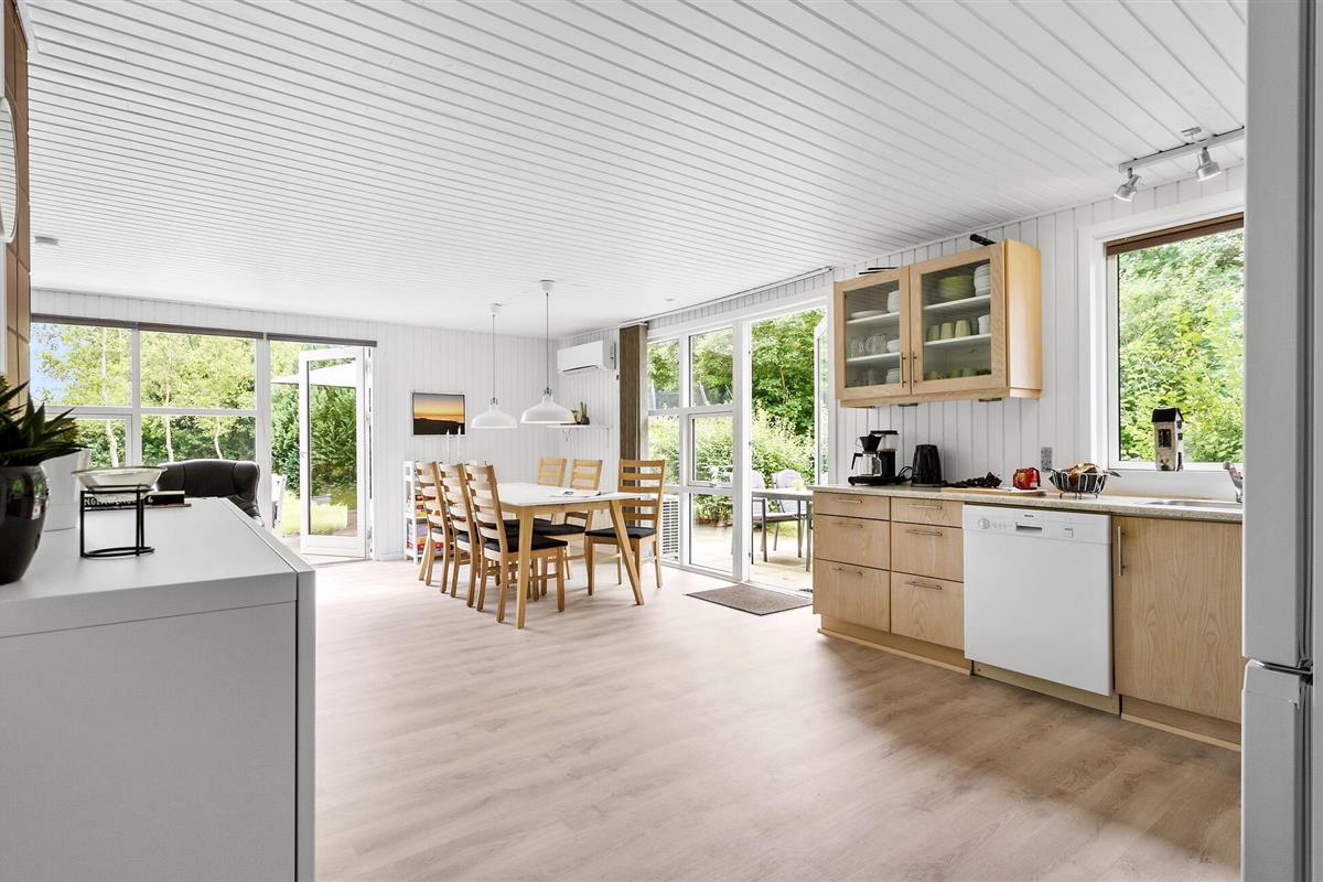 Er wacht je een heerlijke familievakantie in dit charmante vakantiehuis, dat direct aan Ringkøbing Fjord ligt. Begin je ochtend met een stevig ontbijt, dat je kunt bereiden in de goed uitgeruste, open keuken. Geniet er samen van aan de eettafel in de gezellige woonkamer met uitzicht op de tuin. Of neem je ontbijt bij mooi weer mee naar het terras. Daarna kun je je kinderen laten rondrennen in de tuin. De trampoline, schommel en glijbaan hebben ze vast al ontdekt. Ontspan ondertussen bij de houtkachel in de gezellige zithoek.