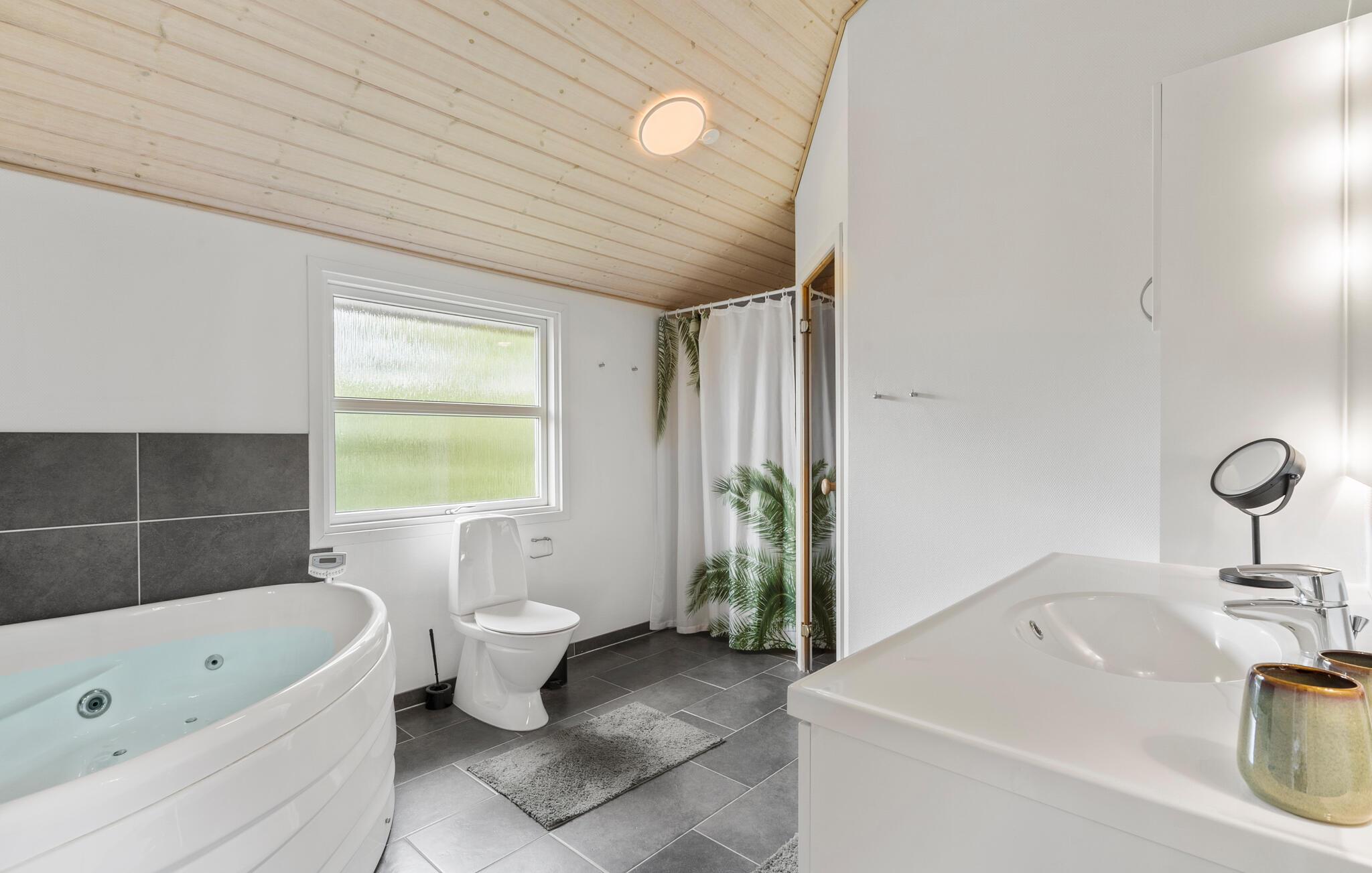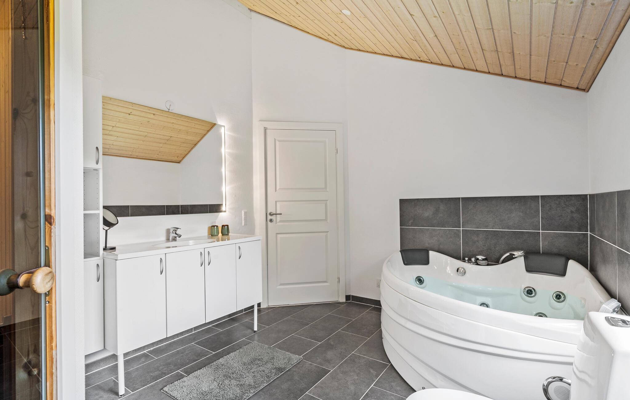 Dit uitnodigende vakantiehuis aan het einde van een rustige doodlopende straat biedt je een ideale symbiose van stijl en gezelligheid. De lichte en smaakvolle inrichting creëert een uitnodigende sfeer die je meteen op je gemak stelt. De ruime keuken staat in open verbinding met de woonkamer, zodat je altijd in het gezelschap van je geliefden kunt zijn. De houtkachel in de woonkamer verspreidt gezellige warmte en kan zowel vanaf de bank als vanuit de keuken worden gebruikt. Ontspan uitgebreid in de whirlpoolsauna.