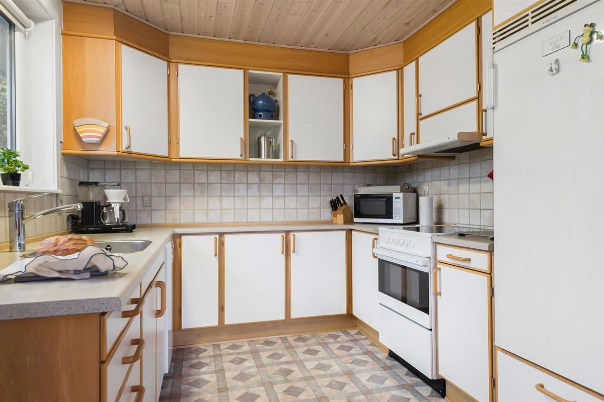 De klassieke en praktische inrichting creëert een gezellige sfeer die uitnodigt om te ontspannen. De open woonkamer met zijn praktische ontwerp is perfect voor gezellige of rustige avonden. Kook, eet of ontspan samen op de bank.