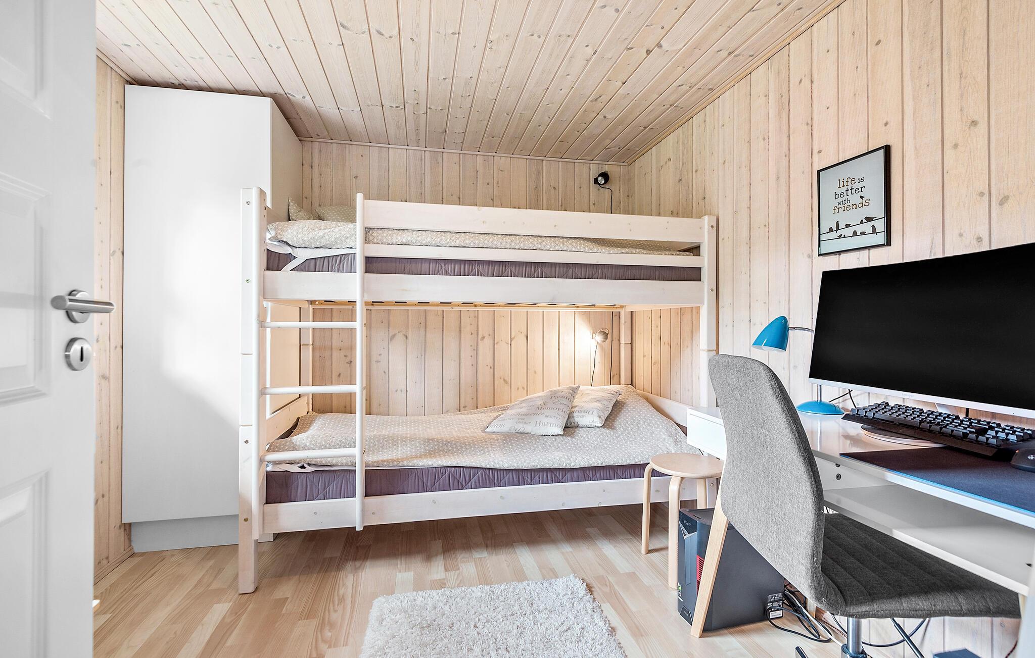 Laat het leven van alledag achter je en geniet van de rust en het comfort van dit gezellige vakantiehuis. Begin de dag met een ontbijt op het overdekte terras en geniet van de rustige sfeer. Je kunt ook de barbecue gebruiken om heerlijke maaltijden buiten te bereiden terwijl de kinderen op de schommels spelen of de gezamenlijke speeltuin in de buurt verkennen. Je kunt ook ontspannen in de sauna of voor de gezellige houtkachel in de woonkamer.