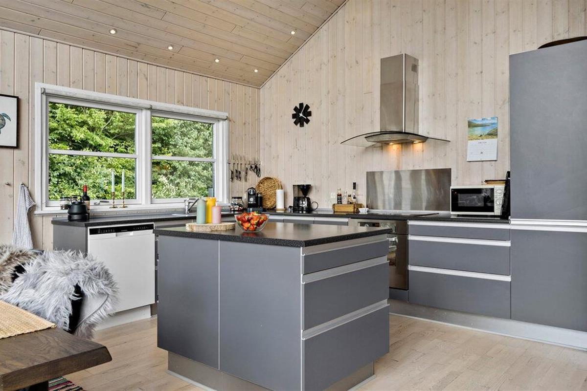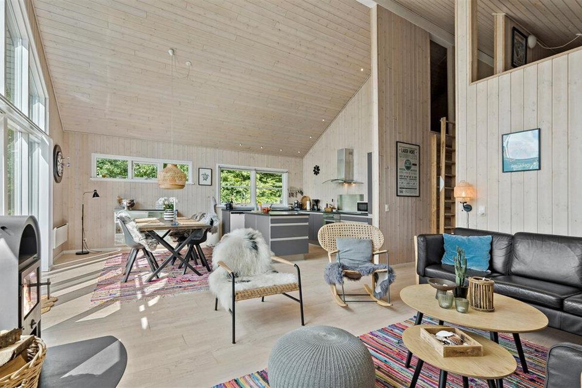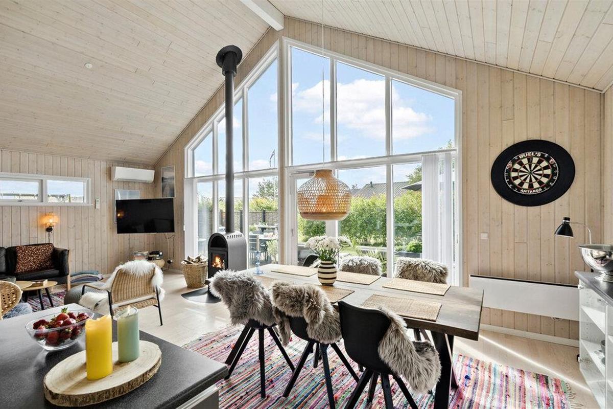 Geniet van een energiezuinig vakantiehuis met wellness, open haard en speelplek nabij het strand van Skaven Strand.