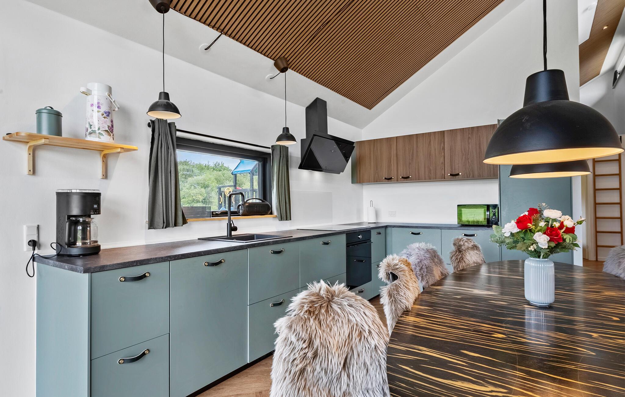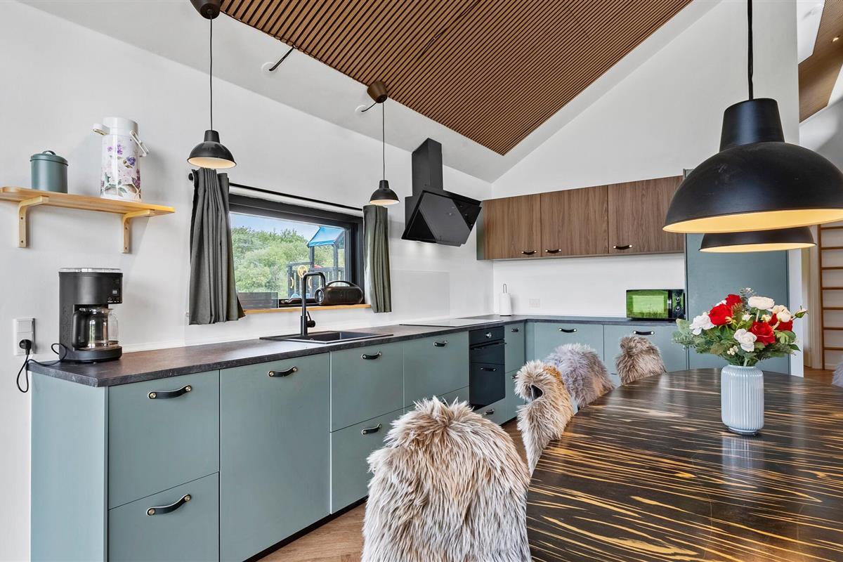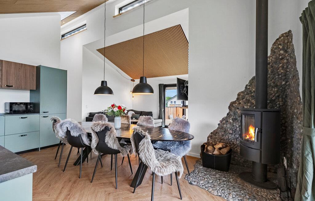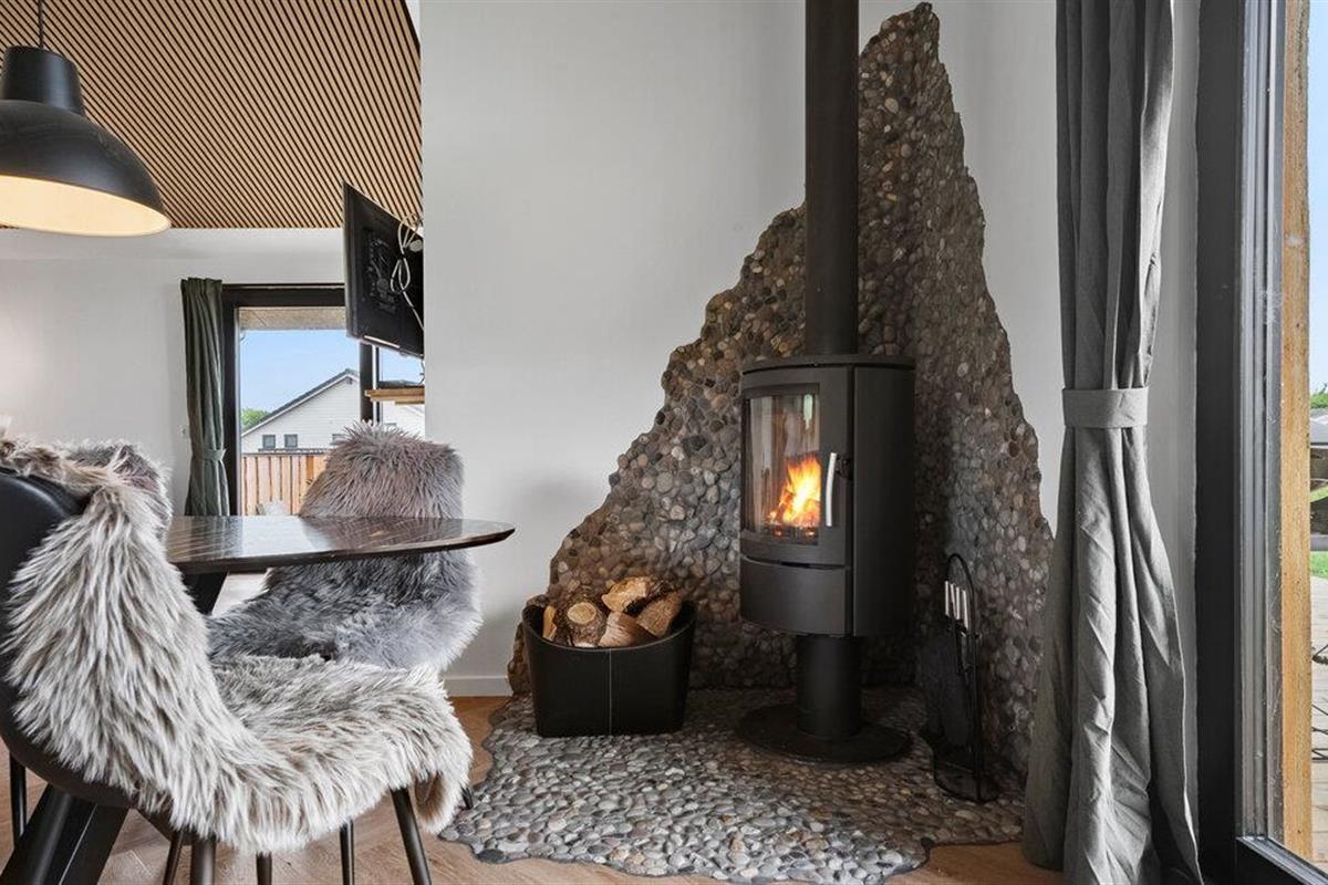 Dit stijlvolle en moderne vakantiehuis zal je verwennen met zijn gezellige, hoogwaardige interieur en charmante details. Verheug je op harmonieuze maaltijden aan de uitnodigende eettafel terwijl de houtkachel zachtjes knettert. Ontspan en klets op de grote bank, stream een goede film of geniet van een leuke spelletjesavond met je geliefden.