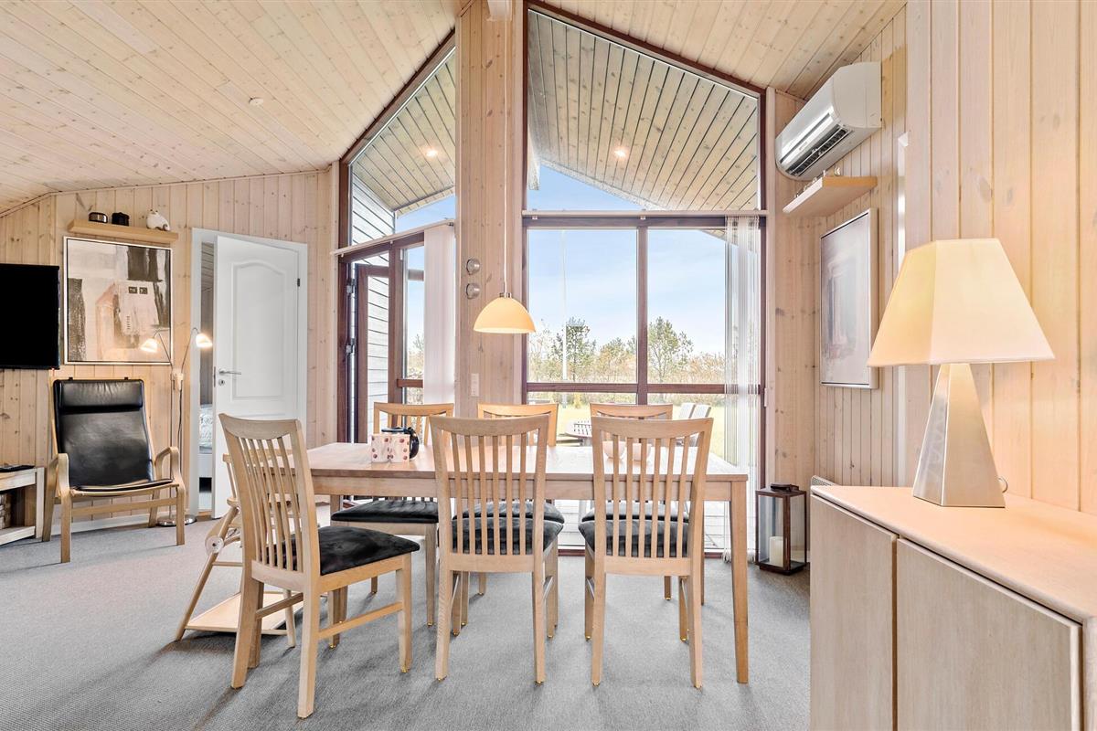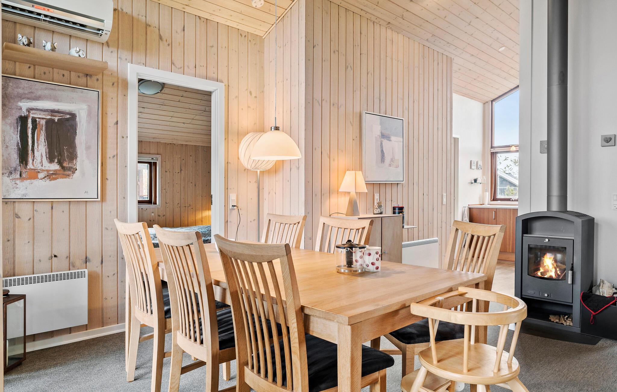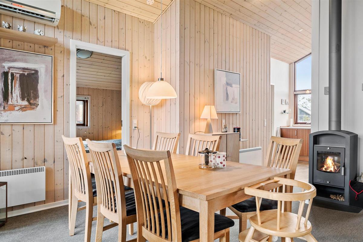 Dit gezellige vakantiehuis aan het einde van een doodlopende weg biedt u een rustig verblijf dicht bij Ringkøbing Fjord. Begin de dag met een ontbijt, dat je kunt bereiden in de praktisch uitgeruste keuken, en verzamel je daarna rond de uitnodigende houten eettafel in het woongedeelte. Daarna is het de vraag of je meteen in je Finse houten bad op het terras wilt springen of wilt ontspannen in de gezellige zithoek en eerst een leuk bordspel wilt spelen. De houtkachel zorgt voor een warme en gezellige sfeer.