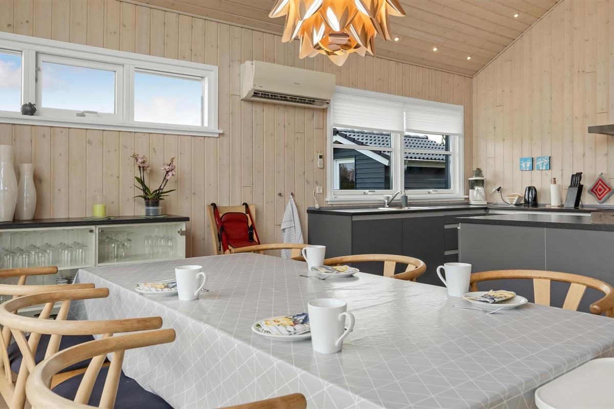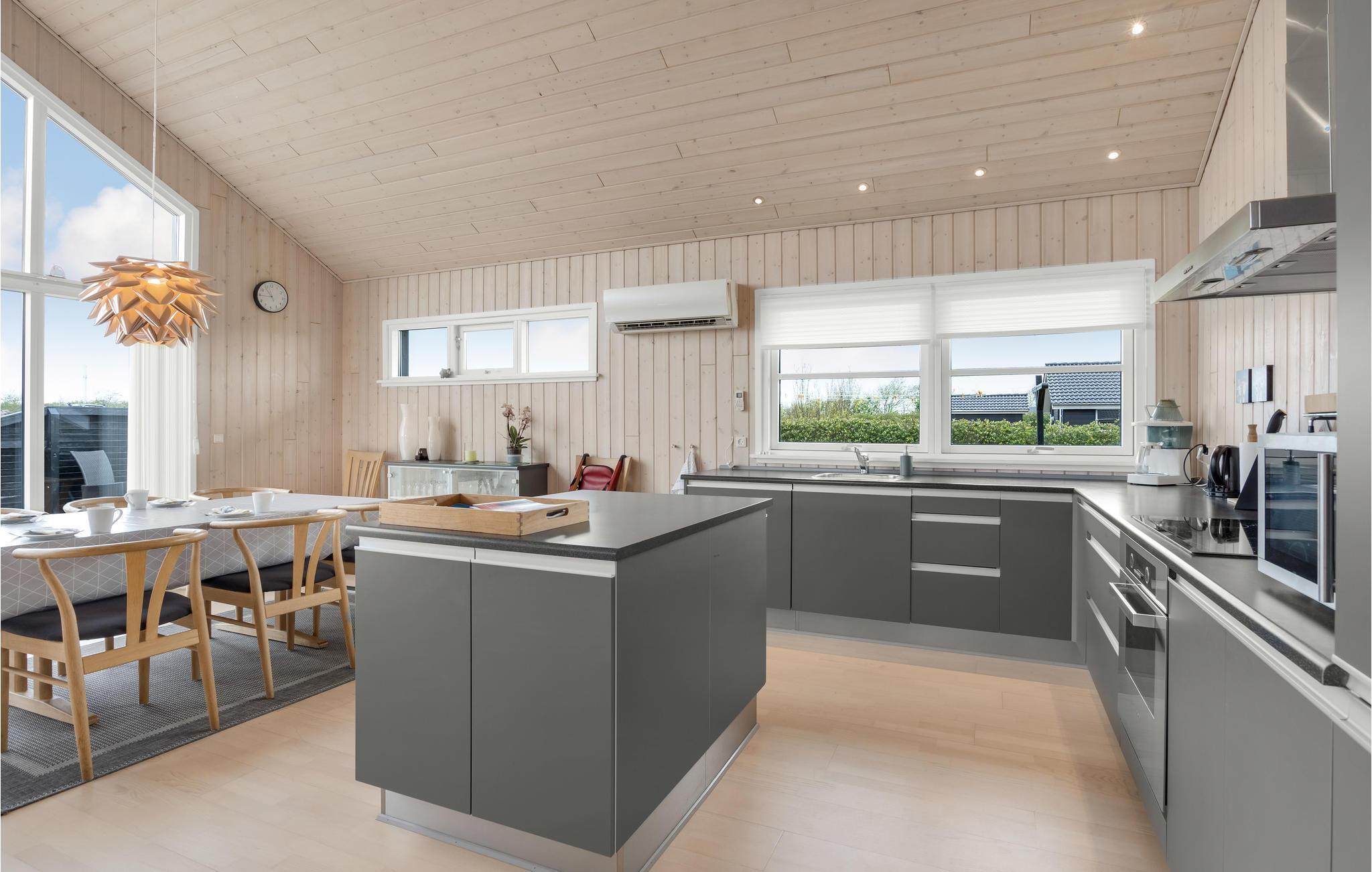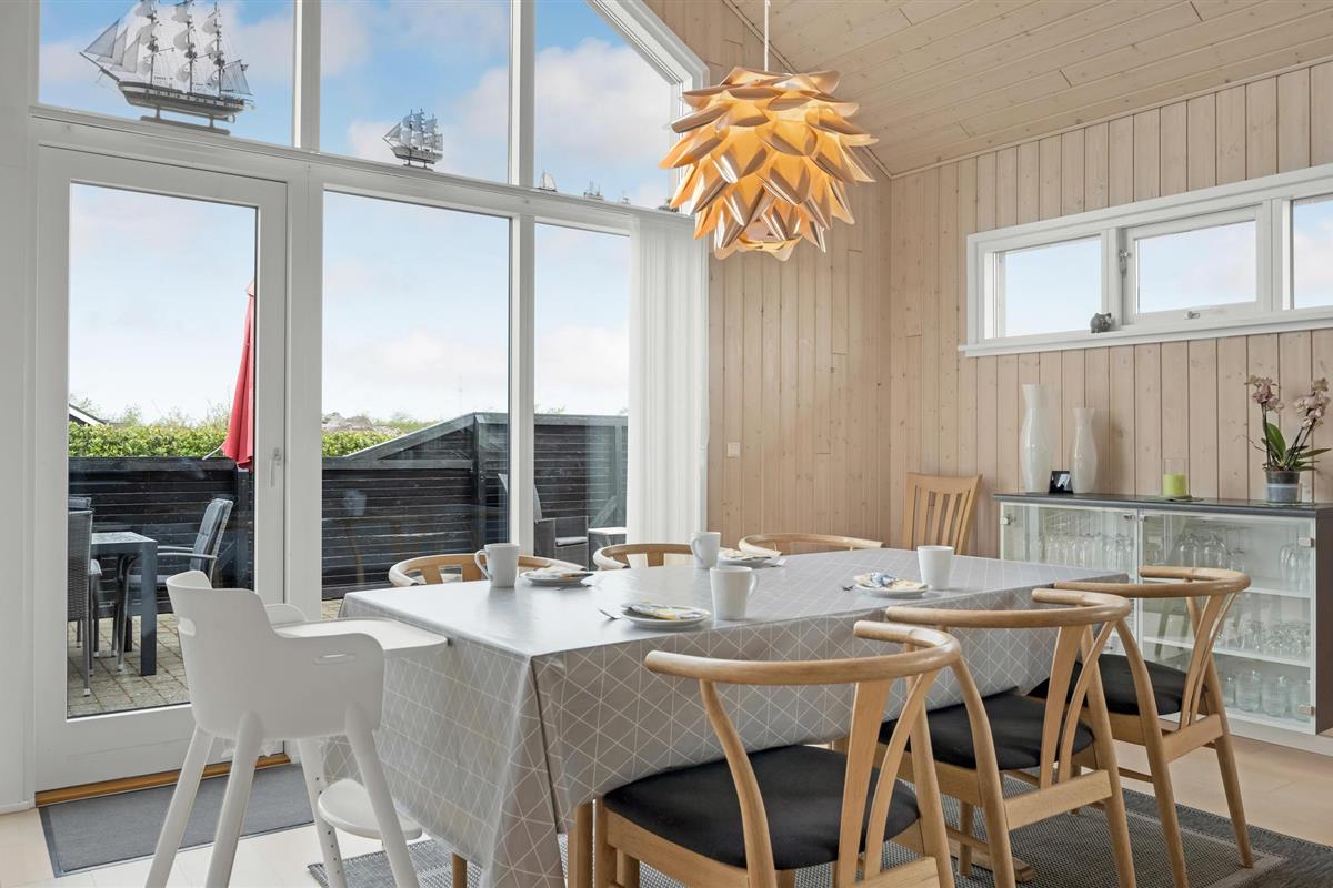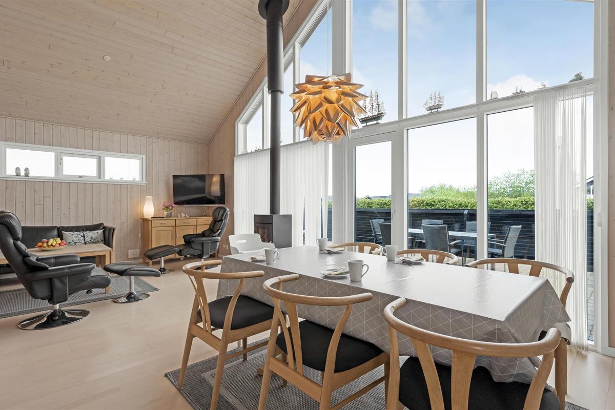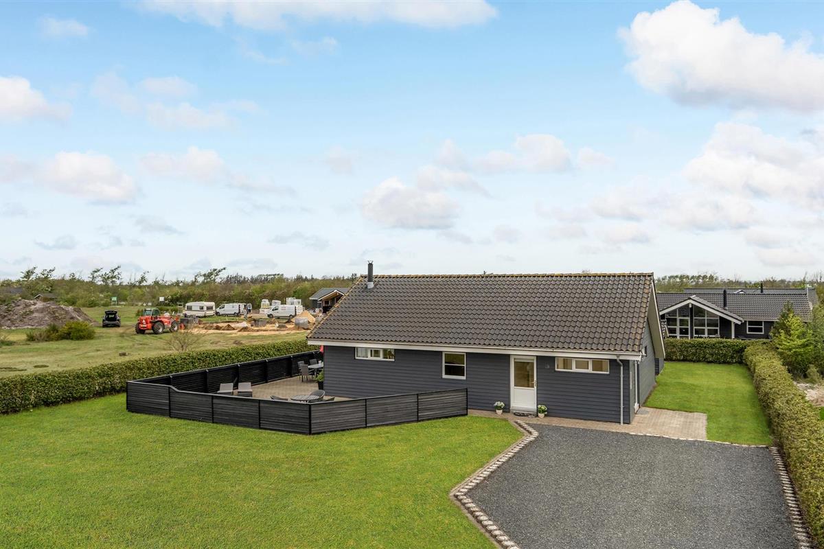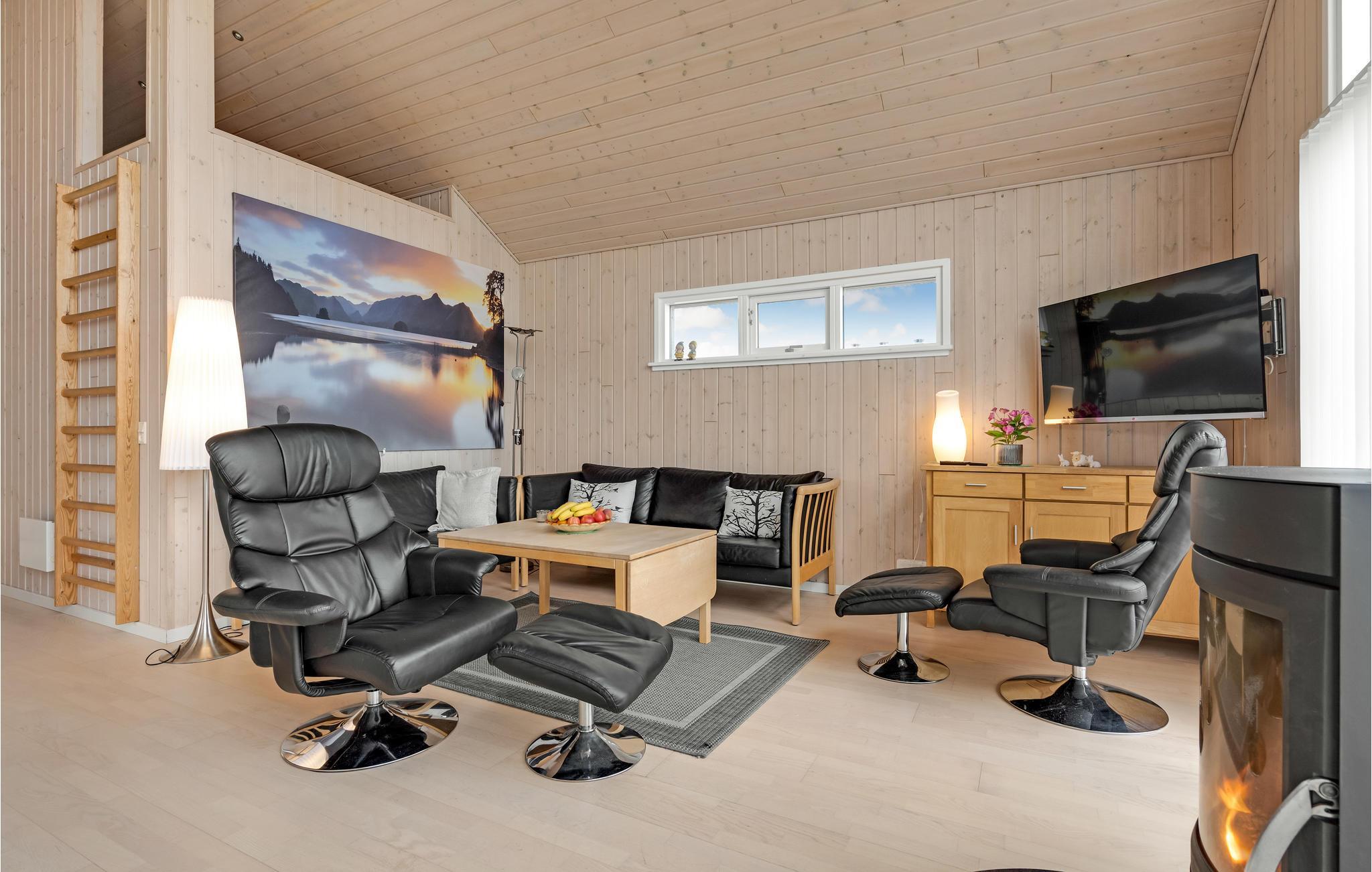 Comfortabel zomerhuis met sauna, whirlpool en panoramische ramen nabij het kindvriendelijke Skaven Strand.