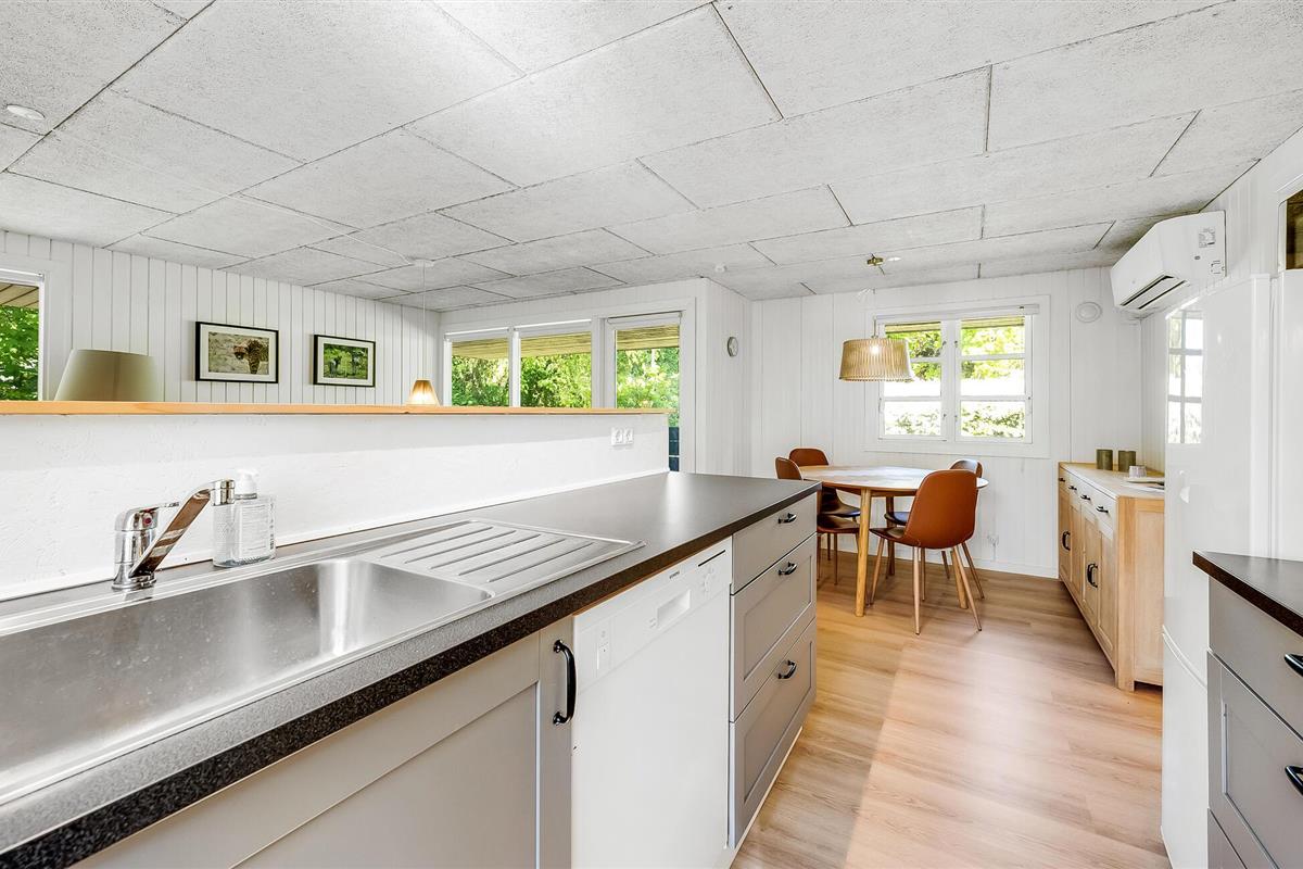 Het vakantiehuis ligt in het rustige recreatiegebied Skaven Strand, direct aan Ringkøbing Fjord. Het ondiepe, kindvriendelijke strand is ideaal om te zwemmen en te spetteren. Probeer te windsurfen, zeilen of kitesurfen en ervaar de maritieme flair van de regio. Uitstapjes naar het vogelreservaat Tipperne, Legoland of de dierentuin Givskud zorgen voor een afwisselende en onvergetelijke vakantie.