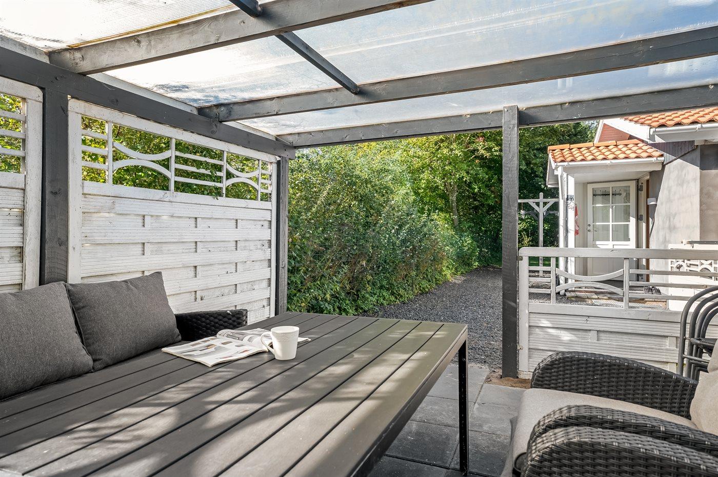 De vakantiewoning is gelegen op een 1265 m² groot aangelegde tuin. Afstand tot de zee 200 m. Dichtstbijzijnde winkel 5000 m. Bij de vakantiewoning hoort terras. Daarnaast is er een overdekt terras. Barbecue. Parkeerplaats bij het huis.