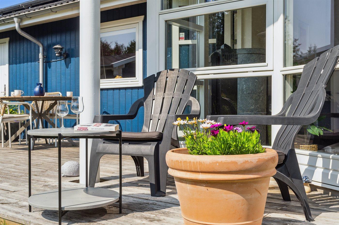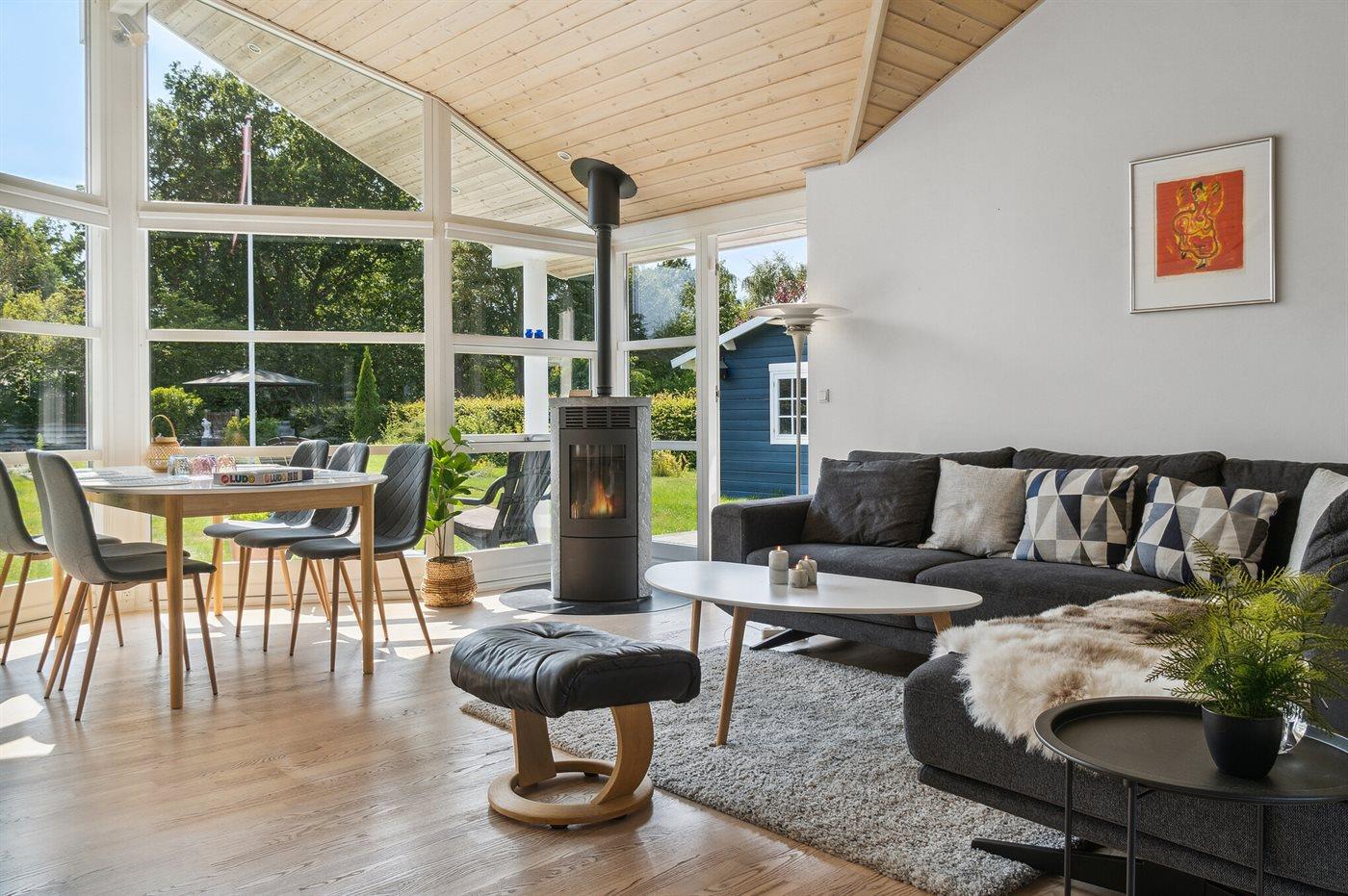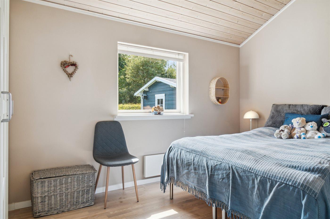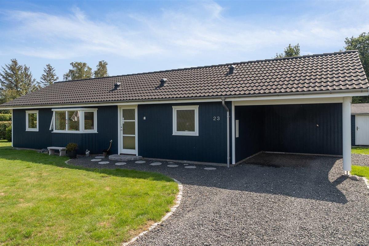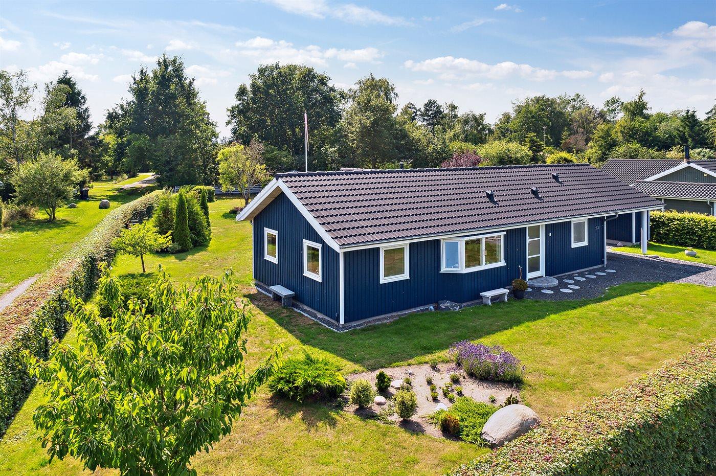 De vakantiewoning is gelegen op een 1200 m² groot natuural grond. Afstand tot de fjord 200 m. Dichtstbijzijnde winkel 3000 m. Bij de vakantiewoning hoort terras. Gereedschapsruimte. Zandbak. Trampoline.Vuurplaats. Barbecue. Carport ter beschikking. Parkeerplaats bij het huis.