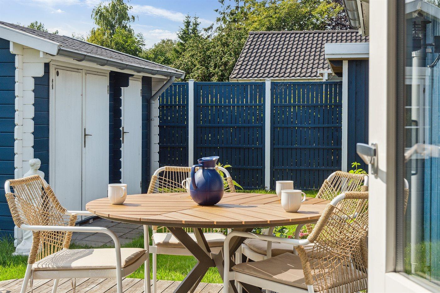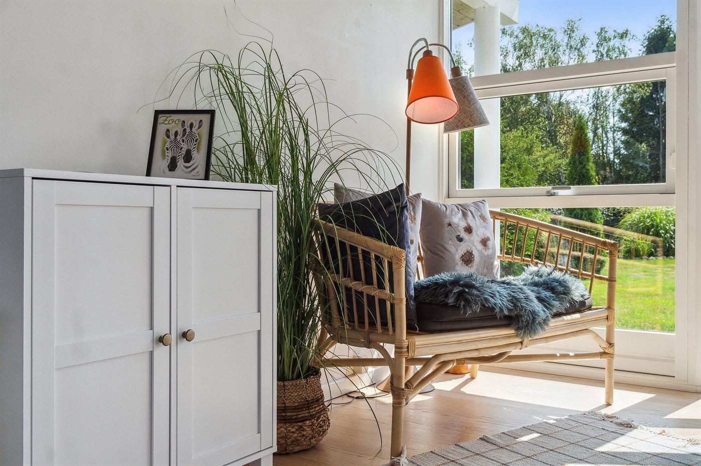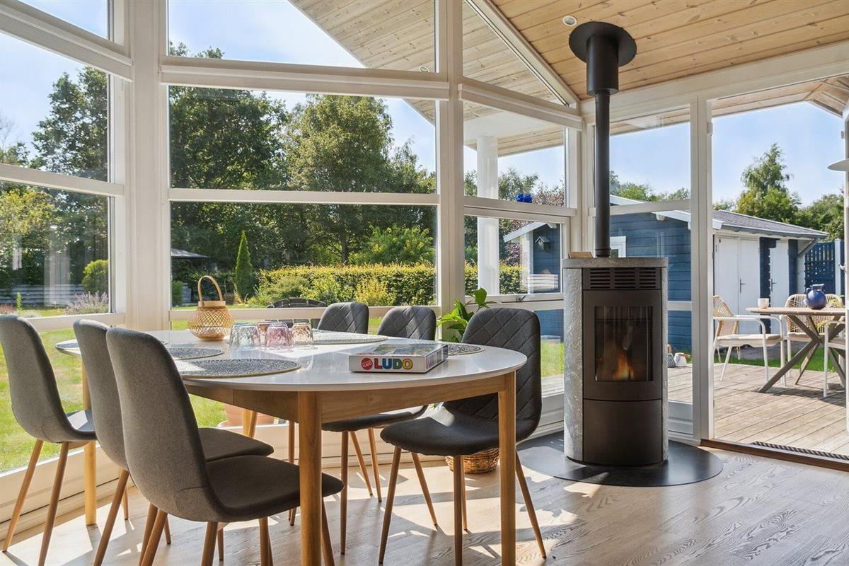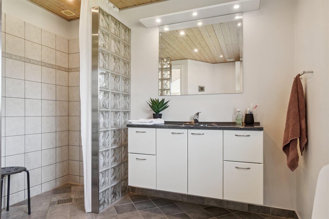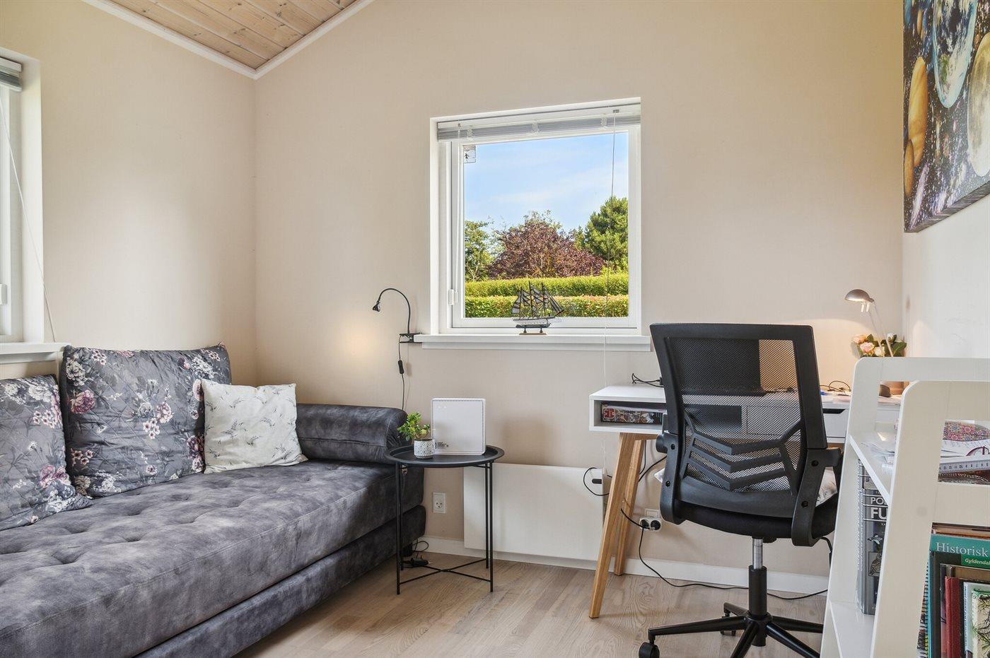 De vakantiewoning is gelegen op een 1200 m² groot natuural grond. Afstand tot de fjord 200 m. Dichtstbijzijnde winkel 3000 m. Bij de vakantiewoning hoort terras. Gereedschapsruimte. Zandbak. Trampoline.Vuurplaats. Barbecue. Carport ter beschikking. Parkeerplaats bij het huis.