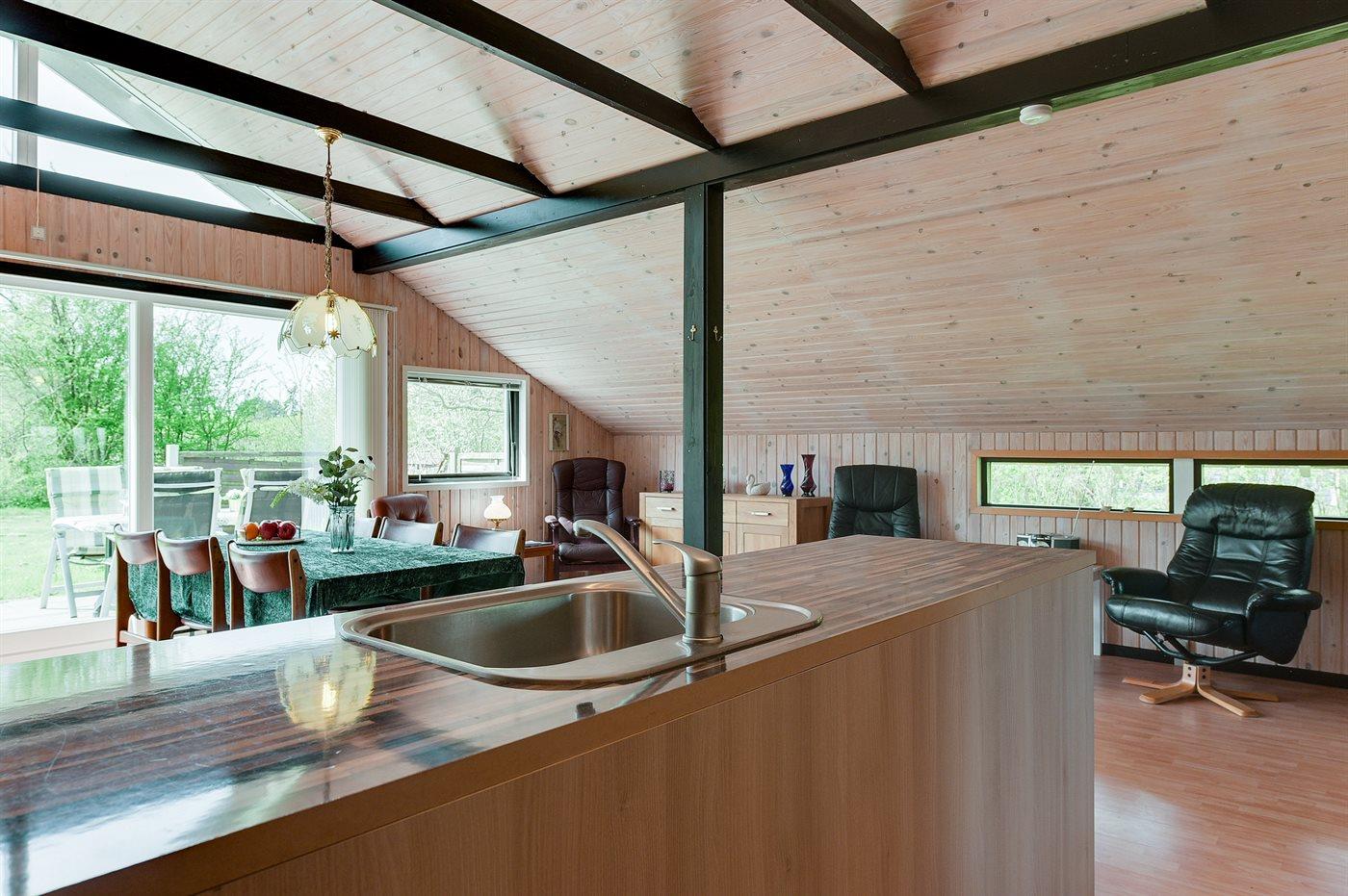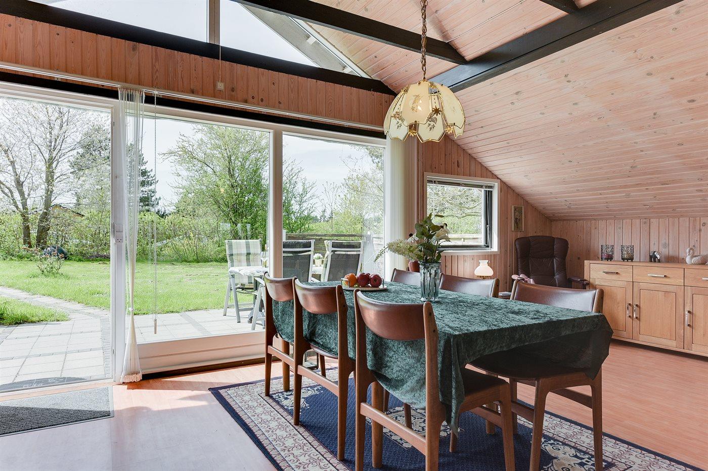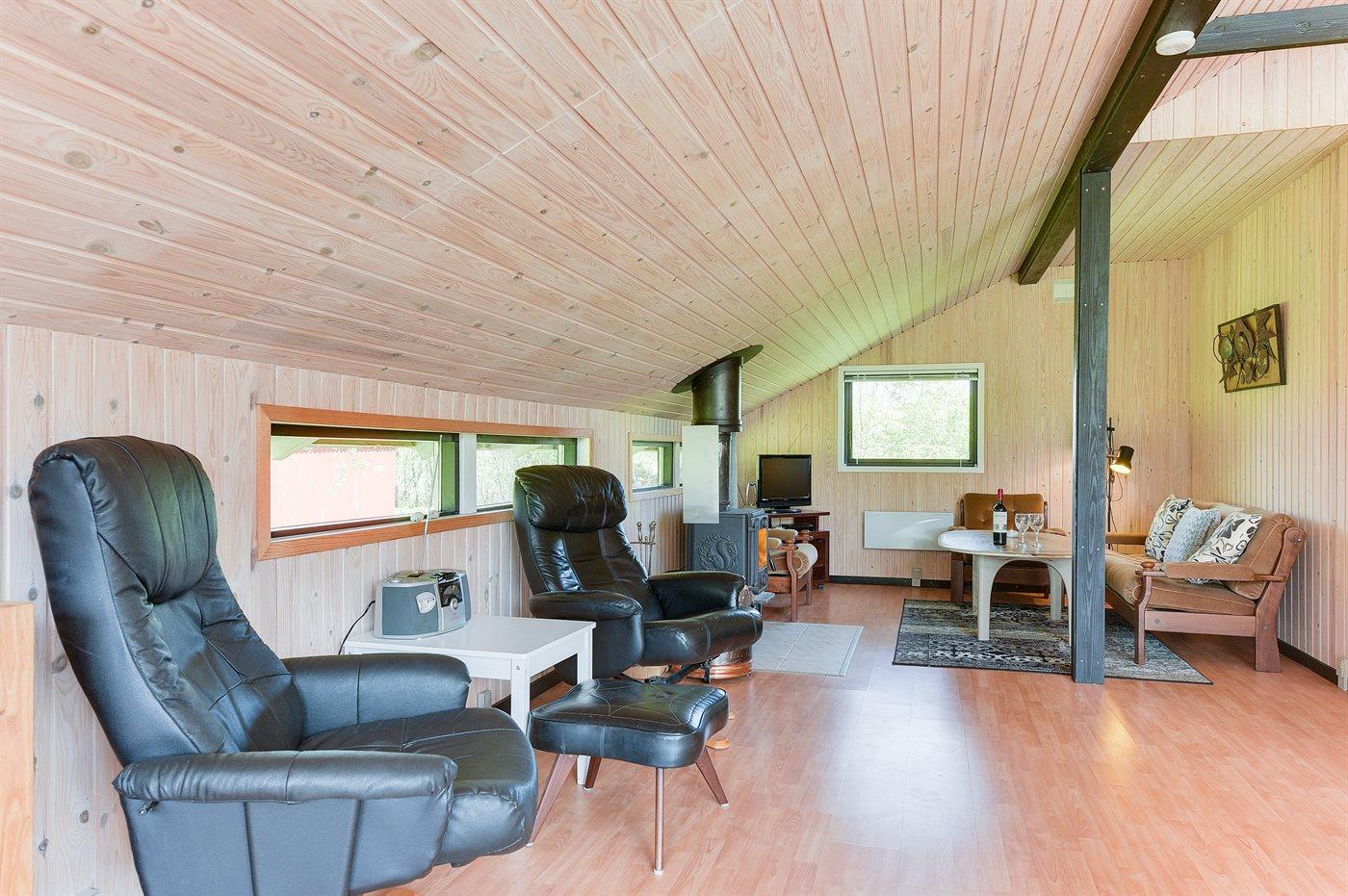 De vakantiewoning is gelegen op een 1205 m² groot grond in bos/park. Afstand tot de zee 1300 m. Afstand tot de fjord 550 m. Dichtstbijzijnde winkel 5000 m. Bij de vakantiewoning hoort 20 m² terras. Zandbak. Parkeerplaats bij het huis.
