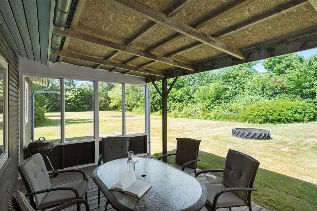 Sobald die ersten Sonnenstrahlen vom Himmel lachen, können Sie Ihr Urlaubsleben sehr schön ins Freie verlegen. Sie haben die Wahl zwischen zwei überdachten Terrassen. Eine der Terrassen verwöhnt Sie mit einem Ausblick auf den Fjord. Die große Grünfläche im Garten lädt Ihre Kinder zum ausgelassenen Umhertollen und zu Ballspielen jeglicher Art ein. Für viel Spaß.