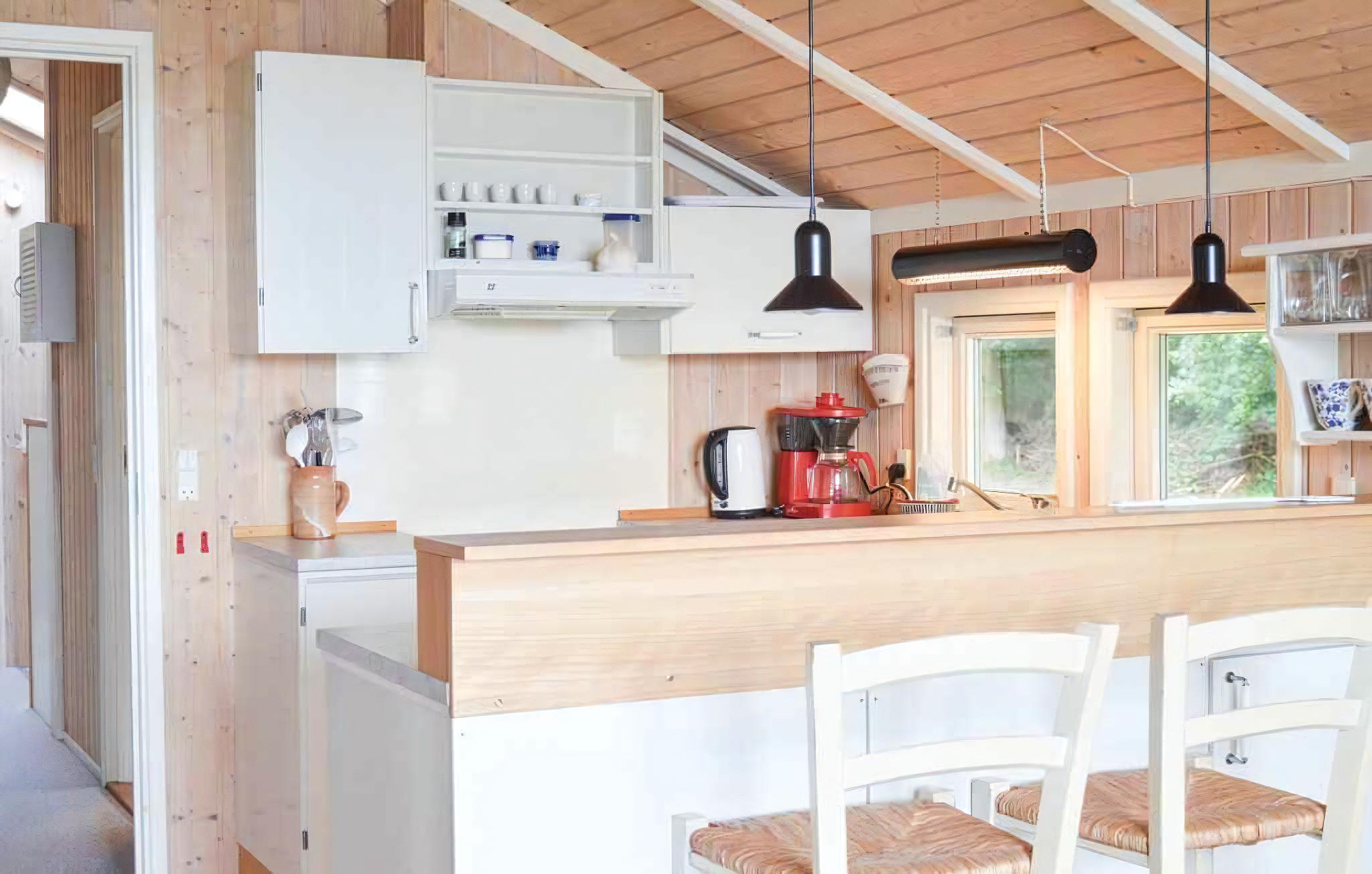 Dit gezellige vakantiehuis van 80 m² is het hele jaar door geïsoleerd en geschikt voor maximaal zes personen, verdeeld over twee slaapkamers en extra slaapplaatsen. Ideaal voor stellen en kleine gezinnen die dicht bij het water willen ontspannen. De woonkamer is het natuurlijke middelpunt van het huis, met houtkachel, warmtepomp en ruimte voor samenzijn. Rustige ochtenden en gezellige avonden worden versterkt door het licht en het uitzicht op de omgeving. Vanuit het huis is er ook uitzicht op de Roskilde Fjord. De keuken is nieuw uit 2025 en functioneel ingericht, waardoor koken eenvoudig en overzichtelijk is. Er is voldoende werkruimte en moderne oplossingen om samen te genieten van de maaltijden aan de eettafel. Het huis ligt volledig afgelegen op een groot perceel, met focus op rust en privacy. Internet is beschikbaar, wat flexibiliteit biedt als vakantie en praktische zaken gecombineerd worden. De afstand tot het water bedraagt slechts 50 meter, ideaal voor spontane strandbezoeken. Ochtendzwemmen, avondwandelingen en rustige momenten met uitzicht maken al snel deel uit van het verblijf. De omgeving wordt gekenmerkt door rust, fjordlandschap en natuur. Er zijn uitstekende mogelijkheden om langs het water te wandelen, te zwemmen en te vissen in de directe omgeving. De sfeer is kalm en geschikt voor ontspanning. Op korte rijafstand liggen kleine stadjes, boerderijwinkels en natuurbestemmingen voor leuke uitstapjes. Het fjordlandschap verandert met de seizoenen en biedt zowel actieve dagen als stille pauzes. Dit vakantiehuis is een uitstekende keuze voor wie ongestoord wil verblijven dicht bij het water, met modern comfort en een nieuw keuken. Hier vertraagt het tempo vanzelf. LET OP: De oprit ligt hoog en kan bij nat weer zacht zijn. Parkeren langs de weg is mogelijk, met toegang via een trap.
