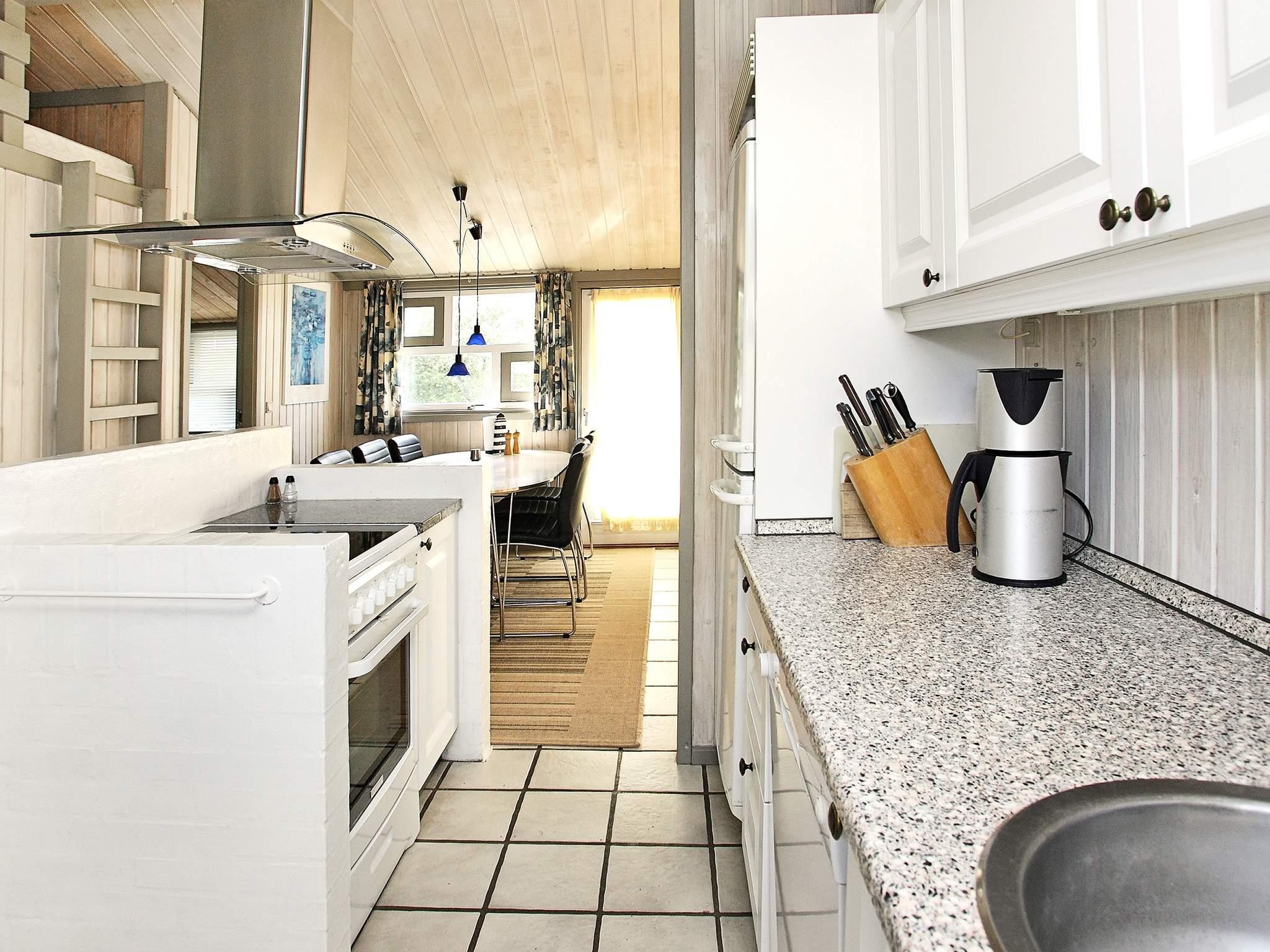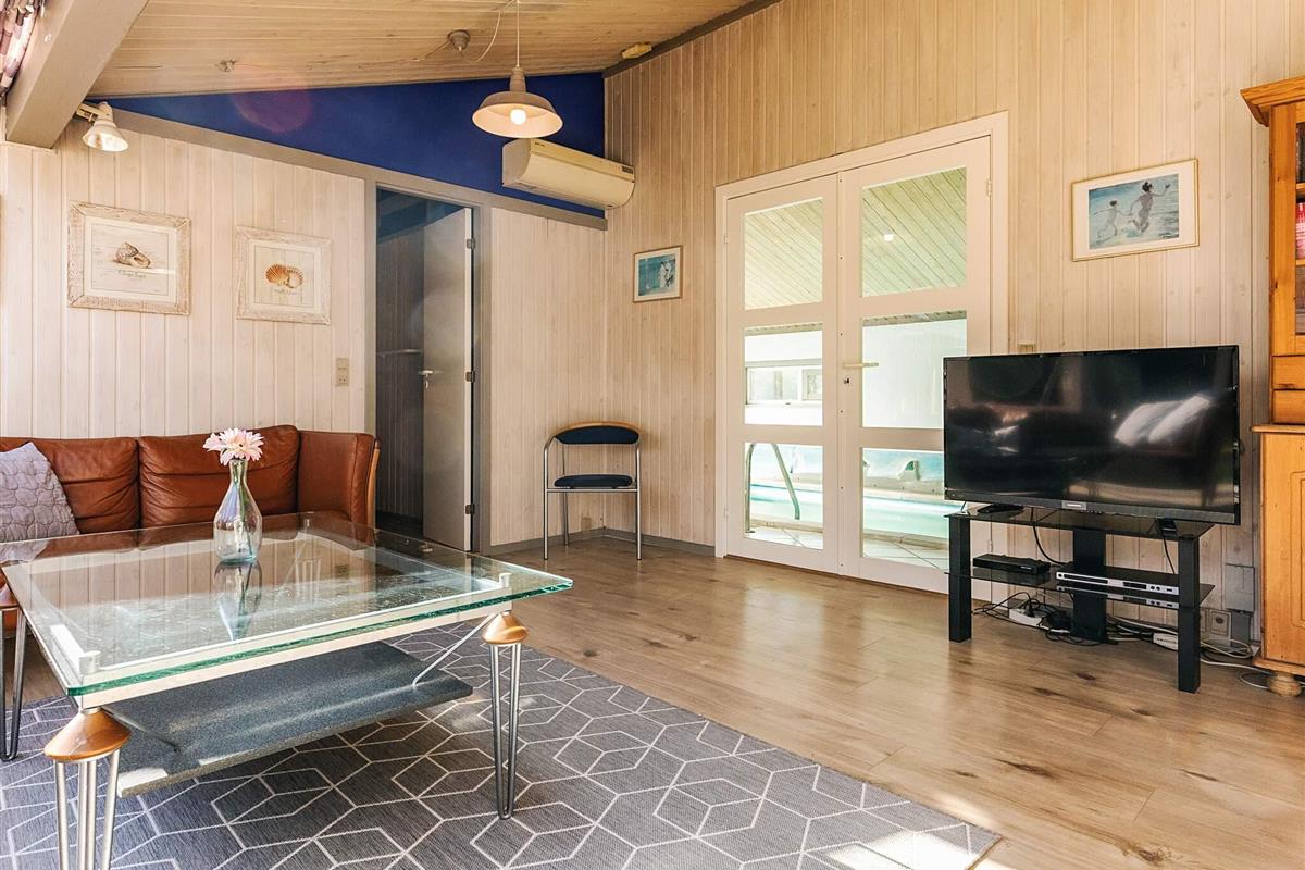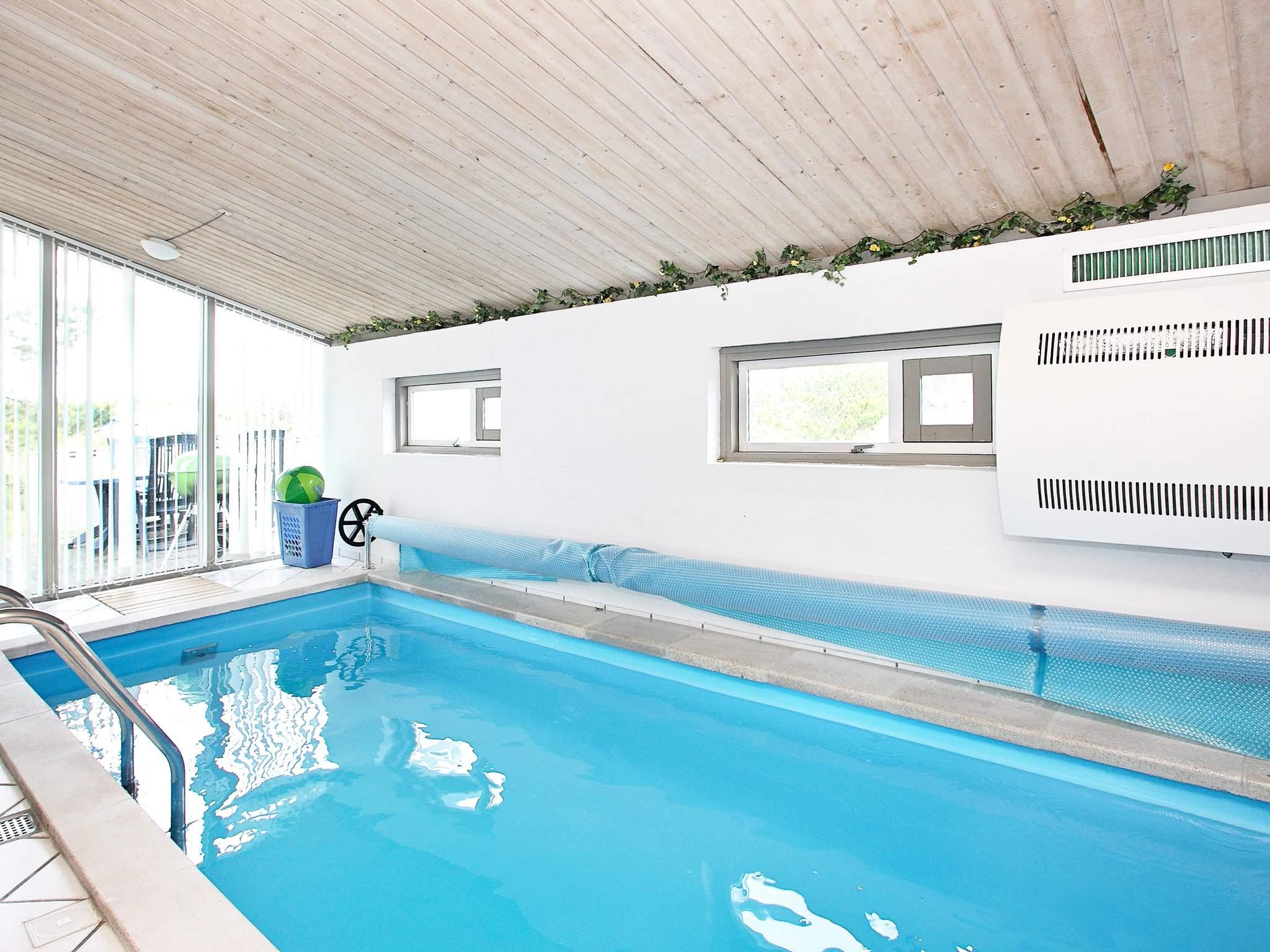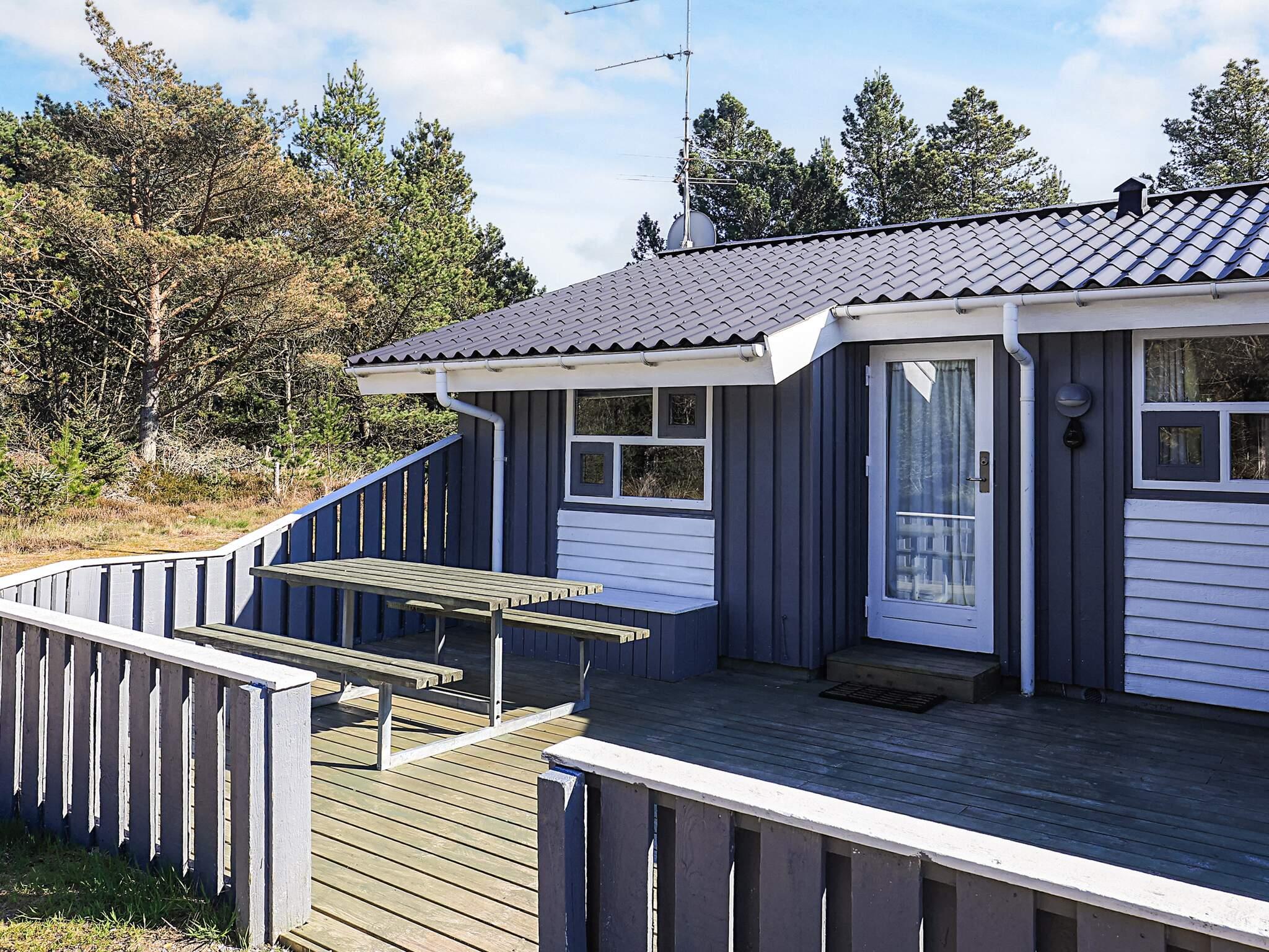 Auf einem großen, heidebewachsenen Dünengrundstück liegt dieses Ferienhaus mit Swimmingpool, ca. 500 m vom Skiveren Strand entfernt. Das Haus wird von großen Terrassen umgeben, von wo aus Sie herrlich das Wetter und die schöne Natur genießen können. Im Garten gibt es einen Sandkasten. In dem niederiger liegenden Aufenthaltsbereich können Sie es sich vor dem Holzofen mit einem guten Film gemütlich machen. Der Essbereich liegt in offener Verbindung mit der Küche, die praktisch eingerichtet und gut ausgestattet wurde. Es gibt zwei Bäder mit Dusche und einen separaten Bereich, wo sich der Pool befindet.