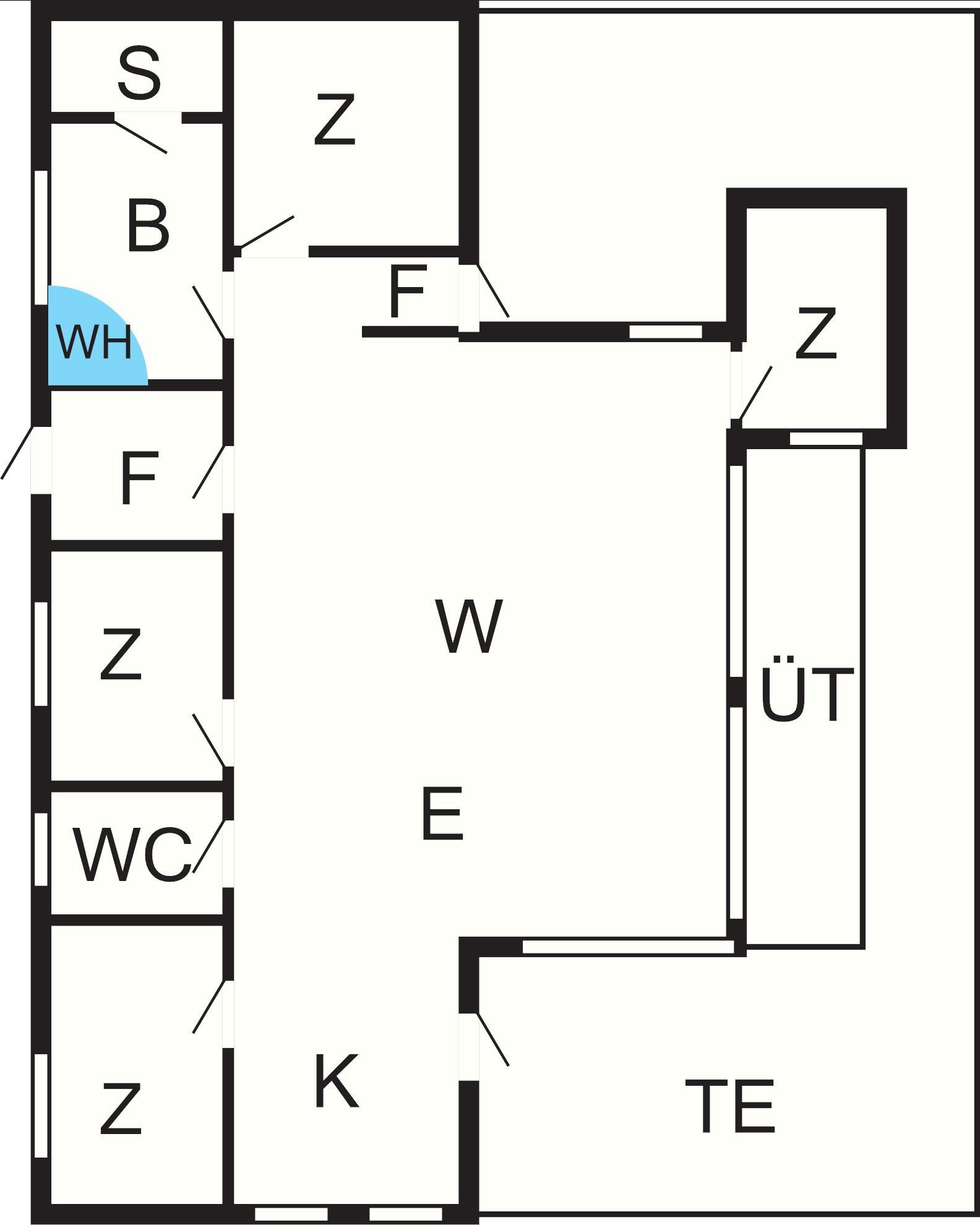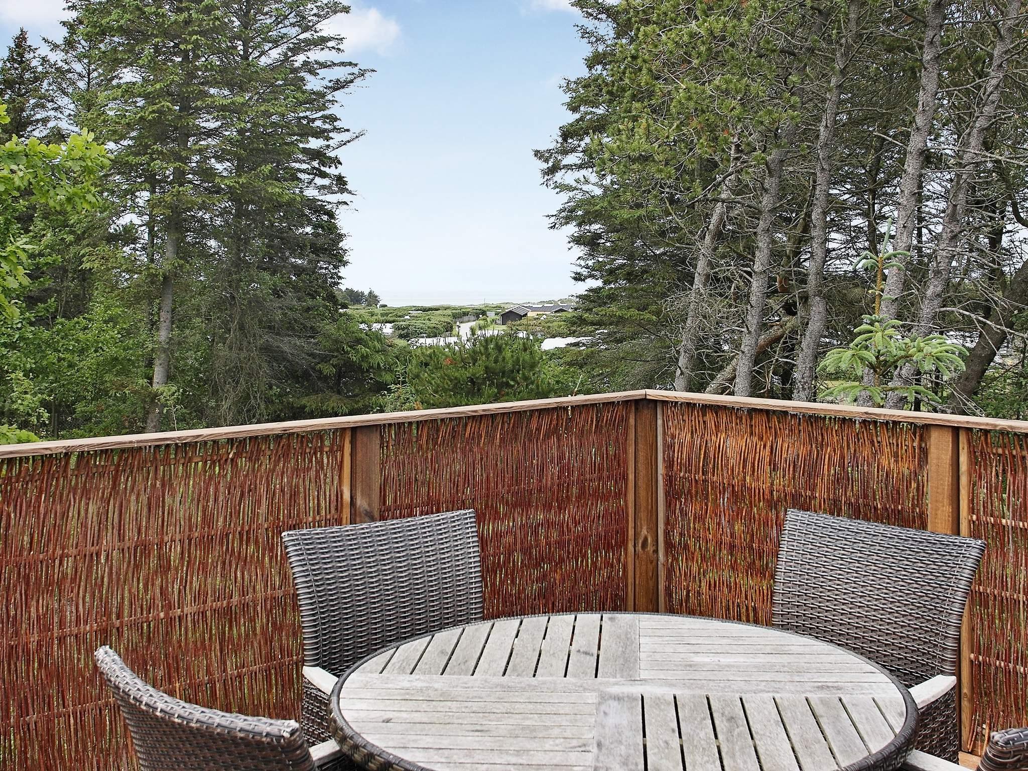 Mitten auf einem großen, abgeschirmten Naturgrundstück am Ende einer Sackgasse finden Sie dieses ansprechende Ferienhaus. Mehrere Terrassenflächen führen um das Haus herum, so dass Sie hier schöne Stunden z.B. auf einer der vier Sonnenliegen verbringen können. Von dem Grundstück führt eine kleine Treppe zu einer Terrasse, wo Sie sitzen und den Blick auf die Nordsee genießen können. Gute Raumverteilung mit Zimmern (zwei mit kleinem Meerblick) an jedem Ende und zwei Badezimmern mit WC. Küchen-/Aufenthaltsbereich und Blick in die Natur. Es wurde eine Wärmepumpe/Klimaanlage installiert.