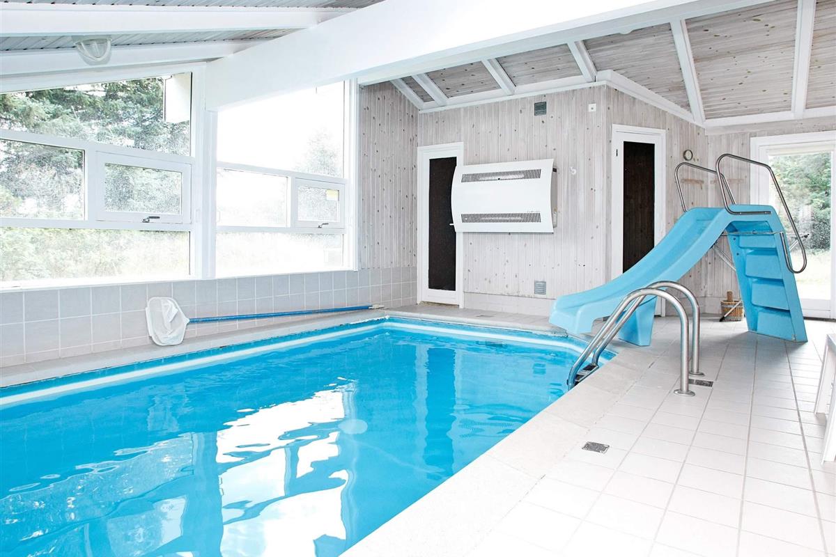 Gegenstromanlage und Wasserrutsche. Das Haus ist mit den zwei