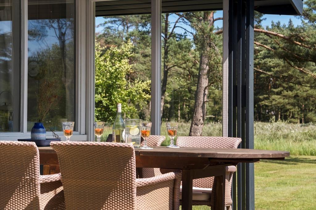 Dein Urlaubsdomizil befindet sich auf einem riesigen, gepflegten Naturgrundstück mit einem kleinen Wäldchen und einem kleinen Bach. Die Nachbarhäuser liegen angenehm weit abseits. Du genießt direkten Ausblick auf zwei unter Naturschutz stehende Areale und wirst von einer traumhaften Ruhe eingehüllt. Stell dir nur vor, wie du es dir im Schatten des Sonnenschirms mit einem frischen Kaffee oder einem Kaltgetränk gemütlich machst und dem Zwitschern der Vögel in den Baumwipfeln lauschst. Die Terrasse ist groß und teilweise überdacht. Auf der weitläufigen Grasfläche kannst du mit deinen Kindern oder mit deinem Hund wunderbar spielen und umhertollen.