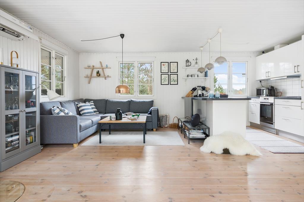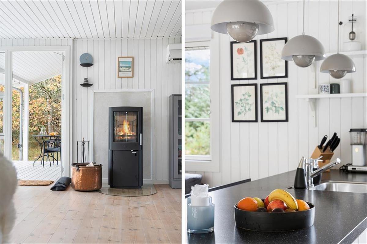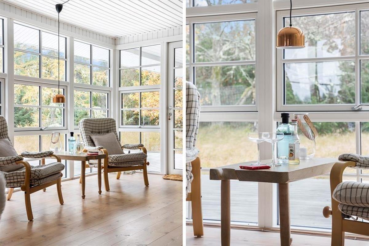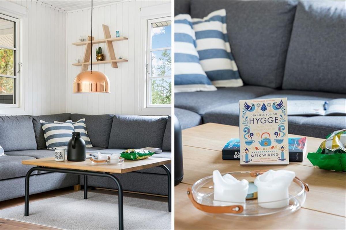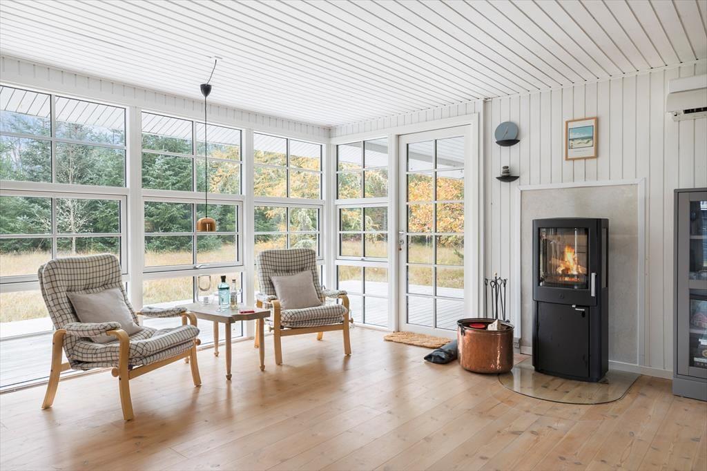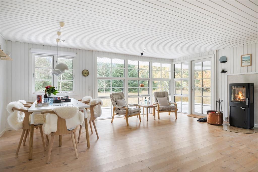 Wenn du das Ferienhaus betrittst, wirst du von einer hellen und einladenden Atmosphäre empfangen, in der die großen Panoramafenster im Wohnzimmer das Licht hereinlassen und die Natur ganz nah heranholen. Vom Wohnzimmer aus hast du einen wunderbaren Blick auf den grünen Garten, und das große Fenster schafft eine schöne Verbindung zwischen drinnen und draußen – ideal für entspannende Urlaubsmomente mit Blick auf die ruhige Umgebung. Hier ist Platz für die ganze Familie, sei es beim gemeinsamen Abendessen oder bei einem gemütlichen Abend vor dem Kamin.