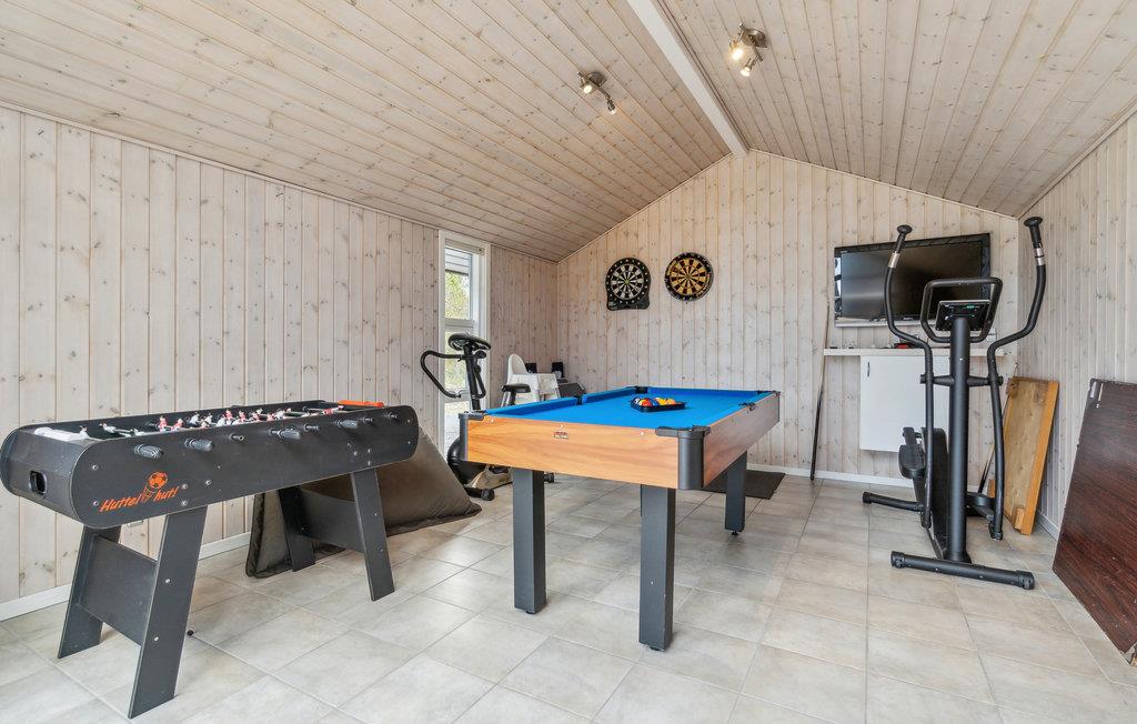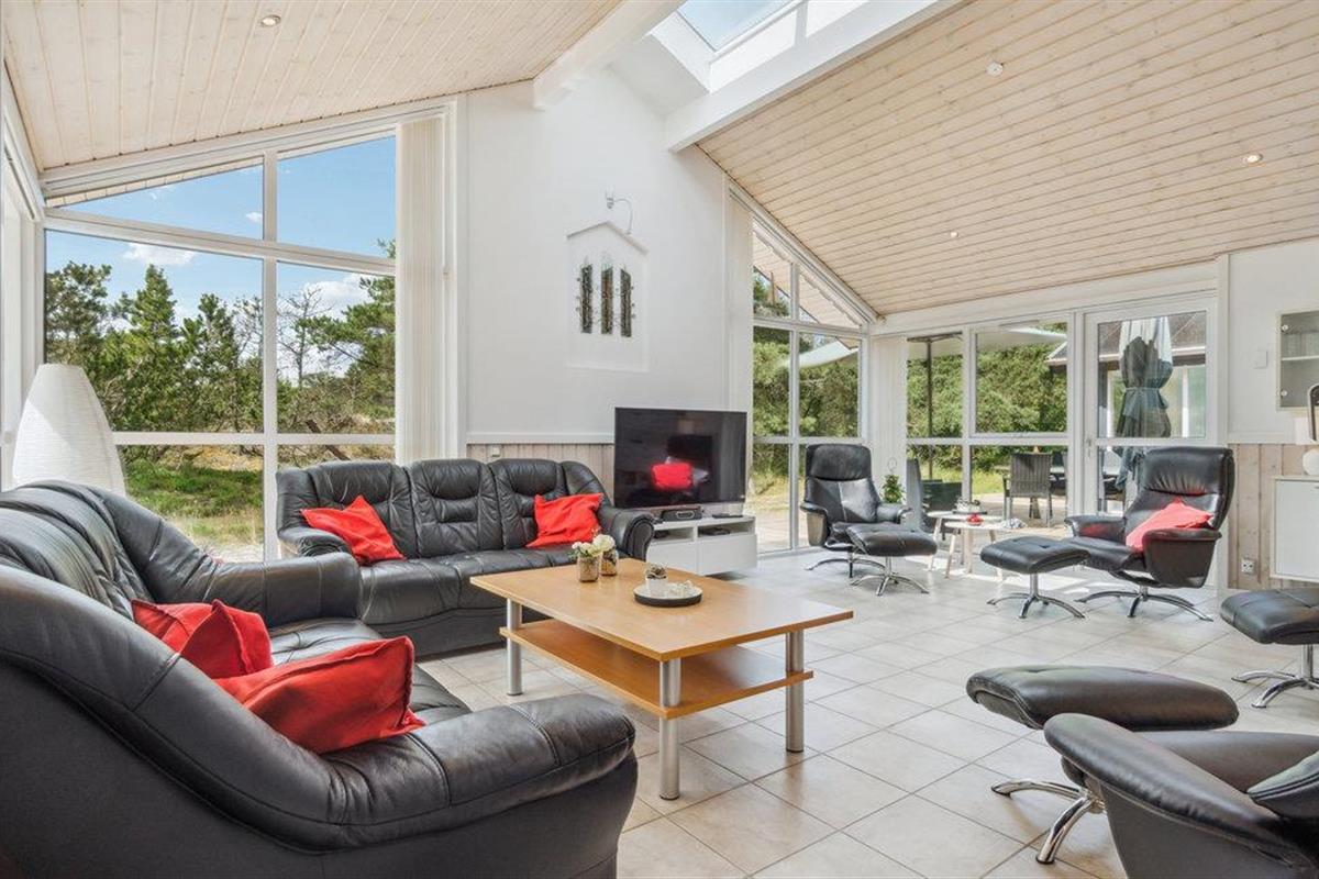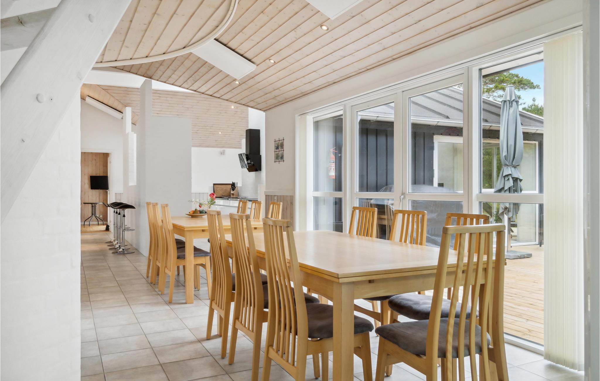 Dit prachtige vakantiehuis in Skiveren ligt op een groot natuurperceel. Het interieur is erg mooi en goed onderhouden. De comfortabele inrichting, de vijf slaapkamers en de vide maken het huis zeer geschikt voor een vakantie van meerdere generaties onder één dak. Alle leeftijden kunnen hier actief bezig zijn, zowel in het grote zwembad als op de terrassen, die ook uitnodigen tot urenlang buiten vertoeven. Alle slaapkamers zijn uitgerust met televisies.